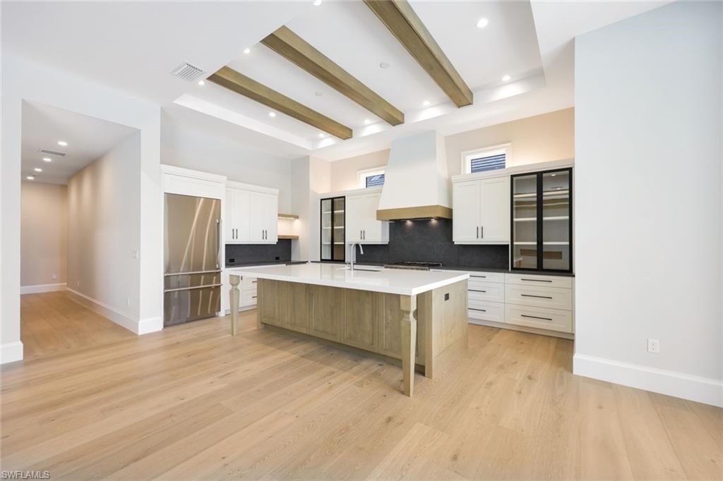 Welcome to your new oasis in the heart of Naples! This single-family home is situated in an exclusive community of The Enclave of Distinction, with just 27 residences, providing a warm sense of community. This gated retreat offers the perfect blend of privacy and convenience, featuring charming brick-paved streets, well-lit sidewalks, and lush landscaping. The spacious one-story layout includes a great room that leads to a main suite, complete with a luxurious bathroom featuring a soaking tub, an oversized shower, and separate vanities. There are also two guest suites, a den, and a third guest suite that has a private entrance from the lanai. This suite provides a quiet and spacious area for guests, equipped with a custom bar, quartz countertop, sink, and beverage center. The home is filled with natural light thanks to its high-volume ceilings, which enhance the stunning great room that features wood-beam ceilings, a custom bar with a wine cooler, a glass cabinet tower, and free-floating wood shelving with lighting, along with a 74" linear fireplace. Culinary enthusiasts will love the superior kitchen equipped with Viking appliances, including a refrigerator, dishwasher, convection speed oven, and gas range with a hood vent. These features are beautifully complemented by white wood cabinetry with glass doors and quartz countertops with waterfall edges. Additionally, a GE front-load washer and dryer provide modern convenience. Enjoy the tranquility of a private garden setting or entertain guests effortlessly in your outdoor spaces, which include an outdoor kitchen with a gas grill, electronic roll-down screens, a refreshing swimming pool, and a spa. Seamlessly convenient, the home is located near Seed to Table, Gulf beaches, Mercato, and Southwest Florida International Airport. This allows you to enjoy a lifestyle of leisure and luxury within the embrace of The Promenade. Don’t miss your chance to experience the unparalleled lifestyle this estate offers in beautiful Naples!