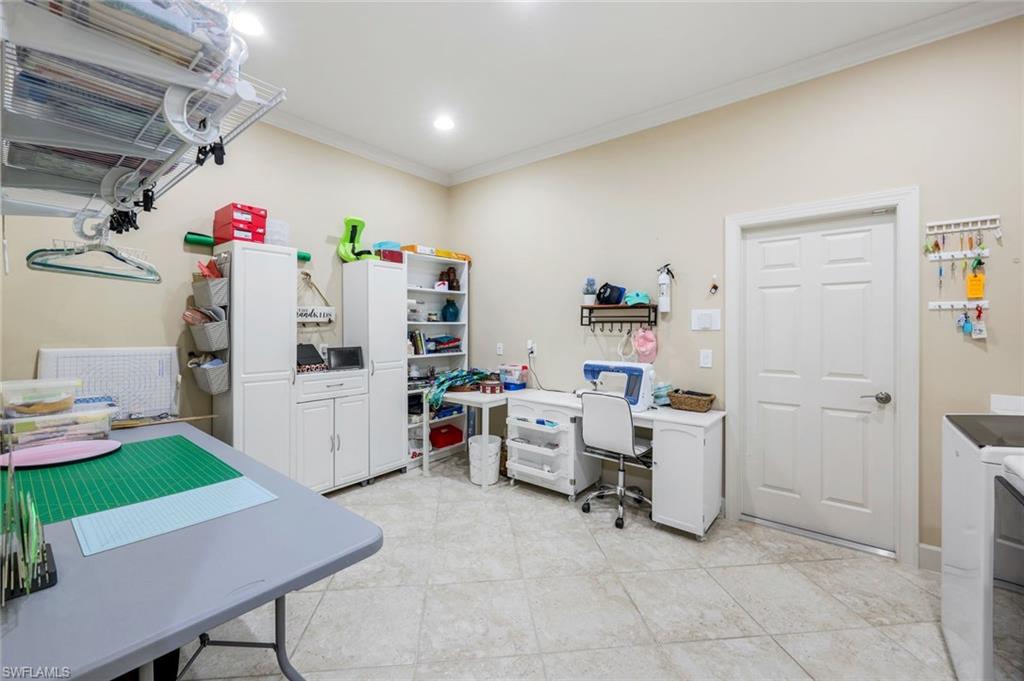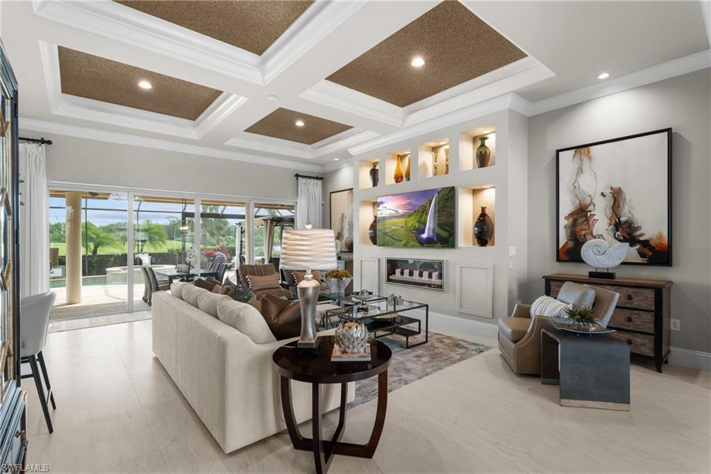Prepare to be captivated by this jaw-dropping 4-bedroom plus den, 3-full-bath Windsor model masterpiece, sprawling across an OVERSIZED nearly half-acre lot in the ultra-exclusive Quarry community! Commanding spellbinding southern views of the 7th hole of the pristine golf course, this home redefines luxury living with an open floor plan that radiates sophistication and effortless style. Step into a world of opulence, where crown molding, custom-designed closets, and a wealth of storage create an ambiance of refined elegance. The gourmet kitchen dazzles with a brand-new refrigerator, while immersive surround sound envelops the living area and the expansive lanai, setting the stage for unforgettable gatherings. Cutting-edge upgrades, including a new air conditioner, new water heater, and two new garage door openers, ensure peak performance and modern comfort. Venture outdoors to a private oasis that will leave you speechless—meticulously curated landscaping and lighting frame an extraordinary outdoor kitchen and a mesmerizing outdoor fireplace, perfect for starlit evenings. The oversized lanai, crowned by a custom pool and spa, beckons for relaxation, all safeguarded by automatic Storm Smart shutters on the lanai and every window for ultimate peace of mind. The extended 3-car garage, complete with sleek epoxy flooring, offers unmatched space and style. The Quarry has everything for that ultimate Naples vibe with over five hundred acres of lakes for boating, jet-skiing, wakeboarding, or just chilling on a paddleboard. There's a resort-style beach club with a private sandy shore, perfect for picnics. There is tennis, pickleball, bocce ball, plus a tiki bar and indoor/outdoor restaurant with poolside service-grab a cocktail without moving. Fitness center, lap pool, walking paths through preserves, and an activities director keeps things buzzing with events. It's living in a gated resort, right in your backyard. Various optional memberships (NO WAITLIST) are offered at the privately owned Quarry Golf Club. Designed by world-renowned architectural team of Dr. Michael Hurdzan and Dana Fry in 2007, this Championship golf course wraps around the water with eighteen holes of pure scenic bliss. This isn’t just a home—it’s a breathtaking retreat that elevates every moment. Seize the opportunity to claim this jewel as your own!