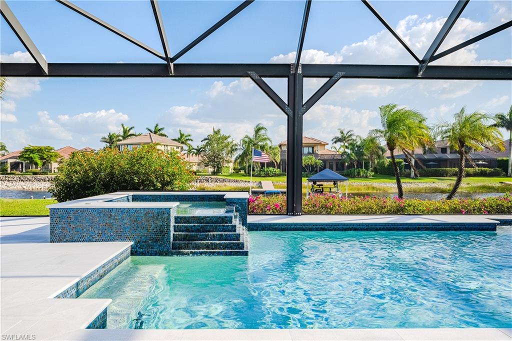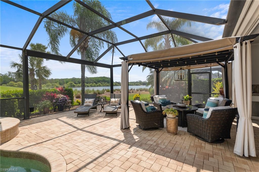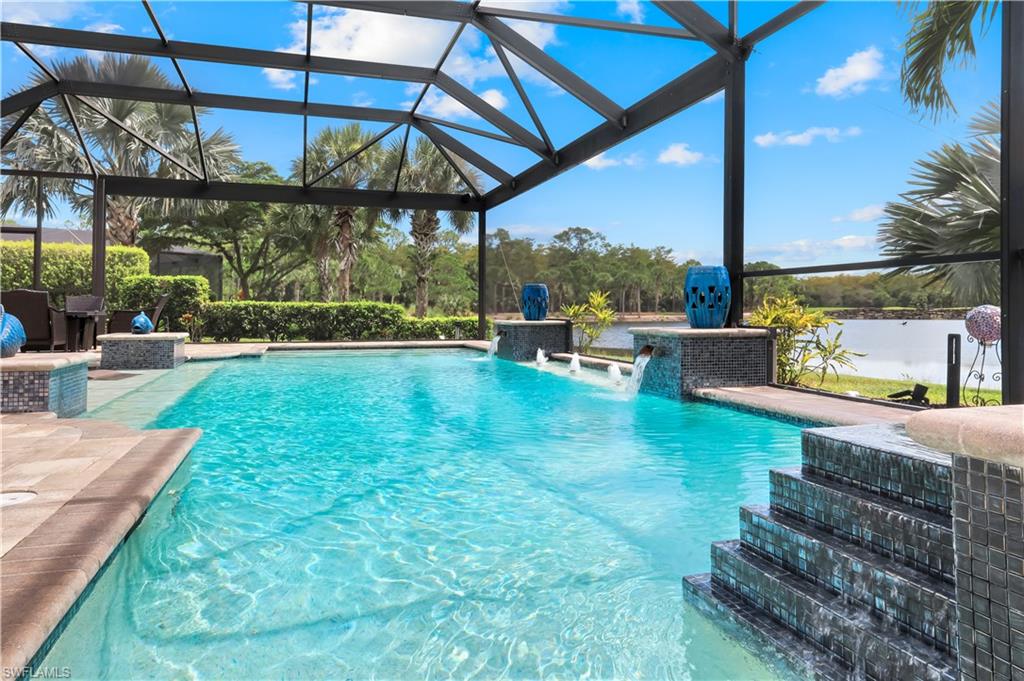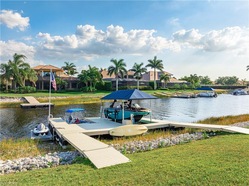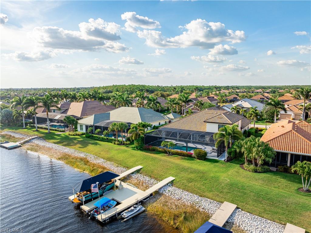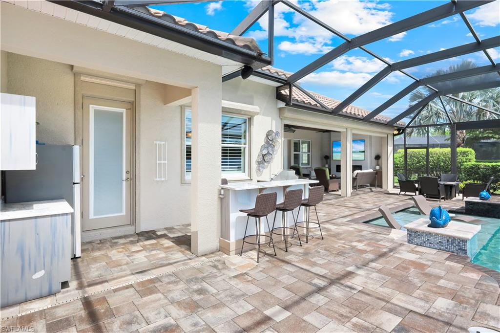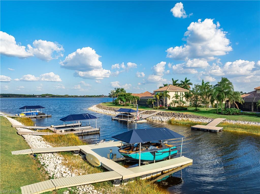 Live the ULTIMATE LIFESTYLE IN The Quarry, a Golf and Beach Community (placed in the top 4% of clubs and communities globally). Step inside this immaculate WATERFRONT home and enjoy BREATHTAKING Sunrise Views of Stone Lake. Boasting 4 spacious bedrooms plus a den, 3 full bathrooms, and a 2-car EXTENDED air-conditioned garage complete with epoxy floor and custom organizers, this home provides over 3,000 square feet of comfort and style. The NEWLY remodeled kitchen is a chef's dream and comes equipped with top-of-the-line appliances (WOLF AND SUB-ZERO), custom cabinets, and quartzite countertops. The crown molding adds a touch of elegance throughout the home, while the custom built-in bar in the great room is perfect for hosting gatherings for friends and family. The recently remodeled primary bathroom comes with custom tile and cabinets for a luxurious and spa like feel. Step outside to the expansive lanai, complete with a custom outdoor kitchen, marble flooring, and Cyprus wood ceiling for the ultimate outdoor living experience. The salt-water pool/spa is perfect for those hot summer days. And don't forget about the deeded dock with covered canopy, hydraulic lift, and jet ski capability for all your boating needs. A 2018 Bennington Pontoon Boat is available for purchase. The whole house generator, electric roll down shutters and accordion shutters will ensure your home is always protected during storm season. This home also features a newer Roof (2019), newer dual zoned air conditioners (2022), plantation shutters and has been freshly painted inside. Tucked away in North Naples, The Quarry isn't just a community, it's a resort-style escape on 500+ acres of pristine lakes and preserves! Vacation vibe amenities include the newly renovated beach club with restaurant, tiki bar, resort pool, lap pool, wellness center, 5 lighted soft-surface tennis courts, 3 lighted bocce courts, 5 lighted pickleball courts, a tennis shop, boating, kayaking, fishing and the full-time activities director will make sure a great time is had by all. In addition, various optional golf memberships are offered at the privately owned Quarry Golf Club - (NO WAIT LIST). Designed by world-renowned architectural team of Dr. Michael Hurdzan and Dana Fry in 2007, this Par 72 championship golf course offers an unparalleled golf experience with spectacular views. Water appears on every hole, and the course is a true test for golfers of all levels. With 5 sets of tees and a unique layout to every hole, you'll never get tired of challenging this exceptional course. Don't miss out on this incredible opportunity to own a piece of paradise in The Quarry!