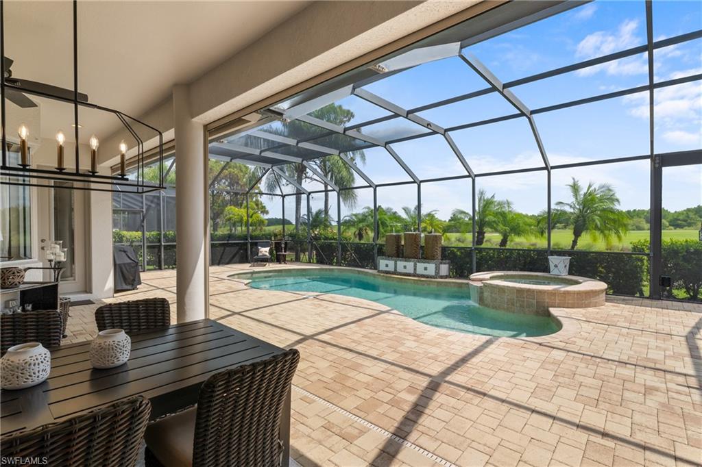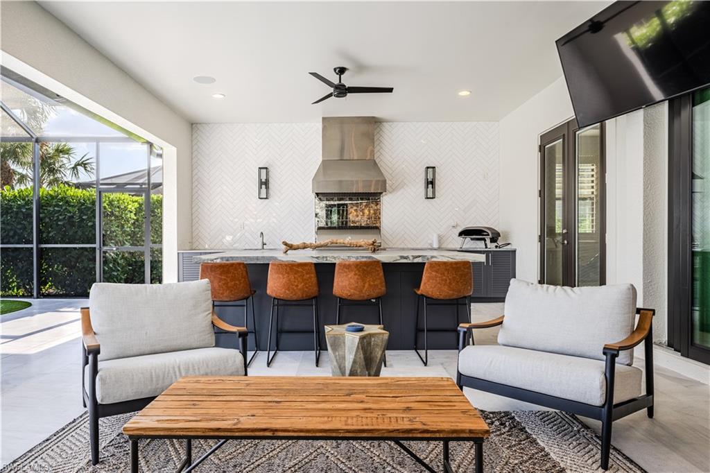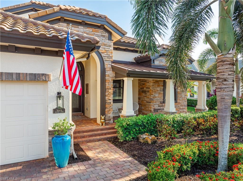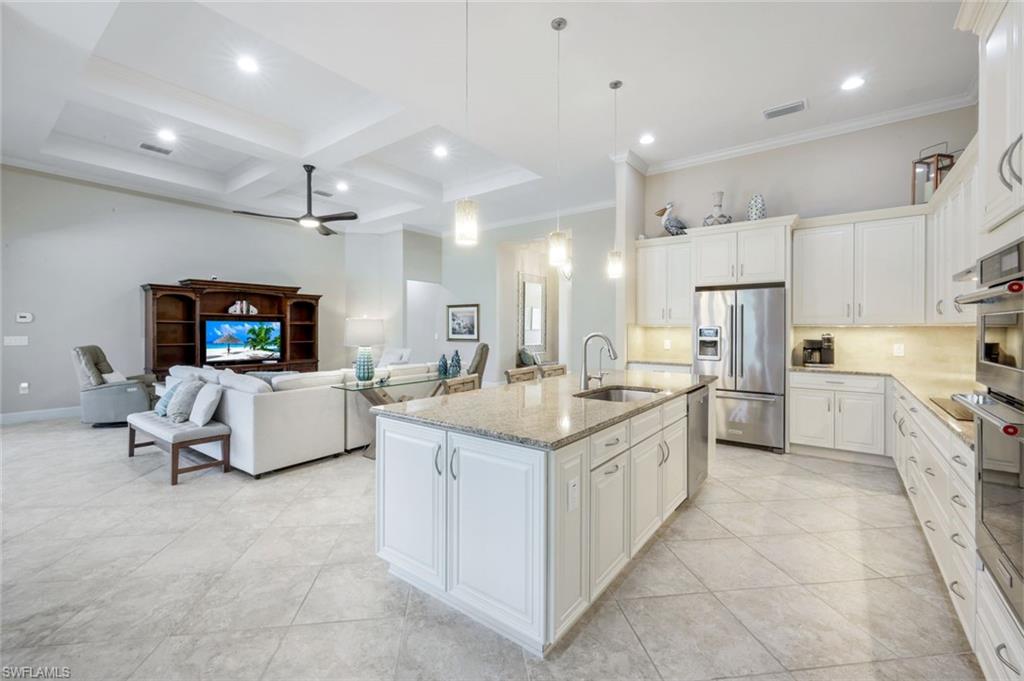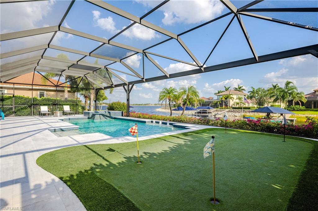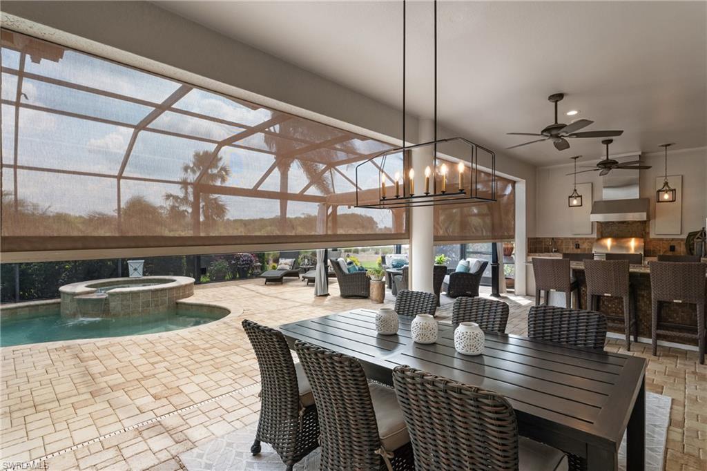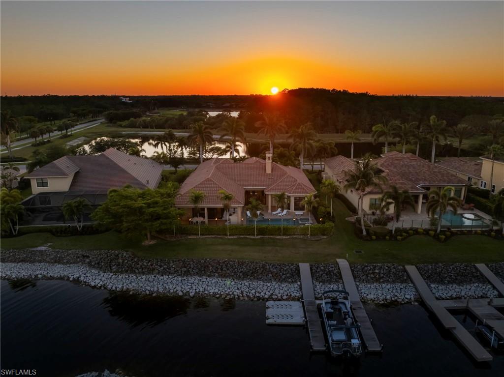 Live the ULTIMATE LIFESTYLE IN The Quarry, a Golf and Beach Community (placed in the top 4% of clubs and communities globally). Step inside this immaculate WATERFRONT home and enjoy BREATHTAKING Sunrise Views of Stone Lake. Boasting 4 spacious bedrooms plus a den, 3 full bathrooms, and a 2-car EXTENDED air-conditioned garage complete with epoxy floor and custom organizers, this home provides over 3,000 square feet of comfort and style. The NEWLY remodeled kitchen is a chef's dream and comes equipped with top-of-the-line appliances (WOLF AND SUB-ZERO), custom cabinets, and quartzite countertops. The crown molding adds a touch of elegance throughout the home, while the custom built-in bar in the great room is perfect for hosting gatherings for friends and family. The recently remodeled primary bathroom comes with custom tile and cabinets for a luxurious and spa like feel. Step outside to the expansive lanai, complete with a custom outdoor kitchen, marble flooring, and Cyprus wood ceiling for the ultimate outdoor living experience. The salt-water pool/spa is perfect for those hot summer days. And don't forget about the deeded dock with covered canopy, hydraulic lift, and jet ski capability for all your boating needs. A 2018 Bennington Pontoon Boat is available for purchase. The whole house generator, electric roll down shutters and accordion shutters will ensure your home is always protected during storm season. This home also features a newer Roof (2019), newer dual zoned air conditioners (2022), plantation shutters and has been freshly painted inside. Tucked away in North Naples, The Quarry isn't just a community, it's a resort-style escape on 500+ acres of pristine lakes and preserves! Vacation vibe amenities include the newly renovated beach club with restaurant, tiki bar, resort pool, lap pool, wellness center, 5 lighted soft-surface tennis courts, 3 lighted bocce courts, 5 lighted pickleball courts, a tennis shop, boating, kayaking, fishing and the full-time activities director will make sure a great time is had by all. In addition, various optional golf memberships are offered at the privately owned Quarry Golf Club - (NO WAIT LIST). Designed by world-renowned architectural team of Dr. Michael Hurdzan and Dana Fry in 2007, this Par 72 championship golf course offers an unparalleled golf experience with spectacular views. Water appears on every hole, and the course is a true test for golfers of all levels. With 5 sets of tees and a unique layout to every hole, you'll never get tired of challenging this exceptional course. Don't miss out on this incredible opportunity to own a piece of paradise in The Quarry!