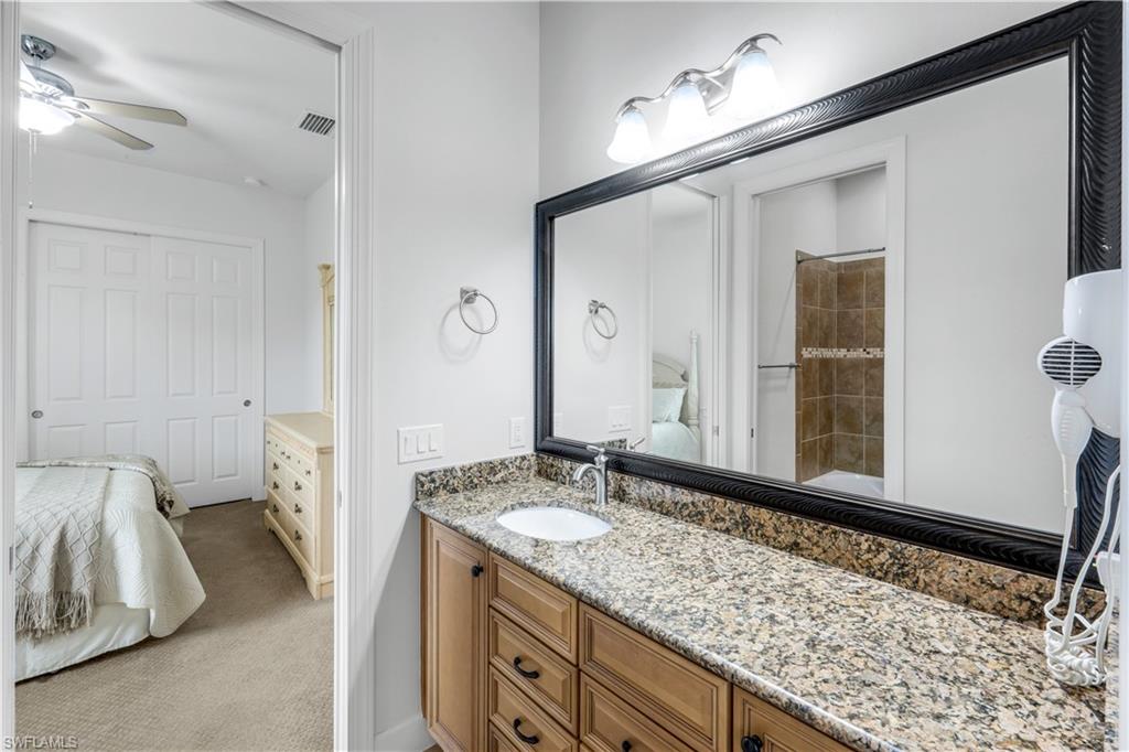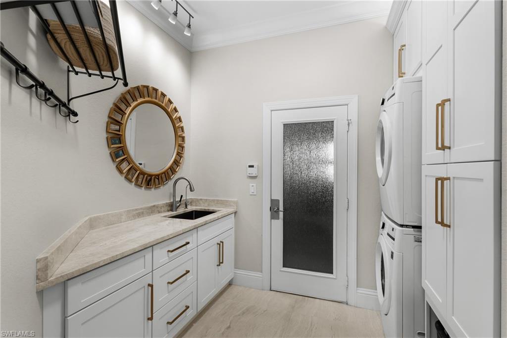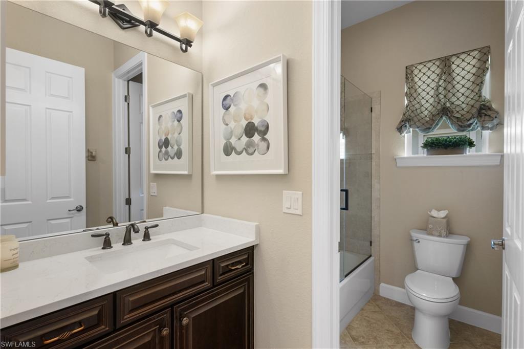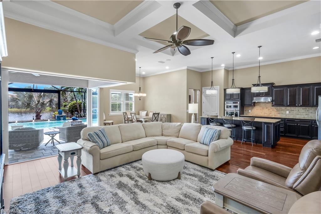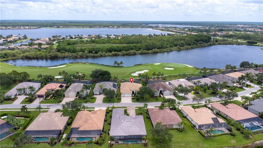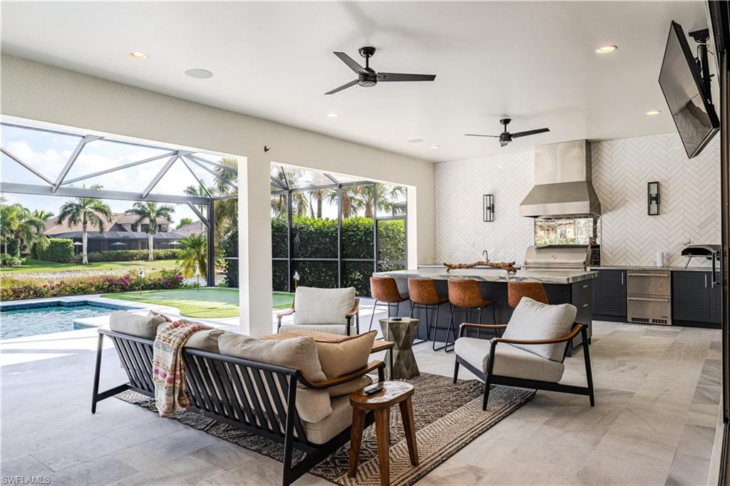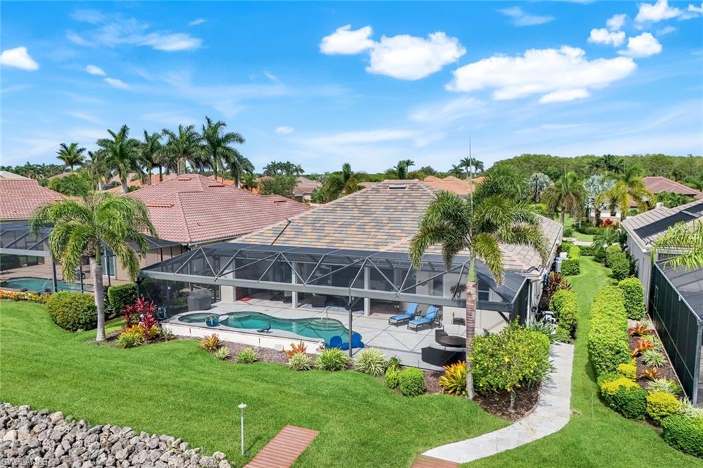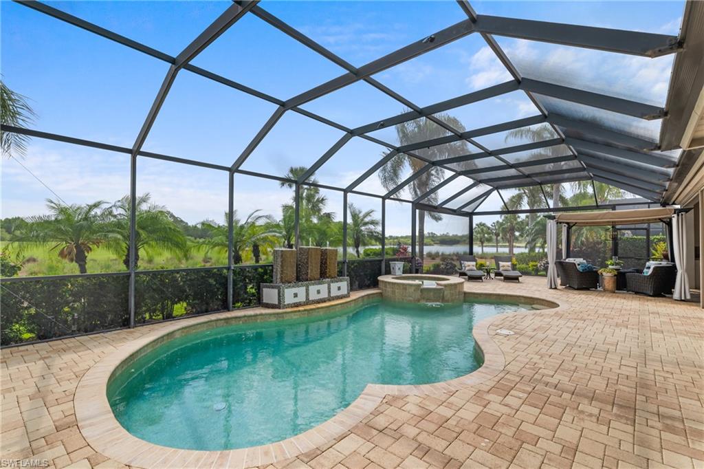 Live the ULTIMATE LIFESTYLE IN The Quarry, a Golf and Beach Community (placed in the top 4% of clubs and communities globally). Step inside this immaculate WATERFRONT home and enjoy BREATHTAKING Sunrise Views of Stone Lake. Boasting 4 spacious bedrooms plus a den, 3 full bathrooms, and a 2-car EXTENDED air-conditioned garage complete with epoxy floor and custom organizers, this home provides over 3,000 square feet of comfort and style. The NEWLY remodeled kitchen is a chef's dream and comes equipped with top-of-the-line appliances (WOLF AND SUB-ZERO), custom cabinets, and quartzite countertops. The crown molding adds a touch of elegance throughout the home, while the custom built-in bar in the great room is perfect for hosting gatherings for friends and family. The recently remodeled primary bathroom comes with custom tile and cabinets for a luxurious and spa like feel. Step outside to the expansive lanai, complete with a custom outdoor kitchen, marble flooring, and Cyprus wood ceiling for the ultimate outdoor living experience. The salt-water pool/spa is perfect for those hot summer days. And don't forget about the deeded dock with covered canopy, hydraulic lift, and jet ski capability for all your boating needs. A 2018 Bennington Pontoon Boat is available for purchase. The whole house generator, electric roll down shutters and accordion shutters will ensure your home is always protected during storm season. This home also features a newer Roof (2019), newer dual zoned air conditioners (2022), plantation shutters and has been freshly painted inside. Tucked away in North Naples, The Quarry isn't just a community, it's a resort-style escape on 500+ acres of pristine lakes and preserves! Vacation vibe amenities include the newly renovated beach club with restaurant, tiki bar, resort pool, lap pool, wellness center, 5 lighted soft-surface tennis courts, 3 lighted bocce courts, 5 lighted pickleball courts, a tennis shop, boating, kayaking, fishing and the full-time activities director will make sure a great time is had by all. In addition, various optional golf memberships are offered at the privately owned Quarry Golf Club - (NO WAIT LIST). Designed by world-renowned architectural team of Dr. Michael Hurdzan and Dana Fry in 2007, this Par 72 championship golf course offers an unparalleled golf experience with spectacular views. Water appears on every hole, and the course is a true test for golfers of all levels. With 5 sets of tees and a unique layout to every hole, you'll never get tired of challenging this exceptional course. Don't miss out on this incredible opportunity to own a piece of paradise in The Quarry!