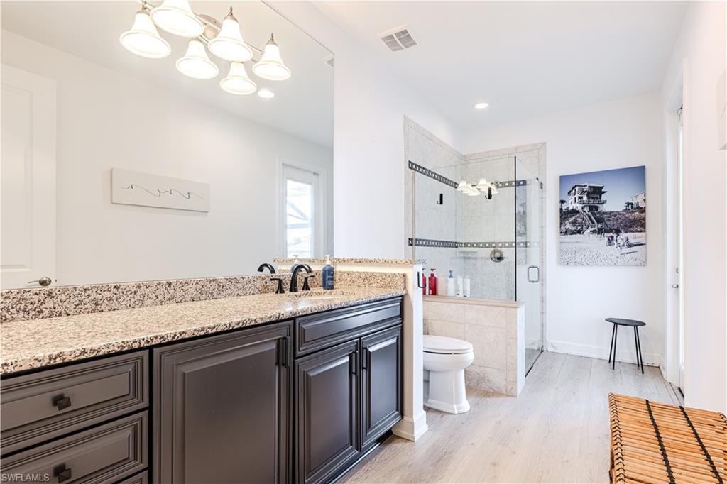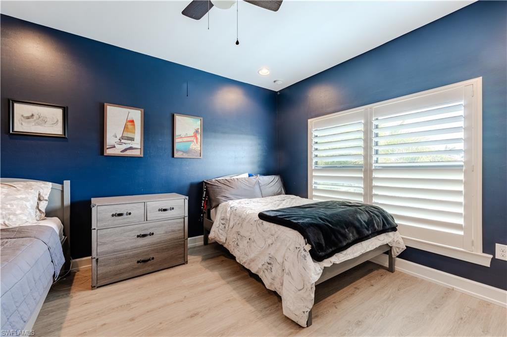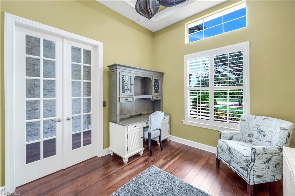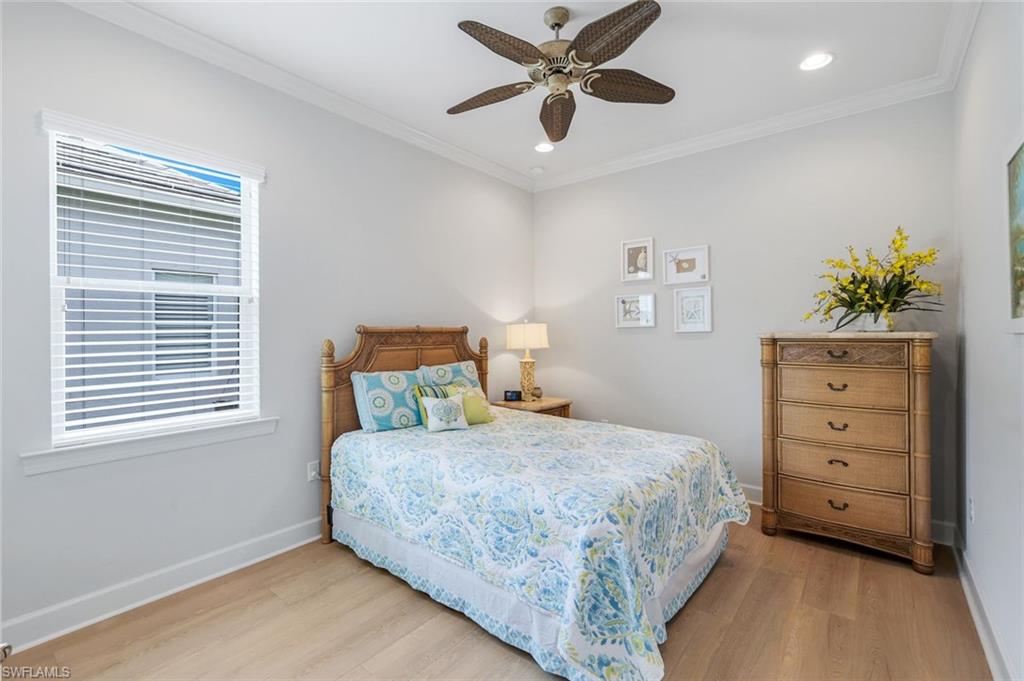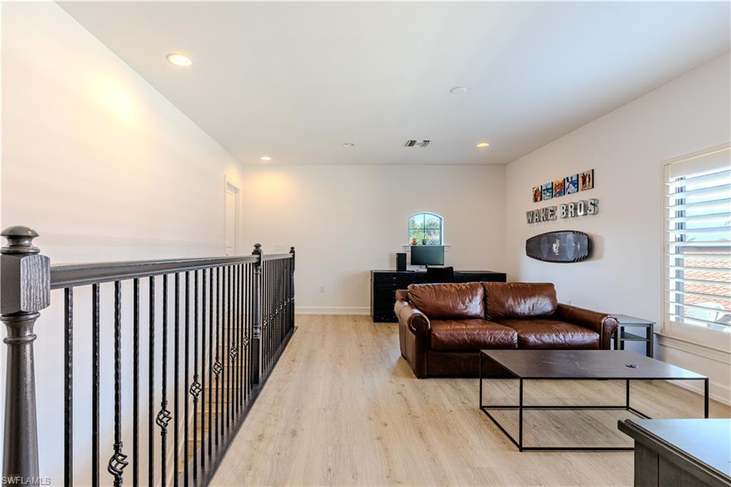 Welcome to your Naples waterfront lifestyle in The Quarry — Located in the EXCLUSIVE gated community of Breakwater Drive close proximity to the amenity-rich beach club where every day feels like vacation. This beautifully enhanced Modified Windsor floor plan featuring 5 Bedrooms (4 Ensuites), 4 full baths and a 3 car garage blends resort living with everyday comfort, offering a flexible layout and stunning lake views that make coming home feel like a getaway. Thoughtfully expanded to include a fifth bedroom with ensuite bath and an added den, this home lives large and feels light, bright, and updated throughout. The freshly painted interior (2025), custom light fixtures, and hardwood floors in the primary suite, guest bedroom, and den give a polished coastal feel. A frosted glass barn door adds privacy and style to the guest suites, while custom closet systems and remote-controlled room-darkening blinds provide everyday luxury. The main living area centers around a custom TV feature wall with a built-in fireplace, creating a warm and welcoming space for gatherings. Surround sound in the main living areas and outdoor lanai enhances movie nights for entertaining. The kitchen includes an induction stovetop and a reverse-osmosis water system, blending practicality with modern convenience. Step through the sliders and into your private outdoor oasis. Enjoy a saltwater infinity pool and spa overlooking PANORAMIC views of Stone Lake, framed by a picture-window lanai screen. A newer outdoor kitchen (2020) makes entertaining easy, while a private beach and deeded boat dock (#5) open the door to boating, kayaking, fishing, water-skiing, or simply watching the sunset over the lake. Behind the beauty, the home is built for lasting comfort and peace of mind with a newer AC handler (2021), whole-house surge-protector (2020), and whole-house generator (2024). Life at The Quarry is all about lifestyle. This gated, amenity-rich environment is perfect for boating, jet-skiing, and water sports, but it doesn’t stop there. The Beach Club features a resort pool, lap pool, hot tub, tennis, pickleball, and bocce courts, plus a Tiki bar with poolside food and beverage service, a state-of-the-art wellness center, and a full-time activities director who curates social events year-round. Golfers will love the optional golf membership at The Quarry Golf Lodge, which currently has NO WAITLIST and offers a limited-time 3-year payment plan for the PGA-level Hurdzan-Fry 18-hole course. Whether you’re a dedicated player or simply love the golf-course lifestyle without the obligation, The Quarry offers the best of both worlds. This move-in-ready waterfront home combines comfort, craftsmanship, and convenience in one of Naples’ most desirable resort communities. It’s a place where you can boat in the morning, golf in the afternoon, and unwind by the pool as the sky glows over the lake — the perfect expression of the Naples lifestyle at The Quarry!