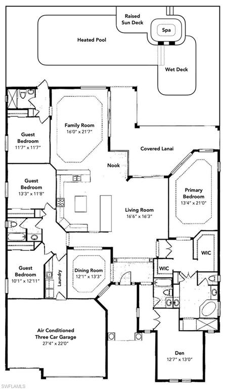 Live the Ultimate Vacation Lifestyle in The Quarry! This stunning home in the prestigious Quarry community offers the perfect blend of luxury and relaxation. Boasting 4 spacious bedrooms plus a den, 3 full baths, and an extended 2-car garage, this home provides over 3,000 square feet of living space designed for comfort and style. From the moment you step through the elegant glass front doors, you are welcomed by an expansive great room floorplan, featuring a 16' pocketing sliding glass door that opens to the lanai, seamlessly blending indoor and outdoor living. The gourmet kitchen is a chef’s dream with a center island, an abundance of cabinetry, brand-new quartz countertops, a large counter-height breakfast bar, and both formal and informal dining areas, making it ideal for entertaining guests or enjoying family meals. The luxurious master suite offers a private retreat with a sliding glass door to the lanai and a spa-like bath featuring dual vanities, a walk-in shower, and a soaking tub – perfect for unwinding after a long day. Step outside to the expansive lanai and enjoy breathtaking sunsets with the home’s direct west-facing rear exposure. The heated pool with raised spa, built-in outdoor kitchen with grill & hood, and a bar table create the ultimate outdoor living space for relaxing or hosting friends and family. Additional highlights include a NEW ROOF (2021), updated HVAC units (2021 & 2018), freshly painted interior (walls, doors, trim, ceilings), electric roll-down hurricane screens on the lanai, freshly painted interior and exterior, brand-new quartz countertops throughout the kitchen and baths, central vac, electric ceiling storage racks in the garage, whole house Kinetico water treatment system, and brand-new European White Oak wood floors in the bedrooms. Other fine details include updated chandeliers, fans, and bath fixtures, a central vacuum system, plantation shutters on all windows, 7" crown molding, and a finished garage floor. The Quarry is an exceptional lakefront community offering unparalleled amenities and a lifestyle like no other. Enjoy boating, golf, tennis, pickleball, bocce ball, a Tiki Bar, poolside food and drink service, a fully equipped gym, and a variety of social activities. The recently renovated and expanded “Lake Lodge & Beach Club” provides the perfect setting for relaxation, while over 500 acres of navigable lakes (with boat slips available for lease) offer endless opportunities for water enthusiasts. The private 18-hole golf club features optional golf and social memberships, providing an elite experience for golf lovers. Don’t miss the opportunity to own this incredible home and experience the resort-style living that only The Quarry can offer. Schedule your private showing today!