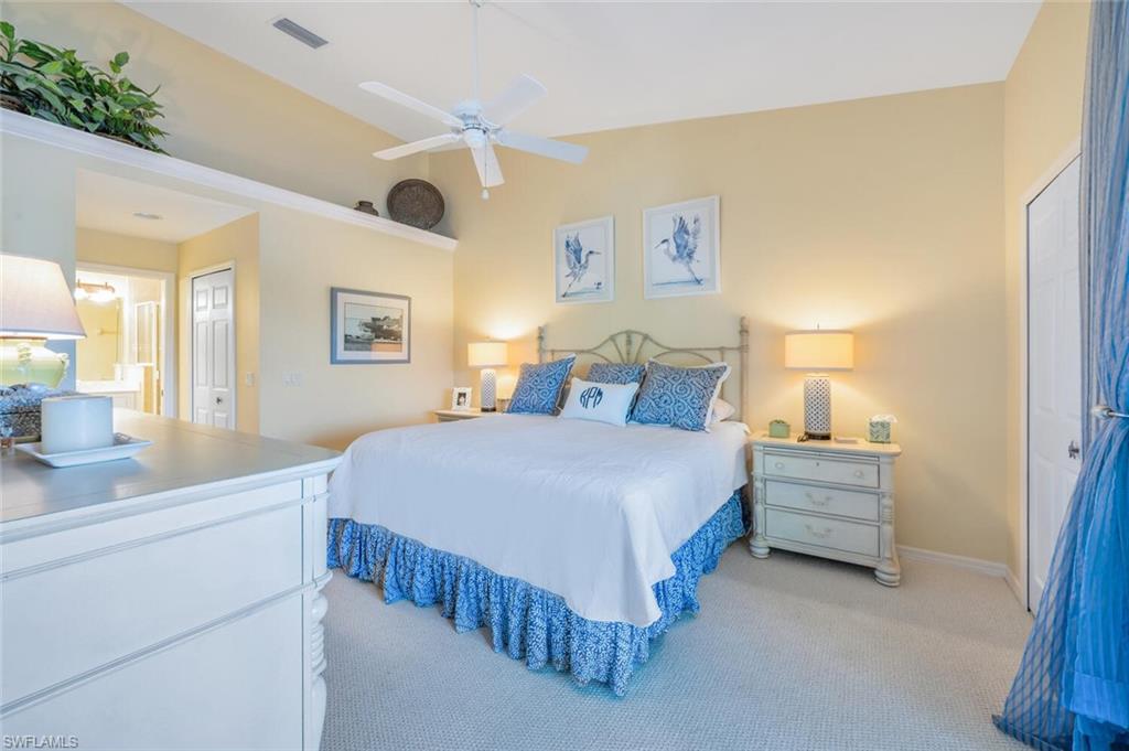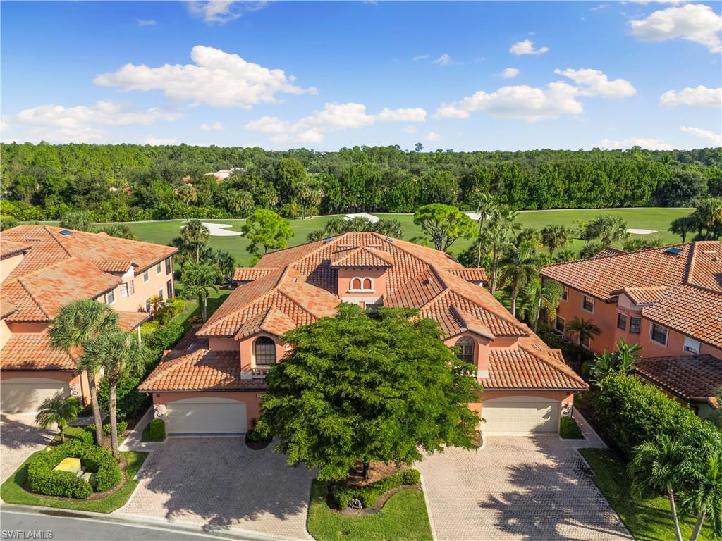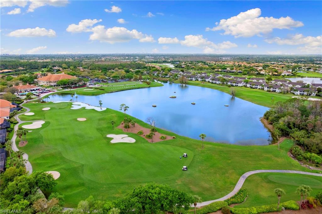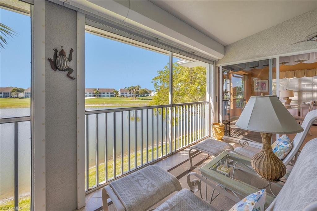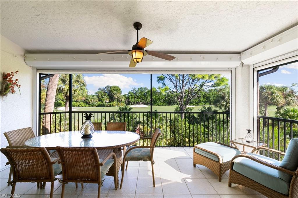Breathtaking Views! Enjoy immediate golf, lake, and fountain views from this meticulously maintained 2nd-floor condo, offering the spacious feel of a single-family home with stunning southwest exposure. Ideally situated just steps from the community clubhouse and pool, this residence provides ultimate convenience. Featuring three en-suite bedrooms and baths, this home ensures privacy and comfort for both family and guests. High-end furnishings, in pristine condition, are included. Systems: A/c 2 year - prepaid transferable maintenance contract; and Roof is newer at 2 years. The Pinnacle community boasts wide, beautifully landscaped streets, enhancing its curb appeal. Residents enjoy an active, country club lifestyle with access to three impeccably maintained 9-hole golf courses, tennis and pickleball courts, a fitness center, and a resort-style pool with lap lanes. The newly renovated community restaurants—The Grill Room and Veranda, Tavern 59, and The Island Bar—offer fantastic dining options. Additional amenities include new bocce courts and a recently added croquet center. Perfectly located just a short drive from Mercato, Venetian Village, Waterside Shoppes, and the some of the best beaches of the Gulf, this home offers the best of luxury and convenience.