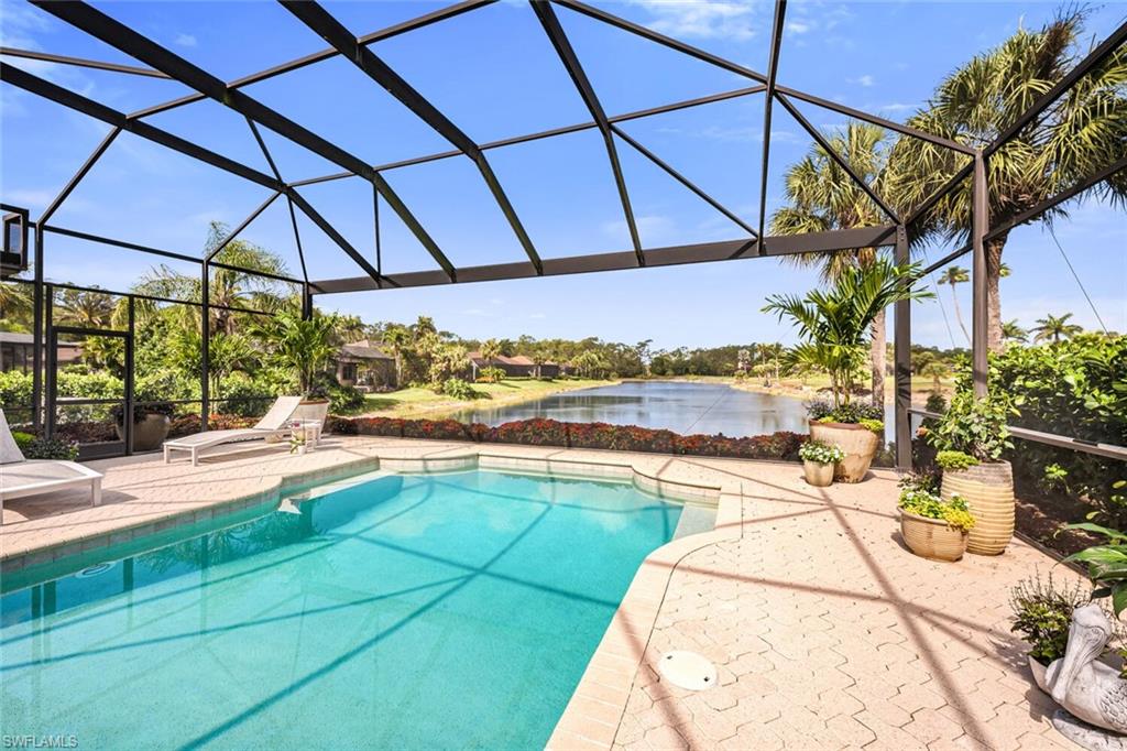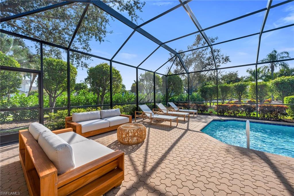 If you’ve been waiting for the right home in North Naples, a place that’s peaceful, beautifully cared for and ready for your next chapter, you will want to see this home. The custom Arthur Rutenberg Tradewinds III blends timeless design with noteworthy updates offering comfort, privacy and easy living in one of Naples’ most respected golf communities. From the moment you step inside, natural light and warm open spaces welcome you. There is a separate living room and great room, as well as a morning room with seamless corner window, all having direct access to lanai. The great room has south-facing oversize picture windows with golf course view. Kitchen has custom cabinetry, two islands, Italian marble, SS appliances, pull out pantry and remote skylight that lets in fresh air and west sunlight. The private primary suite commands the entire length of one side of the house, with oversized bath, room-size custom closet and a separate shoe closet. Primary bath is spa inspired, finished in Porcelanosa tile, French made vanities, free standing air jetted tub, LED mirrors and frameless shower. It is a soothing space that aligns with calming energy. Outdoor living area is just as impressive, with massive lanai, large pool and spa. Mature landscaping and new Calusa privacy hedge bring in Nature’s tranquility. Imagine quiet evenings outside, weekend gatherings or a morning swim before golf with friends. There is even an outdoor kitchen with custom cabinetry, TEC infrared grill, separate built in burner, custom SS venting, bar sink and granite counters. Recent updates to pool equipment (including new heater and pump), screened cage, and complete pool resurfacing allow headache-free enjoyment. Significant improvements make ownership easy, including 2025 roof, new water heaters, new gutters, fresh paint exterior & interior, updated irrigation system, hurricane-rated windows and motorized shutters. A 3.5 car garage with new epoxy flooring and full attic planking round out this exceptional home. The location within the Strand also adds appeal. The private back gate entrance offers quick access. Strand amenities include 27 holes of championship golf, tennis, pickleball, bocce and lawn croquet; as well as a fitness complex, multiple dining venues and a clubhouse with a full calendar of social activities. It is one of North Naples’ most desirable and inviting private clubs. If you are looking for a move in ready home with exceptional outdoor living, thoughtful improvements and a prime location near Publix, Target and Walmart, this home offers a comfortable, relaxed environment that exemplifies the Naples casual easy lifestyle.