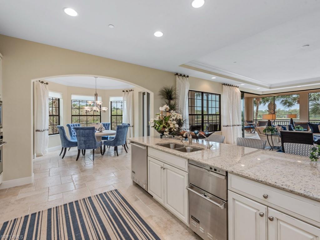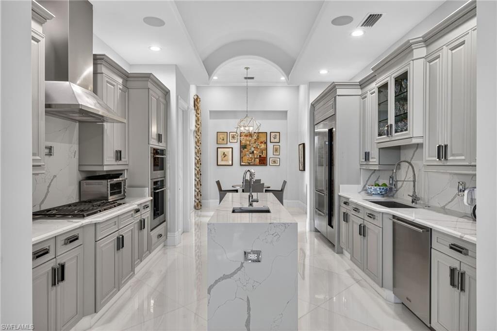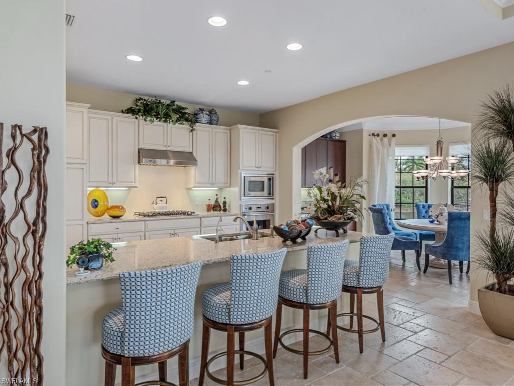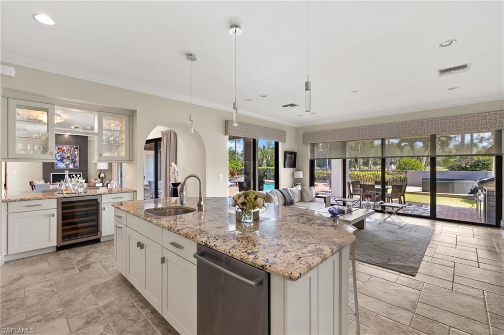 Gorgeous updated kitchen and stunning lake and golf course views! Marsala is a luxury golf course community located at The Ritz-Carlton Naples, Tiburon. This meticulously maintained property offers just under 4,000 square feet of luxurious living space. The gorgeous updated kitchen with gas cooktop, large wine refrigerator and an oversized quartzite waterfall island. The open floor plan flows seamlessly and blends modern design with inviting decor, creating a sophisticated yet welcoming atmosphere. This exceptional home features four spacious bedrooms, four full bathrooms, a den, and three-car garage. Enjoy the outdoor oasis with spacious pool, spa and summer kitchen, equipped with gas grill, sink, and refrigerator, ideal for hosting friends and family. In addition to the beautiful interior, this property features all newer AC units, pool equipment, tankless water heater, and the mini-split AC keeps the three car garage nice and cool. This lovely home represents the epitome of luxury living in one of Tiburon's most sought-after communities. GOLF MEMBERSHIPS are IMMEDAITELY AVAILABLE, but not required. Furniture is negotiable.Tiburon offers 36 holes of Greg Norman-designed championship golf, concierge services, restaurants, a fitness center, spa, tennis, and a private beach shuttle. Tiburon is just 3 miles from Vanderbilt Beach and 1.5 miles from the shops and restaurants at Mercato. Don’t miss the opportunity to make this exceptional home your own!