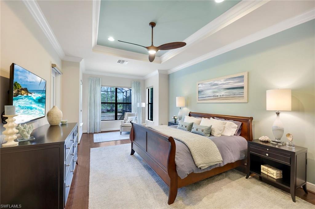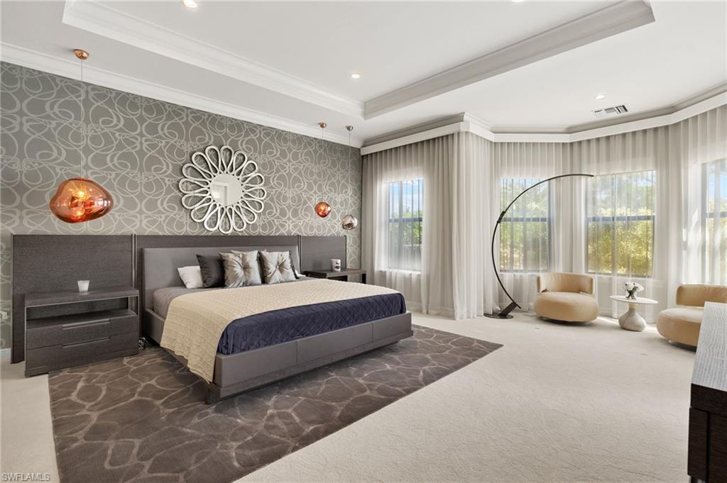 In the prestigious Tiburon community, this five-bedroom, 4.5-bath estate has been completely renovated for open-concept living, blending modern elegance with timeless sophistication. Thoughtfully curated finishes and designer details elevate every space, creating an inviting yet luxurious atmosphere. New White Oak hardwood floors flow seamlessly throughout, enhancing the open and airy feel. The custom-designed kitchen is a chef’s dream, featuring Décor cabinetry, luxury appliances and quartzite countertops, ideal for everyday living and entertaining. New Marvin impact windows and sliders not only enhance the home’s beauty but also provide superior insulation, allowing for a peaceful and quiet indoor retreat. Enter into spa-like serenity in the fully renovated primary bath, where a frameless glass walk-in shower with floor-to-ceiling natural stone, a sculptural free-standing tub, and a custom double vanity with high-end cabinetry create a tranquil retreat. Every detail is designed for beauty, function and relaxation. The outdoor living space is equally impressive, featuring a private heated pool and spa, a newly finished pool surround, and a fully equipped outdoor kitchen with a new grill, ideal for entertaining. A generous backyard retreat offers serene fountain views, providing a peaceful setting for morning coffee or evening gatherings. A private guest cabana ensures a comfortable, stylish space for family and friends. In one of Naples sought-after enclaves, this home offers access to world-class golf, resort-style amenities and the unparalleled service of The Ritz-Carlton. This is a rare opportunity to own a fully reimagined luxury home in the heart of Tiburon.