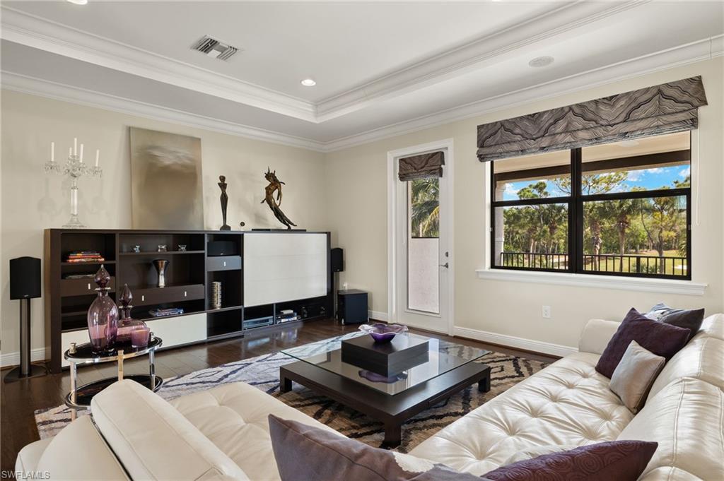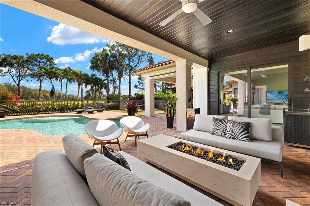 Discover refined living in Marsala at Tiburón, an exclusive enclave within the world-renowned Ritz-Carlton Golf Resort, Naples. Enjoy a front-row seat to captivating sunsets over the 15th fairway of Tiburón’s prestigious Black Course—your private backdrop every evening. With immediate golf membership available, the coveted Tiburón lifestyle is yours from day one. This elegantly designed residence offers more than 3,400 square feet of luxury living, featuring 3 spacious bedrooms, a dedicated office, and 3.5 baths. The open-concept layout is ideal for both relaxed everyday living and effortless entertaining. Rich wood flooring flows throughout the main living areas, den, and primary suite, while expansive windows frame sweeping golf course views and fill the home with natural light. Plantation shutters throughout add timeless appeal. The gourmet kitchen is a chef’s dream, complete with soft-close wood cabinetry, gleaming granite countertops, high-end appliances, and a generous center island perfect for casual dining or hosting guests. A whole-house built-in audio system allows you to enjoy your favorite music indoors and out. Step outside to your private outdoor sanctuary, where a gas-heated pool and spa invite complete relaxation. The built-in outdoor kitchen and fireplace make entertaining a breeze, while lush landscaping creates the perfect sense of privacy. Built for lasting comfort and peace of mind, the home offers natural gas, impact-resistant doors and windows, and is ideally positioned in FEMA’s desirable X-zone (no flood insurance required). Located in one of North Naples’ most sought-after communities, Marsala at Tiburón places you just minutes from pristine beaches, upscale shopping, fine dining, and the vibrant atmosphere of Seed to Table. Don’t miss this rare opportunity to own a home that blends timeless elegance, resort-style amenities, and the very best of Southwest Florida living.