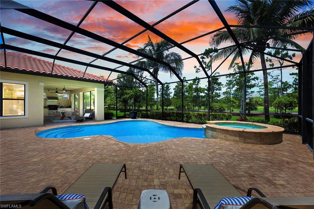 Experience Sunset Views and Luxury Living at Marsala at Tiburón Imagine unwinding each evening with a front-row seat to the spectacular sunsets over the 15th fairway of the prestigious Black Course at Tiburón Golf Club, located within the renowned Ritz-Carlton Resort. With immediate golf membership available, your dream lifestyle is within reach from day one. This spacious, beautifully appointed residence offers over 3,500 square feet of luxurious living space, featuring 4 generously sized bedrooms, a dedicated office, and 3.5 bathrooms—ideal for entertaining guests or enjoying quiet family time. Inside, rich wood flooring flows throughout the main living areas, den, and elegant master suite. The gourmet kitchen is a chef’s dream, complete with soft-close wood cabinetry, stunning granite countertops, top-tier appliances, and a dedicated bar area with glass-front cabinets and a wine refrigerator—perfect for hosting unforgettable evenings. Step outside to your private outdoor oasis. A gas-heated pool and spa invite you to relax or entertain, while the built-in outdoor kitchen makes weekend cookouts effortless. This home is powered by natural gas and designed with comfort and durability in mind, including impact-resistant doors and windows and a prime location in FEMA’s desirable "X" flood zone—offering peace of mind year-round. Set in one of North Naples’ most sought-after and welcoming communities, Marsala at Tiburón offers an unbeatable location—just minutes from world-class beaches, upscale shopping, fine dining, and the iconic Seed to Table, less than two miles away. Don’t miss your chance to own a slice of paradise and enjoy the very best of the Southwest Florida lifestyle!