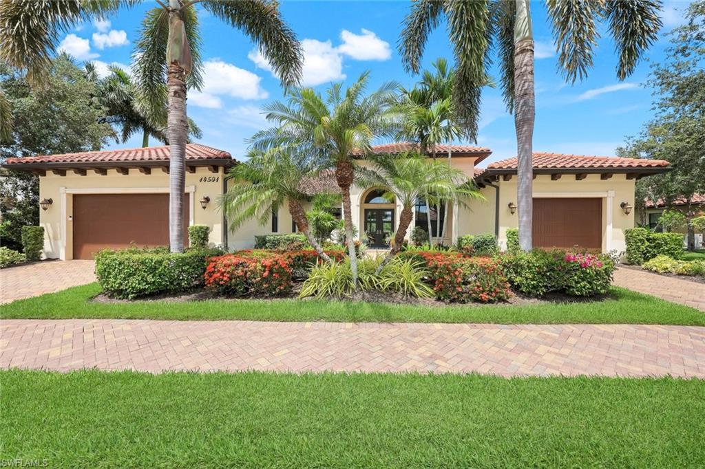 Immediate full golf membership available! Step into luxury living with this beautifully updated single-family home in the exclusive, double-gated community of Serafina at Tiburón. Enjoy the convenience of condominium-style living with landscaping and pool maintenance included in the HOA, all while relishing the privacy and space of a standalone home. The main level features a spacious primary suite and two additional en-suite bedrooms, all thoughtfully designed for comfort and privacy. Upstairs, a large bonus room serves perfectly as a fourth bedroom, second family room, or playroom. An elevator provides easy access between levels. Enjoy high-volume ceilings, a new roof (December 2023), coated garage floors, and Tesla EV charger. Conveniently control main home systems, security, and cameras remotely. The private pool and patio area offer serene outdoor living, with neighboring pools thoughtfully positioned for maximum seclusion. The home includes two powder rooms, one conveniently located near the pool. The chef’s kitchen is outfitted with top-of-the-line appliances, including a high-BTU gas cooktop, Sub-Zero refrigerator/freezer, wine cooler, wall oven, dishwasher, warming drawer, and Viking microwave. A whole-home water filtration system and spacious laundry room add everyday luxury. Don’t miss this rare opportunity to own in one of Naples’ most prestigious communities — with immediate full golf membership availability to match.