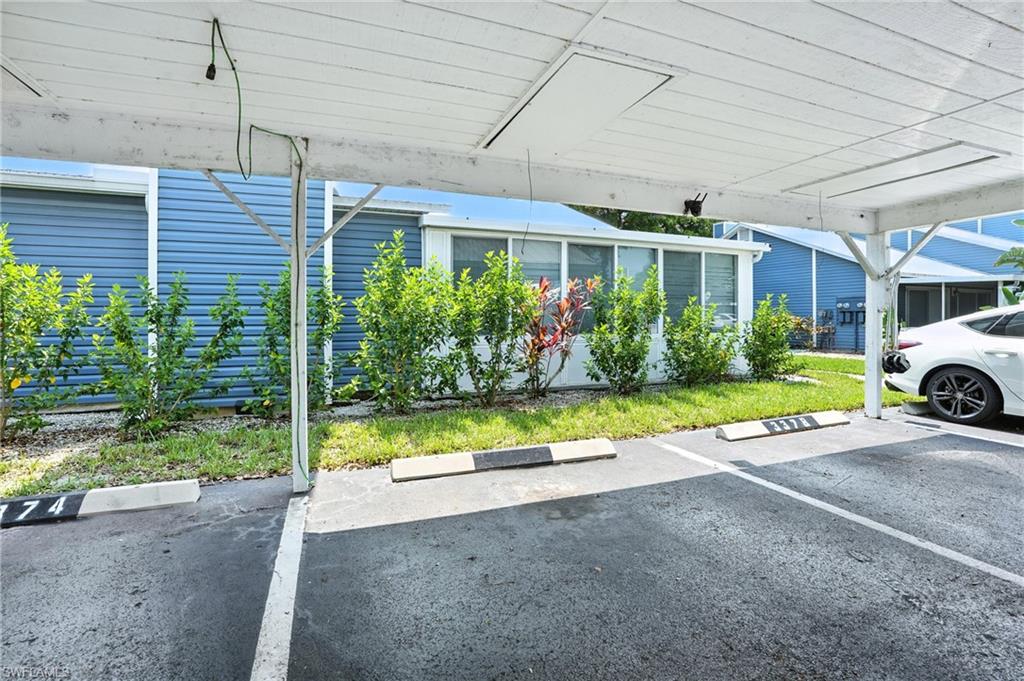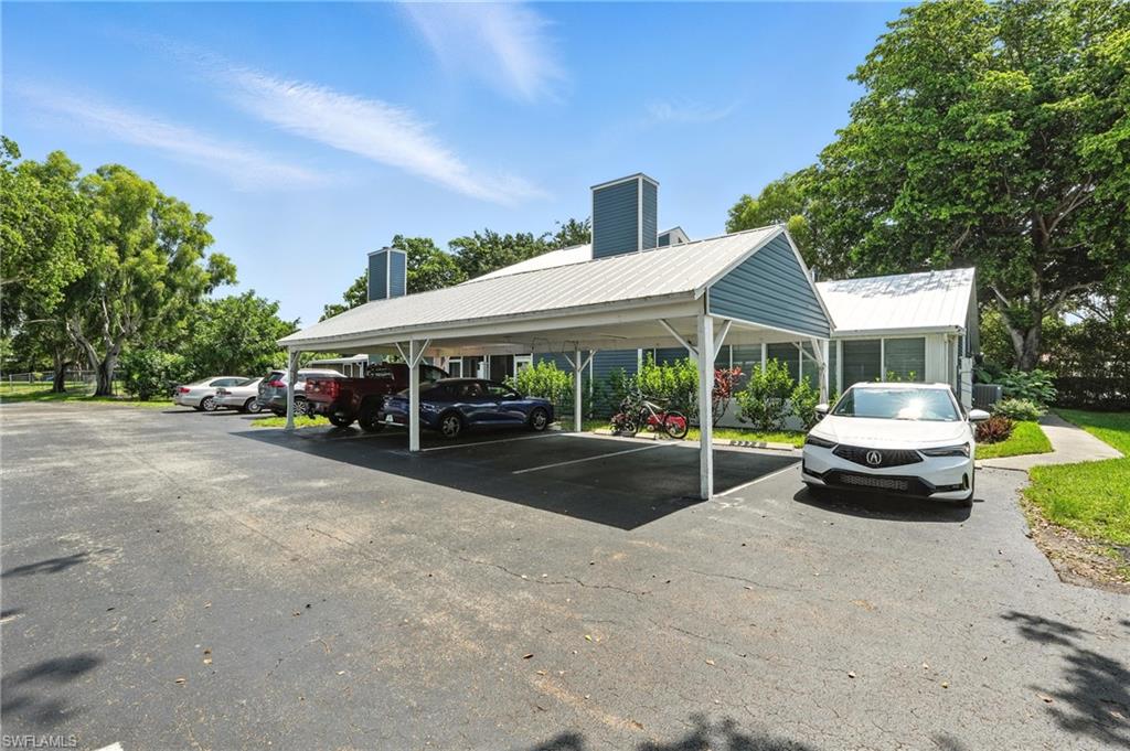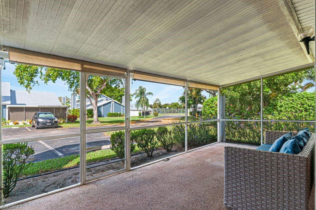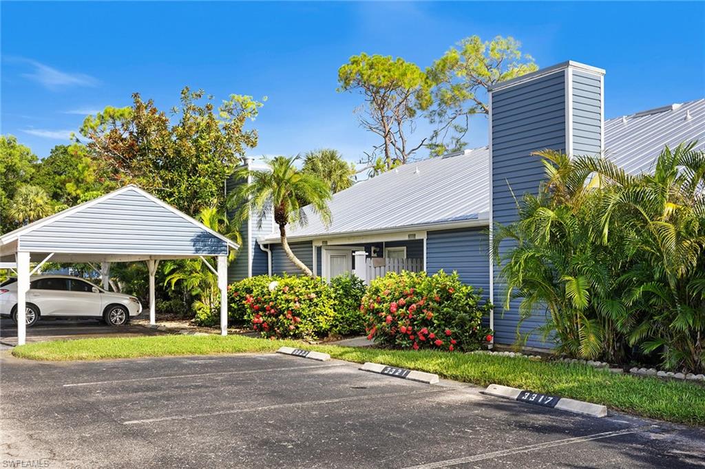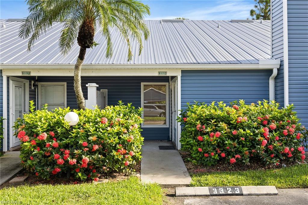 Welcome to this light and airy villa offering an exceptional value and room to make it your own whether you like to entertain or prefer to relax in your own private oasis. This home has been freshly painted in a neutral palette and features an open-concept layout with split bedrooms, plus vaulted ceilings and a cozy, modern fireplace as a focal point in the living area. Enjoy seamless indoor-outdoor living with oversized sliding doors that open to a private, screened-in lanai—perfect for morning coffee or evening gatherings. The large primary suite includes direct access to the lanai and generous closet space while the home also features an in-house laundry area and several storage closets to help with everyday organization. While the kitchen and bathrooms are functional, they present an exciting opportunity for you to design and add your personal updates to make it your own tranquil retreat. Timberwood has new metal roofs and siding and maintains the outdoor landscaping and irrigation for a low-maintenance lifestyle and is located in the X500 flood zone. The property includes 2 assigned parking spaces including a covered carport plus an additional parking space in front of the building and Timberwood is ideally located in a highly rated school zone and provides a close-in Naples’ address located near excellent services, dining and shopping areas for easy access to everyday essentials. The community is pet friendly with a nice dog park and also offers a sparkling pool, clubhouse, playground, basketball court, and tennis courts for year-round outdoor enjoyment. Whether you’re looking for a primary residence, a seasonal escape, or a rental opportunity, this villa offers the perfect blend of charm, privacy, and potential—all in a quiet, well-maintained and desirably located neighborhood.