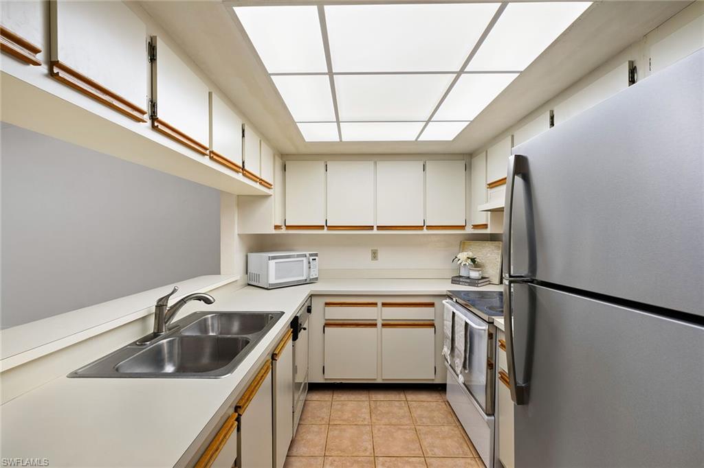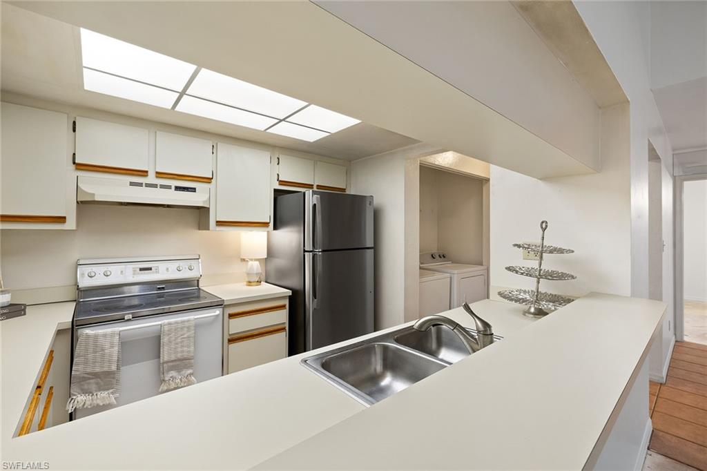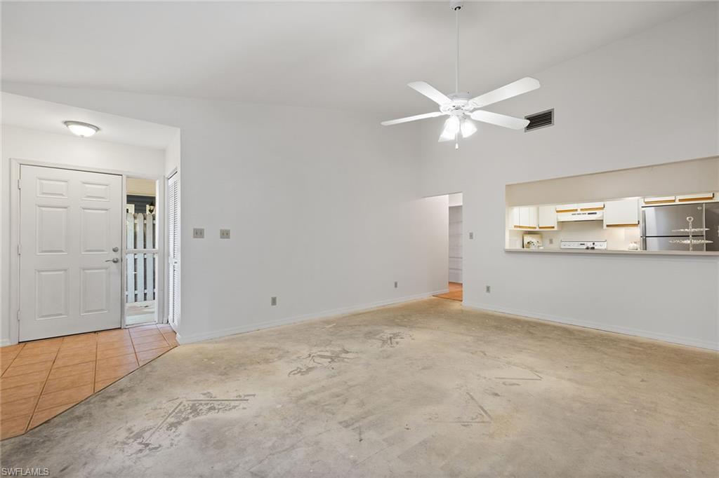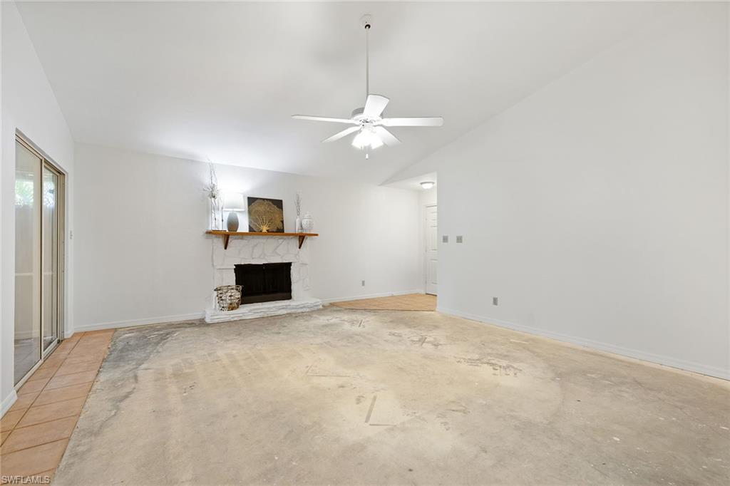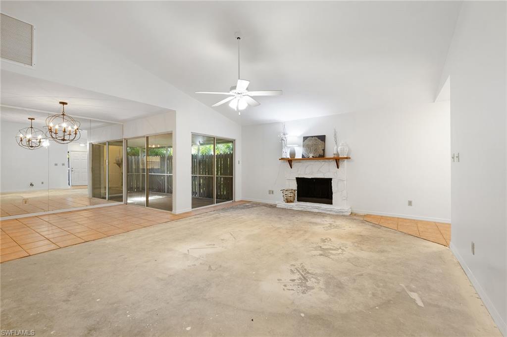 Welcome to this light and airy villa offering an exceptional value and room to make it your own whether you like to entertain or prefer to relax in your own private oasis. This home has been freshly painted in a neutral palette and features an open-concept layout with split bedrooms, plus vaulted ceilings and a cozy, modern fireplace as a focal point in the living area. Enjoy seamless indoor-outdoor living with oversized sliding doors that open to a private, screened-in lanai—perfect for morning coffee or evening gatherings. The large primary suite includes direct access to the lanai and generous closet space while the home also features an in-house laundry area and several storage closets to help with everyday organization. While the kitchen and bathrooms are functional, they present an exciting opportunity for you to design and add your personal updates to make it your own tranquil retreat. Timberwood has new metal roofs and siding and maintains the outdoor landscaping and irrigation for a low-maintenance lifestyle and is located in the X500 flood zone. The property includes 2 assigned parking spaces including a covered carport plus an additional parking space in front of the building and Timberwood is ideally located in a highly rated school zone and provides a close-in Naples’ address located near excellent services, dining and shopping areas for easy access to everyday essentials. The community is pet friendly with a nice dog park and also offers a sparkling pool, clubhouse, playground, basketball court, and tennis courts for year-round outdoor enjoyment. Whether you’re looking for a primary residence, a seasonal escape, or a rental opportunity, this villa offers the perfect blend of charm, privacy, and potential—all in a quiet, well-maintained and desirably located neighborhood.