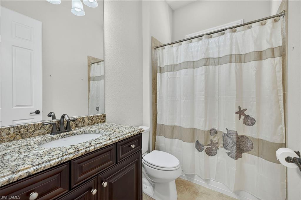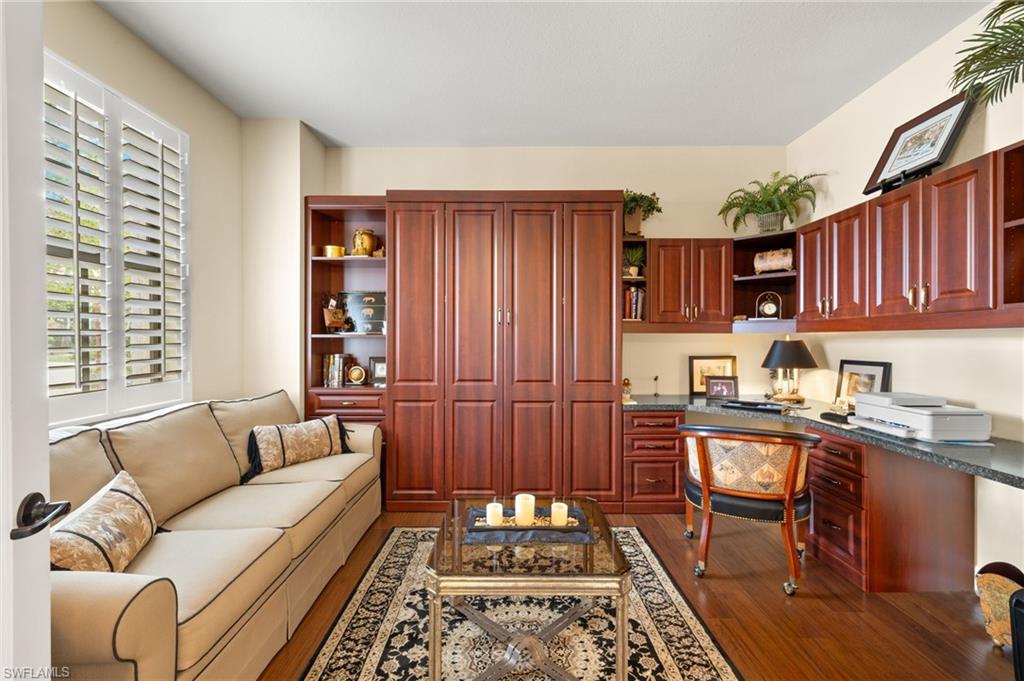 This is an amazing executive home available at Treviso Bay and it could be YOURS!! GOLF MEMBERSHIP INCLUDED and being sold completely furnished/ turnkey or unfurnished, you choose!! Located in the heart of Naples with resort-style amenities, this opportunity tends to be hard to beat. This lake view home is known as the 'Victoria' floor plan which is an open concept, 1-story home with a 2-car garage. Inside offers 1,850 square feet which includes 2 spacious bedrooms, a den, 2 full bathrooms and a half bath located out on your lanai. With this layout you'll notice the living area flows into the kitchen and eating area. Within that very kitchen, you have stainless steel appliances, sleek granite countertops, a breakfast bar, a pantry, and ample cabinet space. On its own side of the home, you have your spacious primary suite with sliding doors leading to your lanai. Features in there include a bathroom with a walk-in glass shower, a separate tub, private bathroom, walk-in closet, and dual sinks. To give ample privacy to everyone residing, there is one spacious guest bedroom, bathroom, and den on the opposite side of the home. In that same den, you have a built in desk with a drop down Murphy bed - Perfect for accommodating extra guests! Additional tasteful updates added by the owner include plantation shutters throughout, storm shutters on the exterior (a value of over $7K), a glass shower door in guest bathroom, laminate flooring in bedrooms, updated paint schemes, custom woodwork on ceiling in living room, chair rail/ picture framing woodwork in main areas and wood ceiling on lanai. As for appliances, the fridge is less than a year old, the washer is about a year old and the dishwasher was replaced 2 years ago! Everything is move-in ready for you! The best part? Step outside onto your screened in lanai where you have the luxury of enjoying the long lake views by the pool and spa or even cooking at your outdoor kitchen! Enticing, wouldn't you agree? The luxury amenities are the topping on the cake, featuring: an 18 hole - par 72 - TPC championship golf course, a spa & salon, fitness center, 8 tennis courts, a resort style pool with poolside restaurant & tiki bar, pickleball, and MUCH MORE.