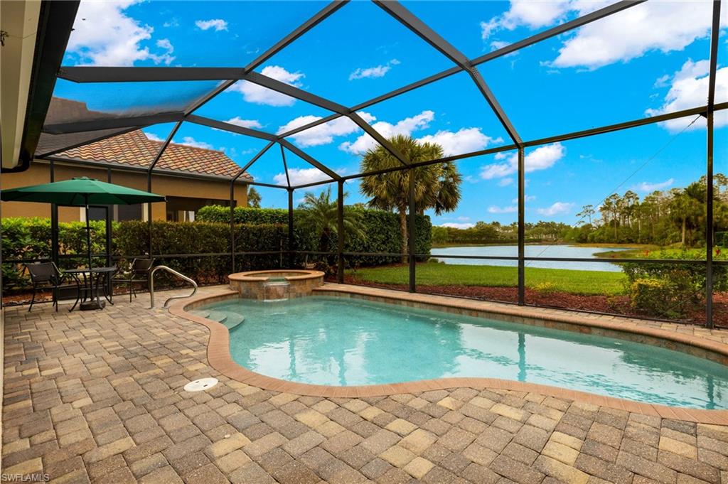 PEACEFUL, QUIET, GORGEOUS WATER VIEW home with FULL TPC Treviso Bay golf membership sold Turnkey! Welcome to 9522 Piacere Way, a meticulously maintained 3-bedroom plus den (or 4th bedroom), 2-bathroom pool home situated on an exceptionally beautiful lot with water and preserve views in the sought-after Treviso Bay community. This lot is situated near the Piacere Way cul de sac providing a tranquil location just walking distance to the 5 star Treviso Bay amenities. This charming residence offers a thoughtfully designed floor plan which brings abundant natural light, welcoming foyer, guest rooms and den are separated from the primary suite, large kitchen with stainless steel appliances and relaxing living room which invites you to the peaceful outdoors! This home boasts 2,200 sq ft of easy living! The owners have even installed a drop down electric screen to project your favorite movies or streaming your favorite series! Tile flooring is cut on the diagonal and continuous throughout the home, no carpet! Once you enter the foyer your eye is drawn all the way to the calm eastern exposure lanai offering an outdoor kitchen with wine cooler and gas grill, in ground pool/ spa, relaxing patio furniture, mindfully placed landscaping and lighting beyond the screened in cage! Move in ready this home is sold turnkey with everything you could think of~ just bring your suitcase! This lovely home comes with a TRANSFERABLE TPC GOLF MEMBERSHIP to enjoy! This entitles you to play the many TPC designated golf courses around the United States! Treviso Bay's Five Star amenities are second to none boasting the Villa Rilassare amenity center La Brezza resort style pool and full bar, professionally staffed fitness center, tennis courts, bocce, pickle ball, basketball and full spa services. The spectacular Treviso Bay TPC Golf clubhouse has two dining rooms, library, TPC pro shop, luxurious locker rooms and a breathtaking terrace over looking hole 9 and 18 to enjoy cocktails or fine dining. Just 5 miles away from Naples beautiful sandy beaches and fabulous 5th Ave shopping and restaurants!