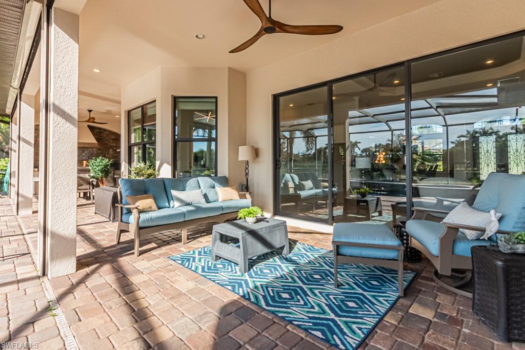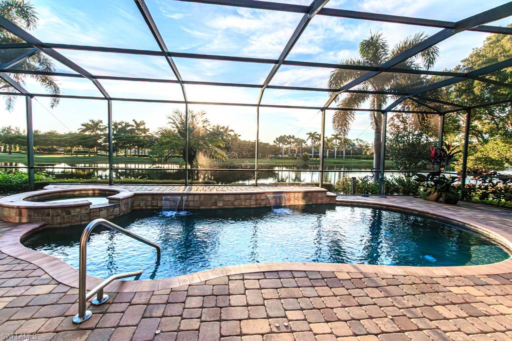 IMMEDIATE FULL GOLF MEMBERSHIP. Welcome to Resort Style living, welcome to Treviso Bay. TPC Treviso Bay is a private golf course within the gated community. The 18-hole Championship Golf Course was designed by Arthur Hills in consultation with Hal Sutton. Treviso Bay amenities include two clubhouses, a resort-style pool with a poolside restaurant, a fitness center, full-service spa/salon, eight tennis courts, bocce and pickle ball, and more. Located approximately 5 miles from world-class Old Naples restaurants, shopping, and beaches. This beautiful Lantana Model is a 4 Bedroom home with 3 full baths and 2 half baths and an upstairs Bonus Room. Custom Legno Bastone Wide Plank flooring throughout the home. The Spacious Owners Suite is located on the Main Floor and has access to the outside area. There are 2 Large Closets, a Spacious Bathroom with Dual Vanities and a Separate Tub and walk in shower. The Office has 2 Custom Built in Desks, which is ideal when working from Home. The three-car garage is climate controlled, there is a whole house generator installed in 2021 and two new 2023 AC Compressors. The outdoor Kitchen has just been remodeled with a new Viking Grill, new Hood and new outdoor beverage refrigerator. The Hurricane sliders open up to a magnificent expansive Lanai with a heated pool and spa and a fabulous Golf Course and Lake view.
