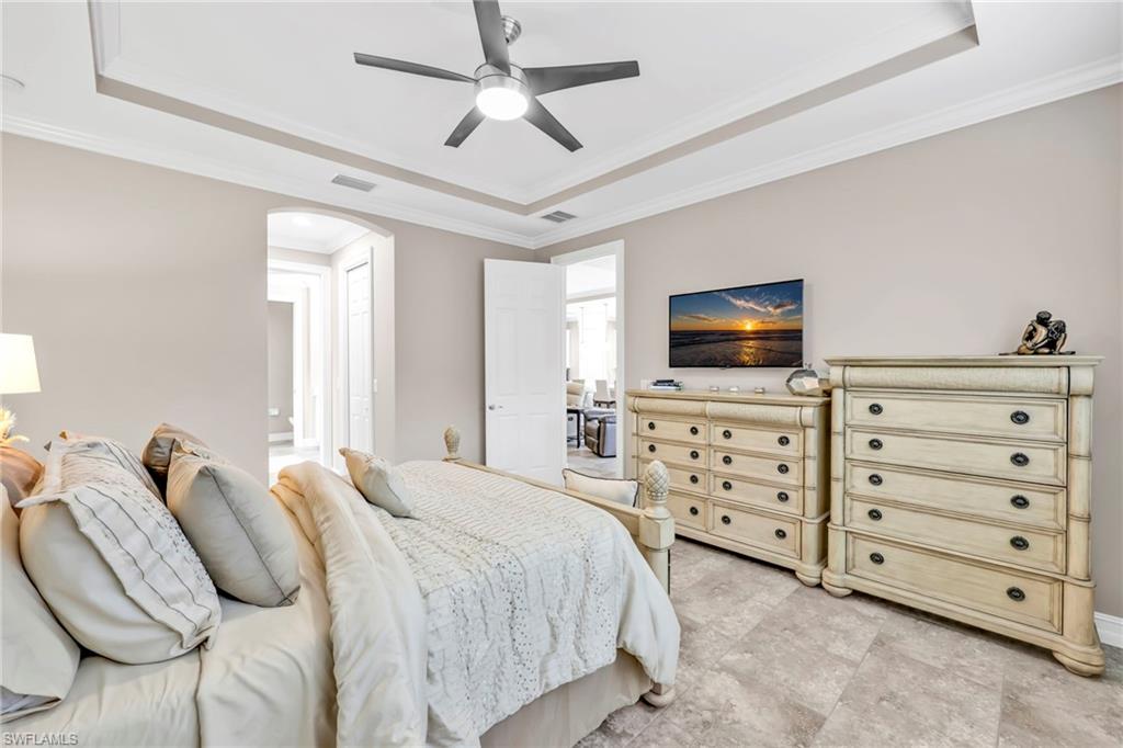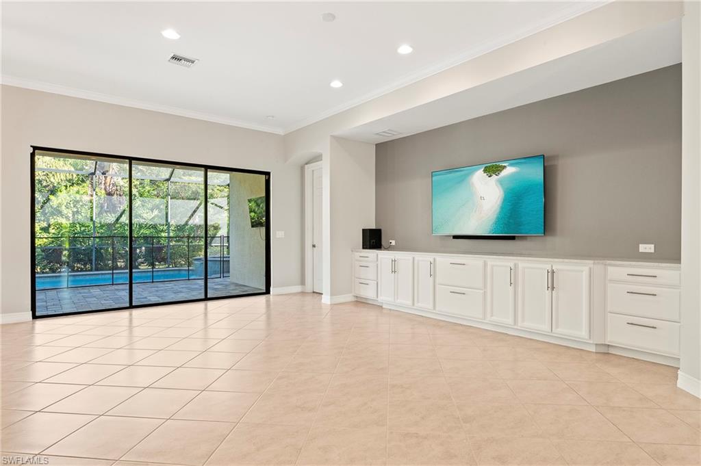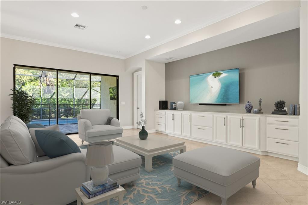 Welcome to your dream home in North Naples! Located in the gated community of Tuscany Pointe, this stunning single-story pool home blends luxury, comfort, and convenience-with low HOA and no CDD fees. Built in 2017, this meticulously maintained 3-bedroom + den, 2-bath home offers an open-concept layout with soaring 10-12 ft ceilings, crown molding, tray ceilings, wide baseboards, and tile flooring throughout. The kitchen boasts quartz countertops, a large island with oversized sink, stainless steel appliances, under-cabinet lighting, and a walk-in pantry. The spacious primary suite features two custom walk-in closets and an en suite with a beautiful soaking tub, frameless glass shower, and dual sinks. Step outside through one of three sliding glass doors to your private oasis: a heated pool with waterfall feature, built-in outdoor kitchen, bar seating, and an east-facing exposure. Additional Highlights: Air-conditioned extended 2-car garage with epoxy floors and built-in storage, Hurricane-impact windows + 3 remote-controlled Storm Smart screens, Whole-house water filtration system & exterior security cameras, No-see-um pool screen, retractable front entry screen, Upgraded landscaping with solar lighting & Brick Paver sidewalks down each side of the house. Tucked near the corner of Collier Blvd and Vanderbilt Beach Rd, you are minutes from top-rated schools, shopping, dining, and Naples' white sand beaches. Don't miss your chance to own this home in one of North Naples' most desirable communities.