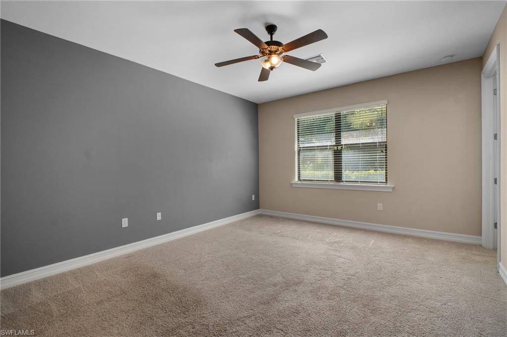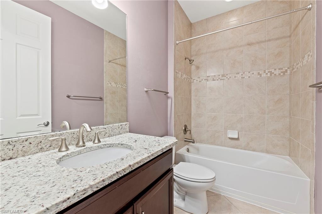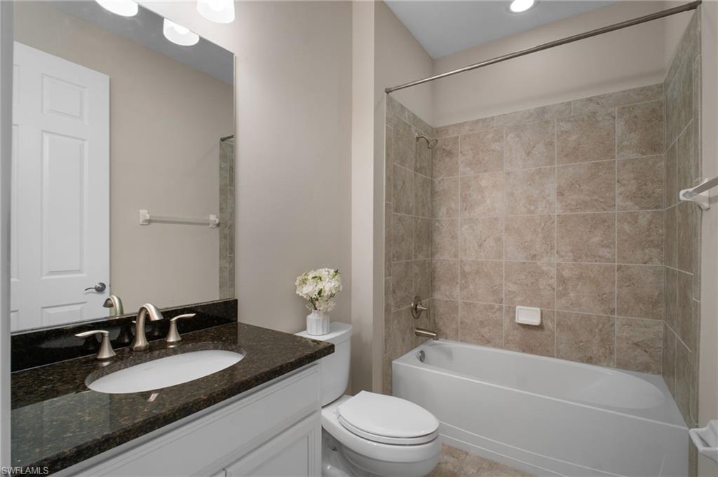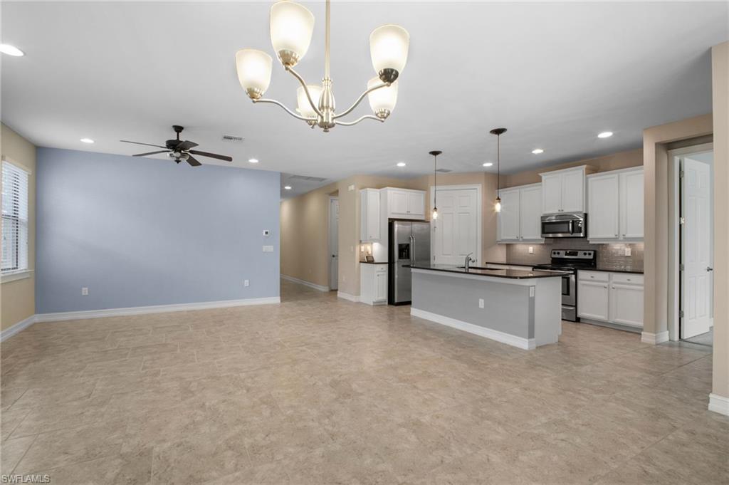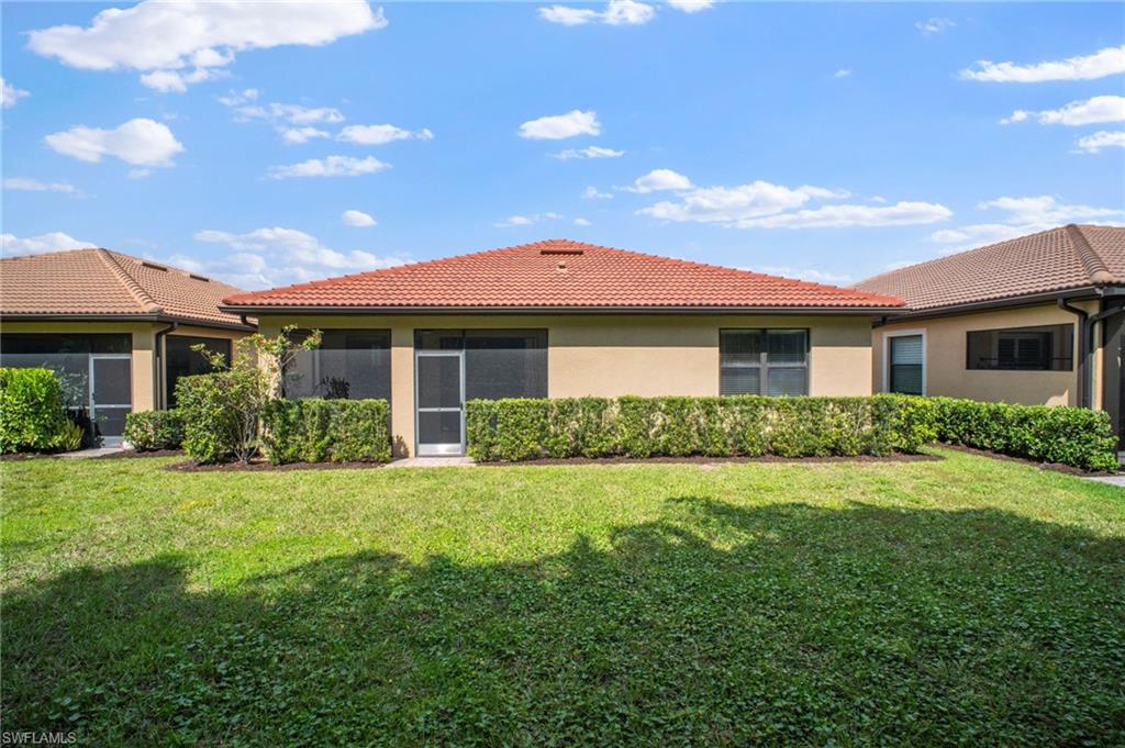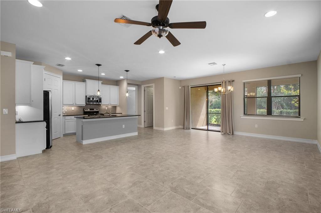 Welcome to Tuscany Pointe, a gated community in North Naples! This immaculate single-family home is move-in ready, featuring fresh neutral paint for a bright and inviting ambiance. The open-concept design seamlessly blends the living and dining areas, complemented by recessed lighting for a modern touch. The sleek white kitchen boasts stainless steel appliances, granite countertops, and a spacious walk-in pantry. The generously sized primary suite offers two large walk-in closets, a roomy walk-in shower, and dual vanities for ultimate comfort. Step outside to the screened lanai, perfect for enjoying Florida’s year-round sunshine. The private backyard provides ample space to add a pool and design your dream outdoor retreat. Additional features include a two-car garage for convenience and extra storage. Ideally situated in Naples, this home is just a short drive from pristine beaches, top shopping destinations, and diverse dining options. With easy access to I-75 and a quick commute to Southwest Florida International Airport, this exceptional home offers endless possibilities.