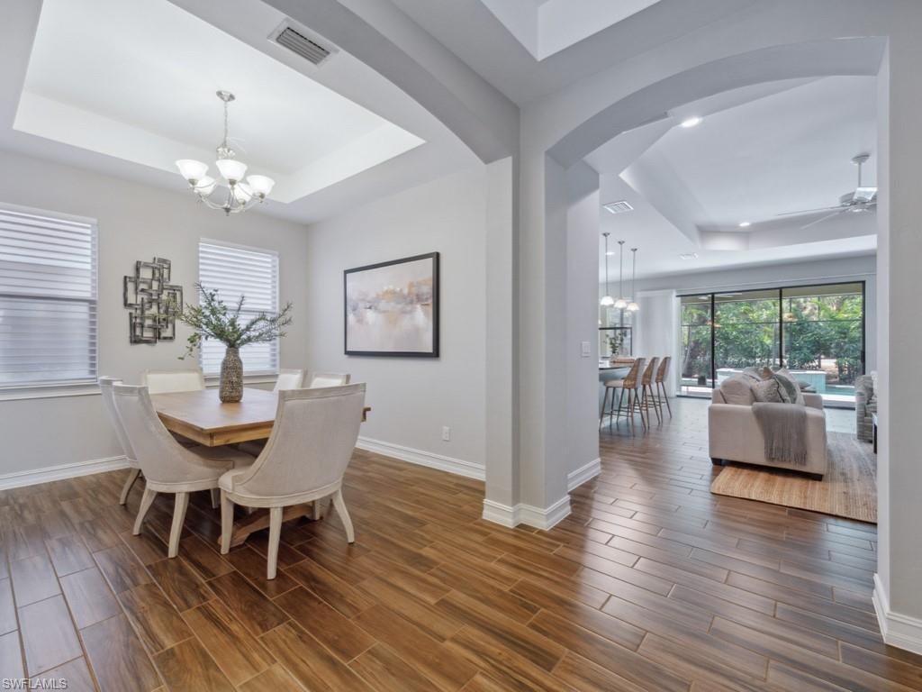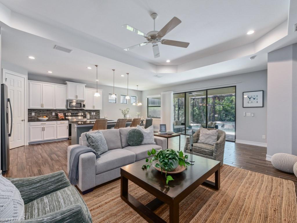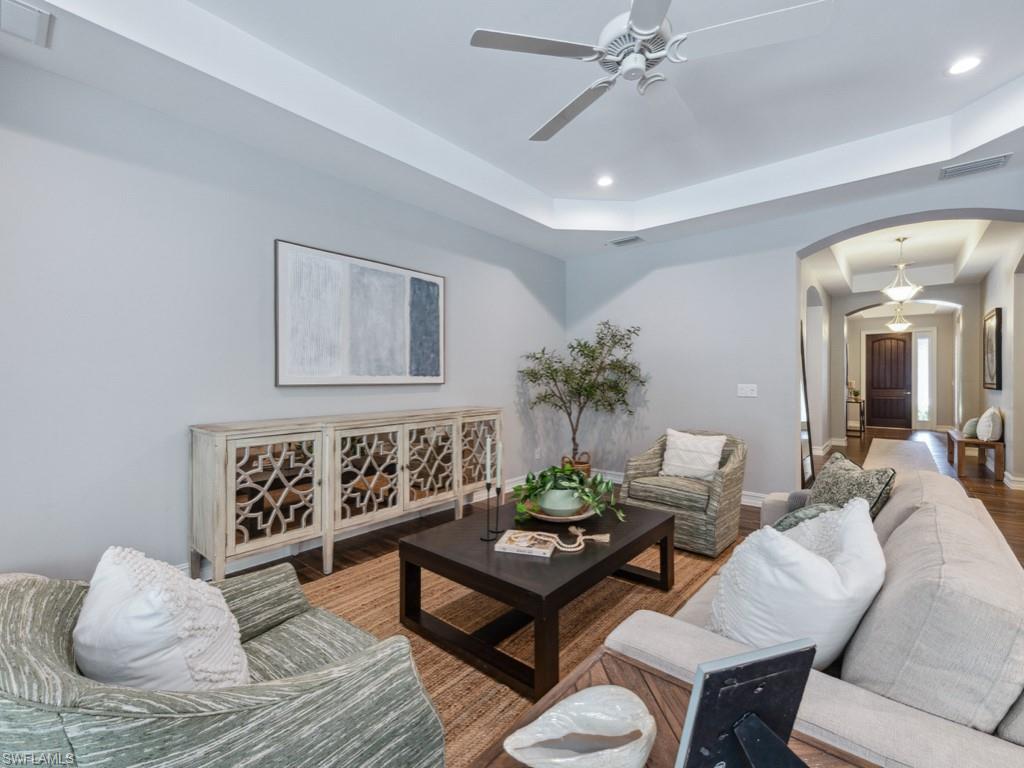 MOTIVATED SELLER! $150,000 in UPGRADES! Picture perfect, absolutely immaculate, GATED, upgraded lakefront home in gated low-density low fee neighborhood perfectly situated in North Naples. Every desirable shopping & dining necessity is within minutes. The Gulf of Mexico is less than 10miles away. Great school district. This split floor plan home is perfect for an active fun loving family, retiree, an empty nester, or professional couple working from home that needs a true office. Flexible floor plan. Recently upgraded with Quartz countertops, designer fixtures, an amazing upgraded Primary bathroom and a generously sized private sparkling swimming pool. The outdoor living space is extremely private and offers the perfect combination of open sunshine and covered space for relaxation and grilling, dining, and entertaining. Super easy to view! Quarterly fees are only $ 860 - very pet friendly