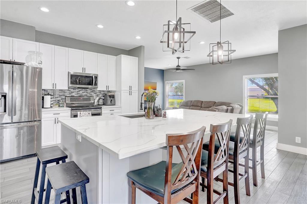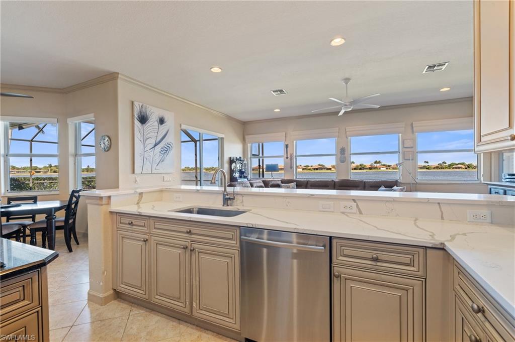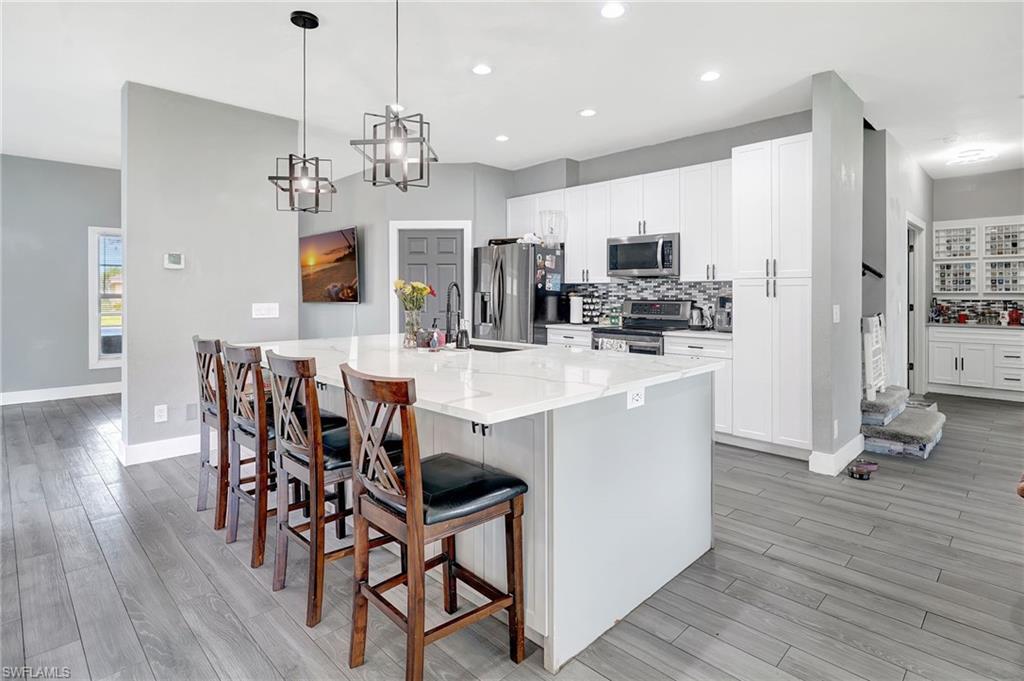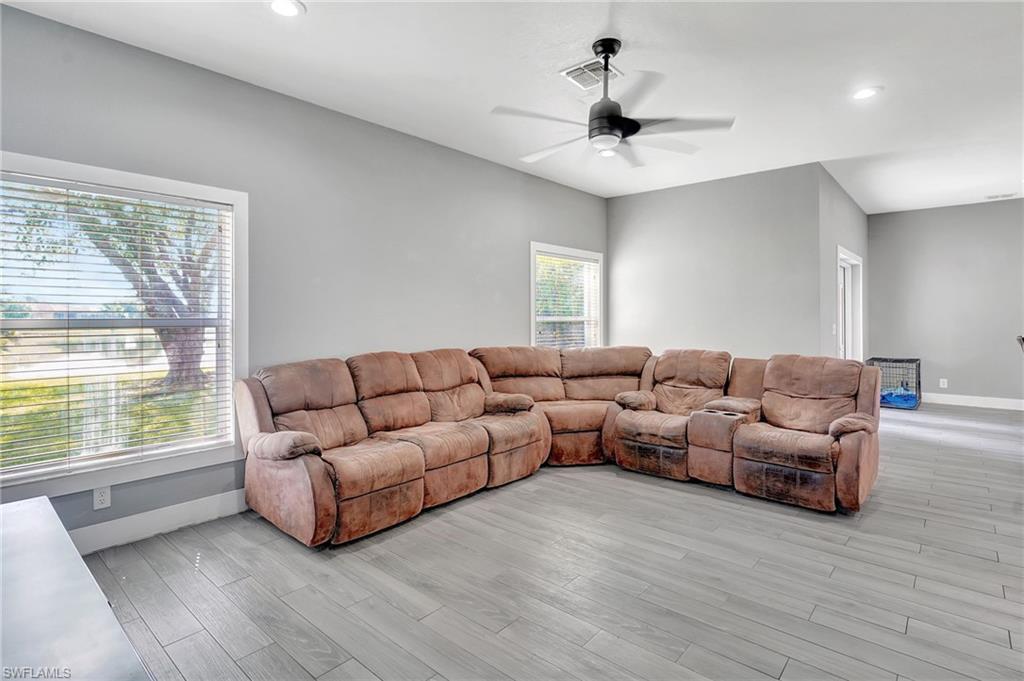 Welcome to 2055 Grove Drive At the end of a quiet cul-de-sac in beautiful Valencia Lakes, your Naples dream home awaits. Set on two lots with serene southern lake views, this four-bedroom, three-bath residence blends comfort, space, and style. Step inside to an open-concept living, dining, and kitchen area with quartz countertops, stainless steel appliances, and a spacious island—perfect for morning coffee or evening entertaining. The split-bedroom design offers privacy for all, with a primary suite featuring tray ceilings, dual vanities, and a luxurious walk-in shower. Need a home office? You’ve got one—climate-controlled and ready for productivity. Enjoy the peace of your fully enclosed lanai overlooking the lake or take advantage of the newly refreshed 2025 amenities: a modern clubhouse, pool, fitness center, tennis, and pickleball courts. 2055 Grove Drive—where lakefront living, comfort, and convenience come together in one perfect Naples address.