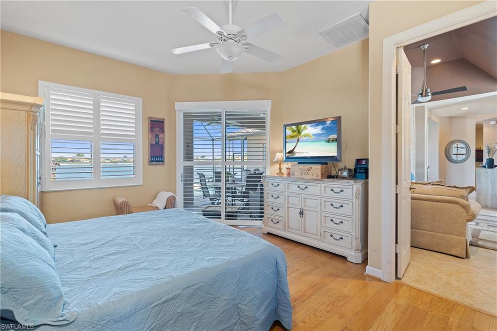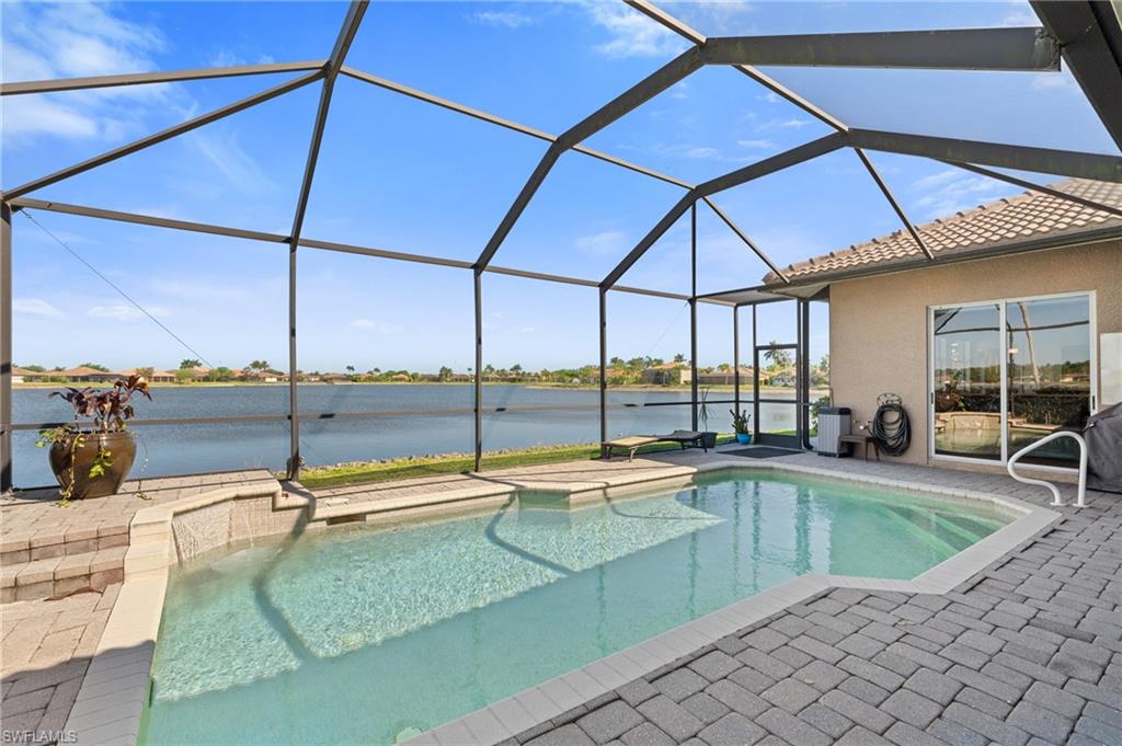 Welcome to 2225 Valencia Lakes Circle, a stunning lakefront home offering some of the best water views in Naples. This 3-bedroom + den, 3-bath residence sits on an extra-wide lot with eastern sunrise exposure, creating the perfect backdrop for peaceful mornings and picturesque views. With nearly 2,600 sq. ft. of living space, this home is designed for both luxury and functionality. The updated kitchen features modern finishes, while tile and hardwood flooring throughout add warmth and elegance. Custom shades provide privacy and style, and a custom wine rack adds a unique touch. The home is equipped with separate cooling systems for personalized comfort in different areas. Step outside to enjoy the heated pool with a soothing waterfall feature, surrounded by a spacious lanai with plenty of seating to take in the serene lake views. A pool fence is included for added safety. Additional upgrades include a 2022 roof, a brand-new irrigation system (2025), and a 3-car garage offering ample storage. Located in the sought-after Valencia Lakes community, this home provides a perfect balance of privacy, space, and breathtaking scenery. Don't miss this rare opportunity to own a piece of paradise!