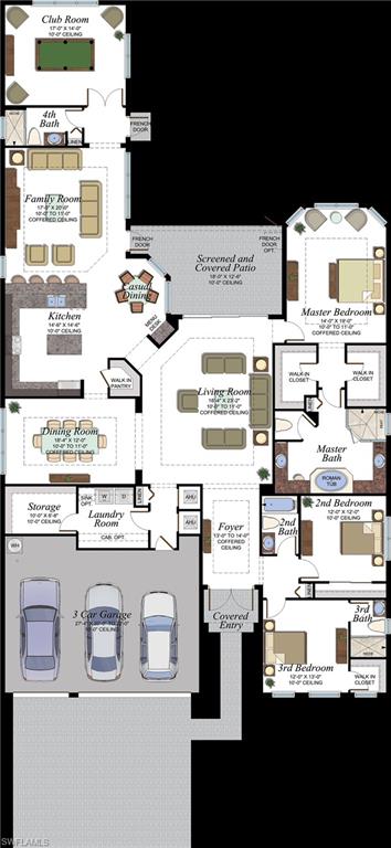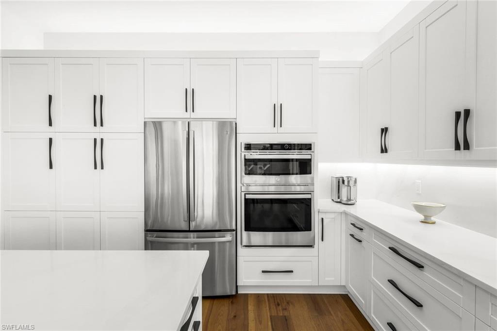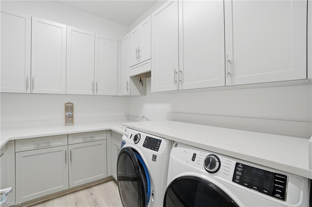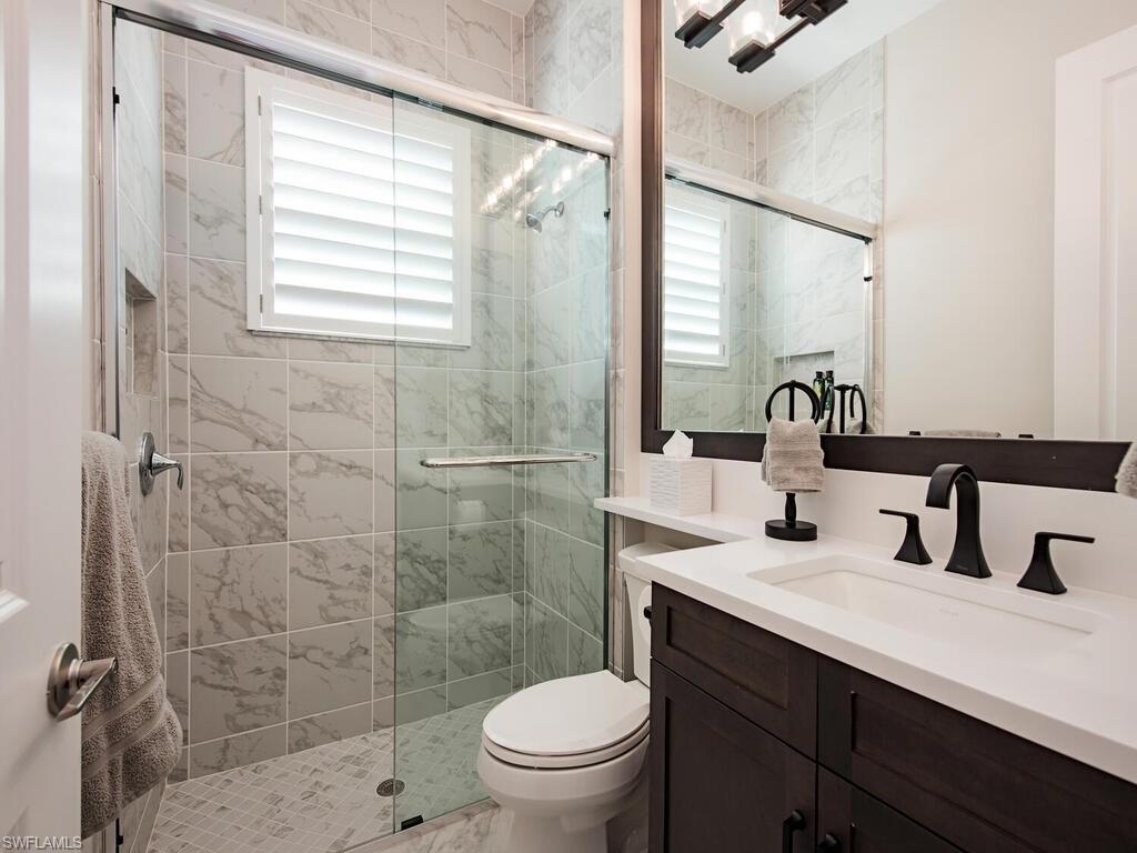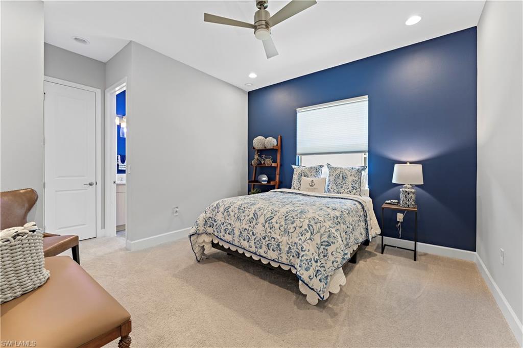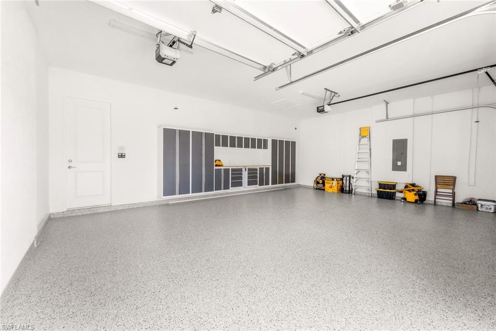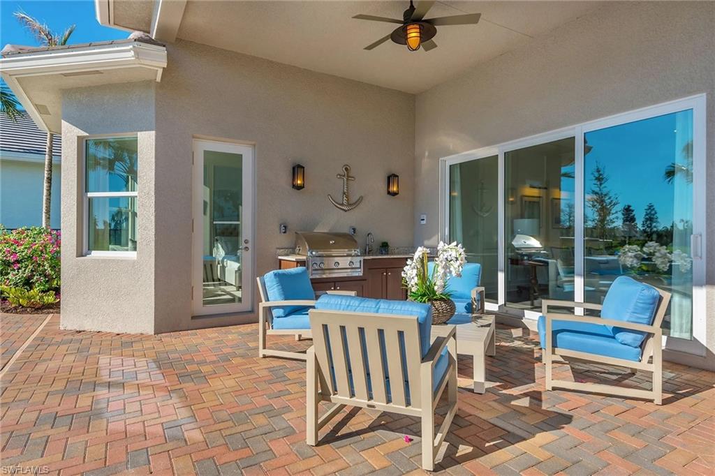 Discover unparalleled luxury in Naples' premier 55+ community, Valencia Trails, with this exquisite Captiva floorplan home, a highly sought-after design by GL Homes. Built in 2023, this newly constructed residence boasts professional decor and nearly every premium builder upgrade available. Situated on one of the largest lots in the community—nearly half an acre—this corner property on a private cul-de-sac street offers both space and serenity. The renowned Valencia Trails clubhouse is just a short stroll around the corner. This expansive home features 4 bedrooms, each with its own en suite bathroom, plus an additional half guest bath for ultimate convenience. Car enthusiasts will appreciate the air-conditioned, extended-length 3-car garage, perfect for your collection. Step outside to the iconic Captiva covered lanai, measuring an impressive 37 x 22 feet, complete with a state-of-the-art summer kitchen and exceptional outdoor living space. The custom saltwater pool and spa create a refreshing daytime oasis and transform into a dazzling nighttime retreat with a lighted spa waterfall and elegant spill-over bowls. Valencia Trails is equipped with natural gas, and this home includes a natural gas cooktop, water tank, and pool heater for added efficiency and comfort.