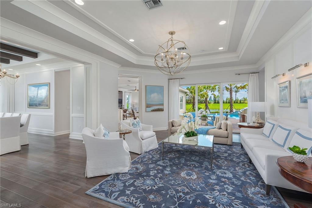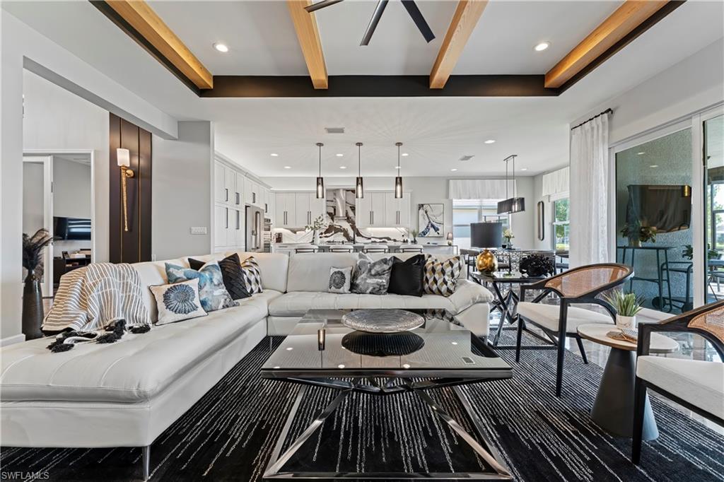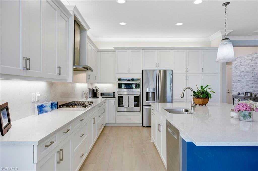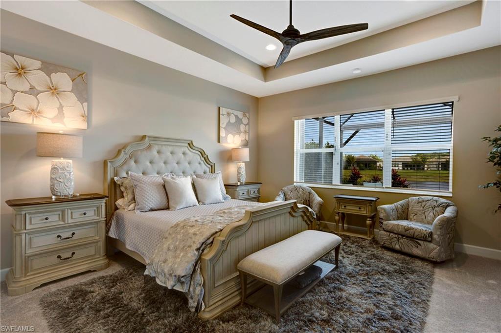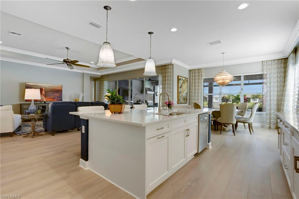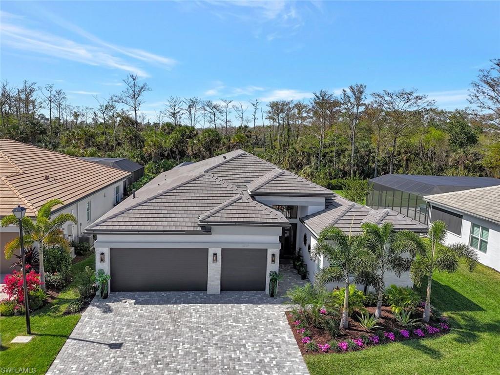 This stunning Sunrise model home offers an unparalleled blend of luxury and comfort in the highly sought-after Valencia Trails, Naples’ premier 55+ community. From the moment you step inside, the soaring 14-foot ceilings with a custom focal wall create an immediate sense of sophistication. The open-concept design seamlessly connects the kitchen and living areas, making it ideal for everyday living and elegant entertaining. The combination of luxury vinyl flooring throughout and cozy carpeting in the bedrooms ensures both style and comfort. The chef’s kitchen is a true showpiece, featuring quartz countertops, quartz backsplash, a natural gas stove, instant hot water, premium stainless steel appliances, an upgraded pantry, upgraded from cabinets to drawers, and pullout trash bins. Cabinetry with soft-close functionality and elegant molding adds a touch of refinement, while ample recessed lighting enhances the space. Just outside the glass sliding doors is an outdoor oasis retreat, complete with an extended covered lanai, private saltwater pool with gas heater, outdoor kitchen, pool cage, and breathtaking views of the pond. For peace of mind, the home has security cameras and an alarm system. Whether you’re enjoying a quiet morning coffee or hosting guests for an evening gathering, this tranquil retreat offers a seamless blend of indoor-outdoor living. Beyond your doorstep, Valencia Trails offers world-class amenities designed to enhance an active and social lifestyle. The impressive 43,000-square-foot clubhouse features a full-service restaurant and bar, a state-of-the-art fitness center, a full-service salon and spa, and multiple recreational spaces, including card rooms, an art studio, and a learning kitchen. For those who love outdoor activities, the community boasts a resort-style pool, a lap pool, a resistance pool, six tennis courts, eight pickleball courts, and scenic walking and biking trails. Even your four-legged companions will feel at home with two dedicated dog parks. This is more than just a home—it’s an opportunity to embrace a luxurious, resort-style lifestyle in one of Naples’ most exclusive communities. Homes like this are rare, and demand for Valencia Trails continues to grow. Don’t miss your chance to own a piece of paradise. Call today to schedule your private tour and experience the elegance, comfort, and breathtaking lake views for yourself."