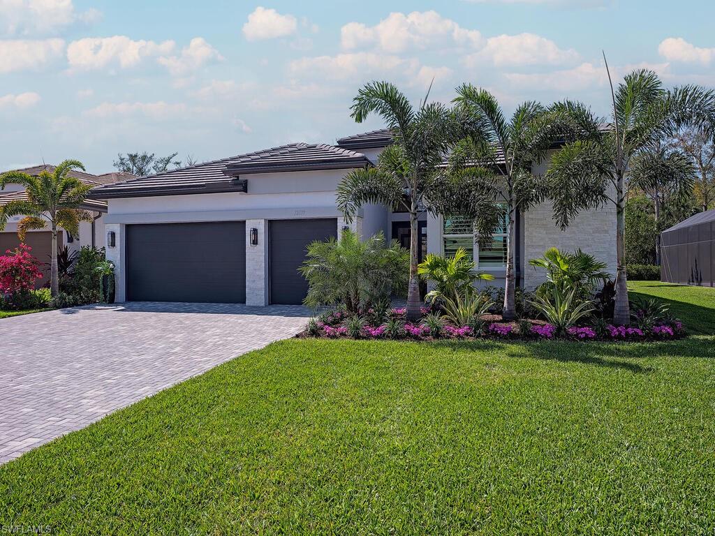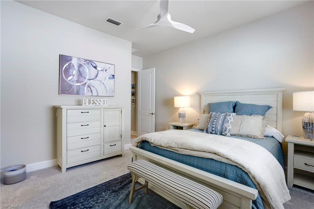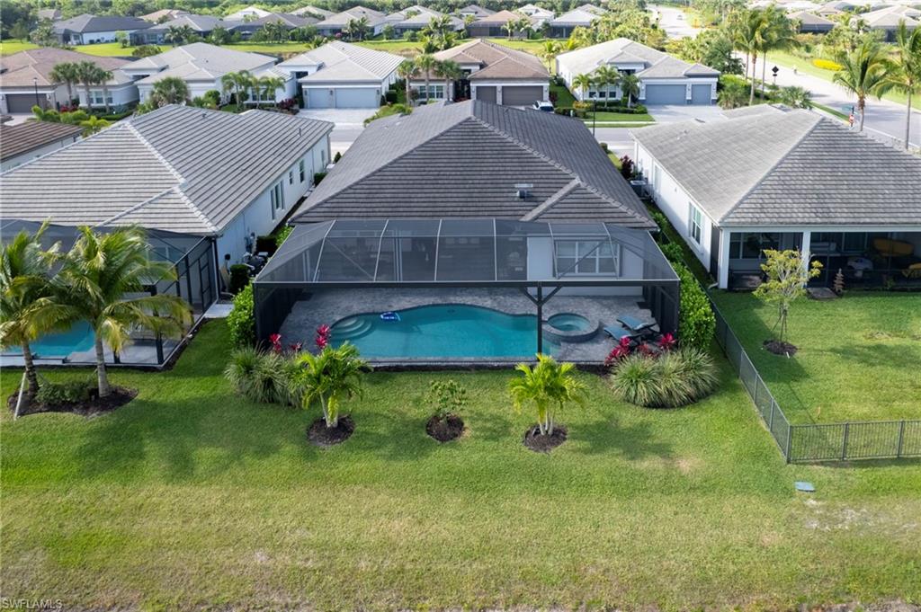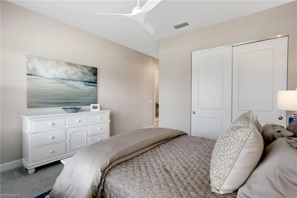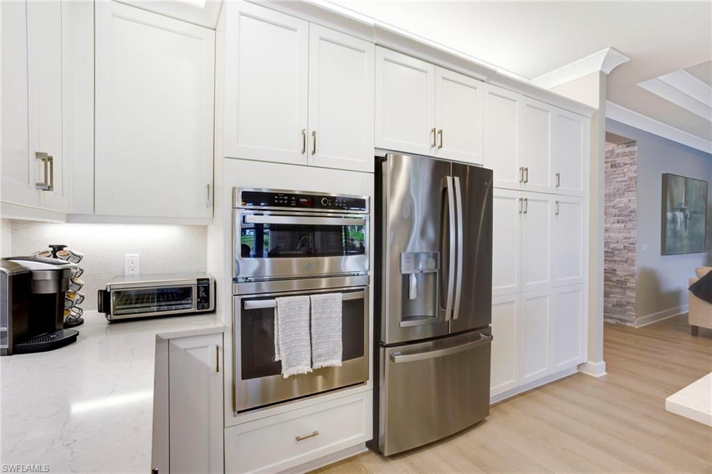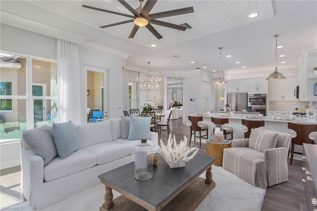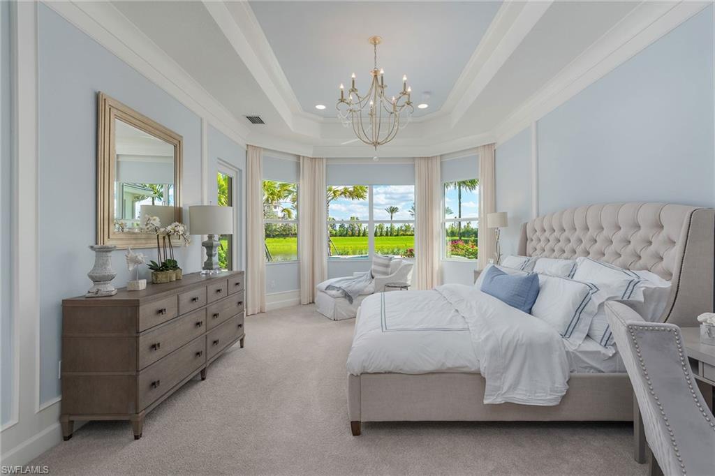 This stunning Sunrise model home offers an unparalleled blend of luxury and comfort in the highly sought-after Valencia Trails, Naples’ premier 55+ community. From the moment you step inside, the soaring 14-foot ceilings with a custom focal wall create an immediate sense of sophistication. The open-concept design seamlessly connects the kitchen and living areas, making it ideal for everyday living and elegant entertaining. The combination of luxury vinyl flooring throughout and cozy carpeting in the bedrooms ensures both style and comfort. The chef’s kitchen is a true showpiece, featuring quartz countertops, quartz backsplash, a natural gas stove, instant hot water, premium stainless steel appliances, an upgraded pantry, upgraded from cabinets to drawers, and pullout trash bins. Cabinetry with soft-close functionality and elegant molding adds a touch of refinement, while ample recessed lighting enhances the space. Just outside the glass sliding doors is an outdoor oasis retreat, complete with an extended covered lanai, private saltwater pool with gas heater, outdoor kitchen, pool cage, and breathtaking views of the pond. For peace of mind, the home has security cameras and an alarm system. Whether you’re enjoying a quiet morning coffee or hosting guests for an evening gathering, this tranquil retreat offers a seamless blend of indoor-outdoor living. Beyond your doorstep, Valencia Trails offers world-class amenities designed to enhance an active and social lifestyle. The impressive 43,000-square-foot clubhouse features a full-service restaurant and bar, a state-of-the-art fitness center, a full-service salon and spa, and multiple recreational spaces, including card rooms, an art studio, and a learning kitchen. For those who love outdoor activities, the community boasts a resort-style pool, a lap pool, a resistance pool, six tennis courts, eight pickleball courts, and scenic walking and biking trails. Even your four-legged companions will feel at home with two dedicated dog parks. This is more than just a home—it’s an opportunity to embrace a luxurious, resort-style lifestyle in one of Naples’ most exclusive communities. Homes like this are rare, and demand for Valencia Trails continues to grow. Don’t miss your chance to own a piece of paradise. Call today to schedule your private tour and experience the elegance, comfort, and breathtaking lake views for yourself."