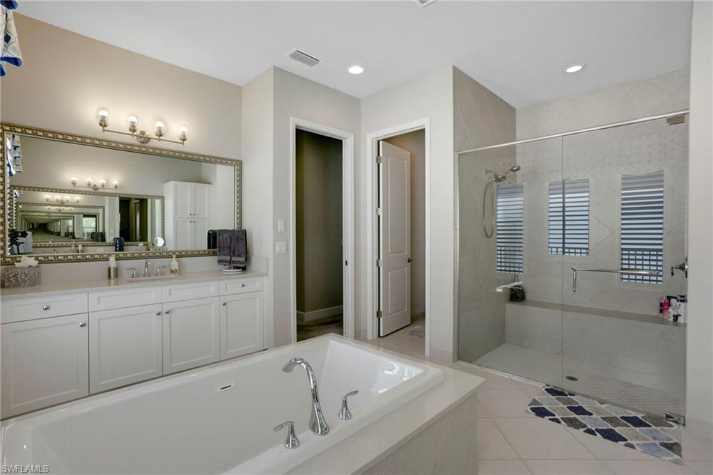 LIMITED OPPORTUNITY! Huge price drop by motivated seller who wants offers now and will consider all offers. Here is your opportunity to get one of the largest homes available in Valencia Trails, on one of the best lots with breath-taking sunset views, under market value! This prestigious lot location was won in the developers initial “Lot Lottery” for its spectacular island view. MUST SEE this incredible home boasting the pinnacle of luxury living with private sunset lake views of a picturesque preserve island backdrop. This exceptional home has been meticulously upgraded with over $500,000 in upgrades and finishes, offering a true move-in ready experience. Too many enhancements to list, including engineered hardwood flooring, custom paint and trim work throughout, designer lighting, built-ins, and custom trim work throughout. This open floor plan seamlessly connects the living, dining, and kitchen areas, creating the perfect space for entertaining, with a true gourmet kitchen featuring pull-out drawers and shelves, and multiple beverage fridges. Large sliders to the lanai flood the home with natural light, and the open pool area provides optimal sunbathing! Step outside to your private outdoor oasis, protected with motorized hurricane screens, allowing to enjoy a screened lanai area. The expansive patio with custom outdoor natural gas kitchen provides an ideal setting for al fresco dining, lounging, and enjoying the serene scenery. Each of the 4 bedrooms boasts its own private ensuite bathroom. The primary suite is a haven of relaxation with spa-like en-suite retreat is featuring a soaking tub, walk-in shower, and dual vanities. The walk-in closets with custom built-ins offer abundant, well-designed space for your wardrobe. This new 55+ resort community features an exceptional lifestyle at the 43,000 sq. ft. clubhouse, including the resort-style pool, 70 ft. lap pool, resistance pool, outdoor firepit, onsite restaurant, poolside bar, social hall with dance floor and stage, full-service spa, fitness center, nail salon, cooking studio, and much more. Situated on 160 acres of pristine preserve with over 3 miles of walking trails and endless activities including pickleball, tennis, bocce, dog park, and more. This exceptional home is a rare find and a must-see. Be sure to check out the walk-through video.