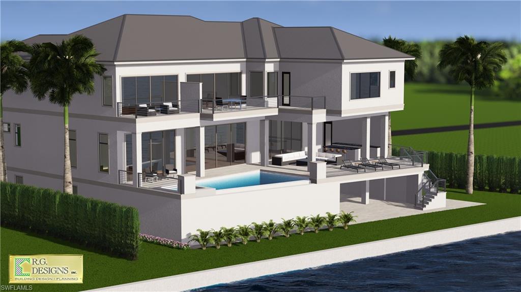 Pre-Construction with customization opportunities! Welcome to 318 Trade Winds Avenue, a thoughtfully designed southern exposure pre-construction offering in the heart of the Connors area of Vanderbilt Beach. This 5 bedroom + office, 5 full bath and 1 powder bath single family home will feature two stories of elevated living over a massive three car garage with generous flex space. Every element of this home has been planned with detailed attention to design esthetic, seamless indoor-outdoor living, and the highest levels of storm preparedness for the Florida environment. Headwaters Development and South Florida Architecture have worked in tandem to craft a plan that maximizes the connection to the outdoors via oversized outdoor living spaces, 10' pocket sliders, and large picture windows overlooking the canal and sunset views. A private elevator offers ease of living. Customization is available! The chef's kitchen is planned to feature a Sub-Zero/Wolf appliance suite with propane gas cooking, custom hood, double wall oven, a large walk-in butler's pantry with wine storage, and custom cabinet designs paired with quartz countertops. Legno Bastone white oak floors will run through the entire residence, with the exception of custom floor tile designs in each bathroom. The dining room will be surrounded by large picture windows, offering a stellar vantage point over the water toward the beach. Step out through the large great room pocket sliders onto the covered outdoor lounge area overlooking the pool deck below. Motorized bug and storm screens, an outdoor fireplace, and an outdoor kitchen set the stage for gathering outside any time of year, while the custom designed pool is the perfect spot to enjoy fun in the sun. The first floor primary suite and en-suite guest suite are tucked away from the open concept main living areas, ensuring peace and privacy. Upstairs, three additional en-suite bedrooms and second laundry all open up to a large loft with wet bar and pocket sliders leading out to the top floor balcony with southwestern views. Outside, the concrete pool deck will feature stone pavers, a heated salt swimming pool and flush spa, and a lounge area. Just a few steps down leads to the planned private boat dock location for the ultimate coastal living experience. New sea wall! The pre-construction price includes an allowance for a boat dock (preliminary plans available upon request. Full allowance may be applied to custom boat dock if alterations are desired prior to construction).