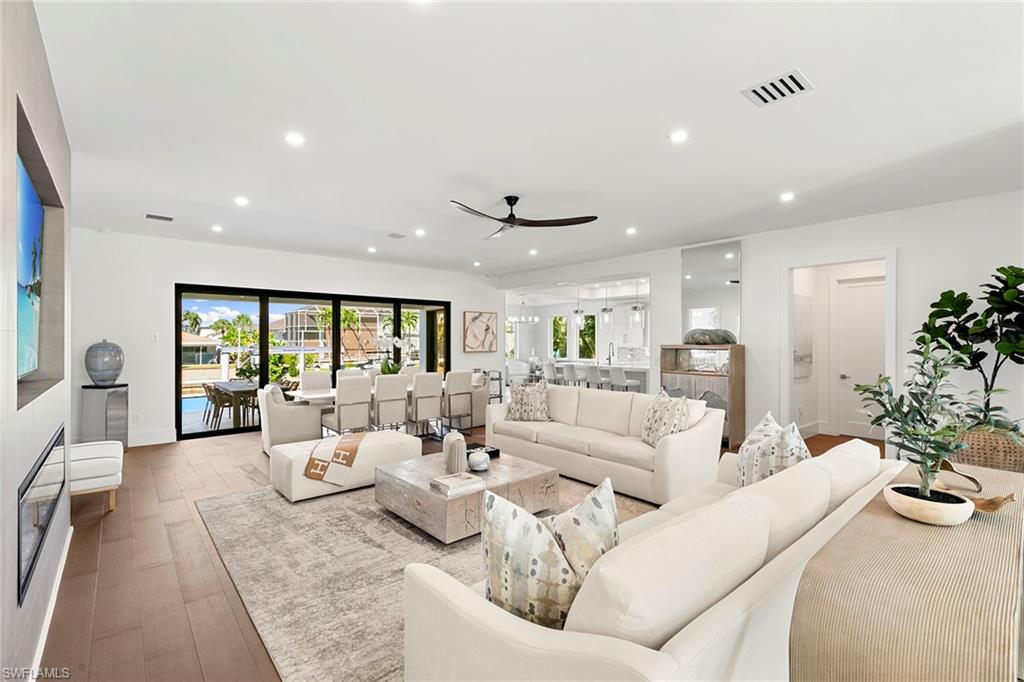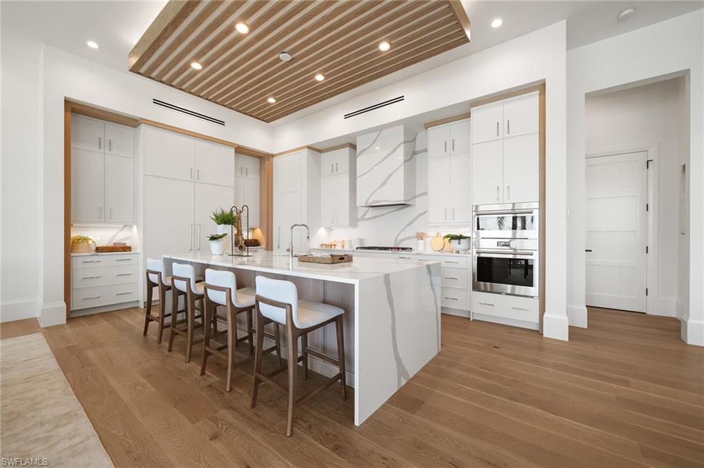 Panoramic bayfront living along Vanderbilt Beach. Positioned along the centerline of Conners Bay, this new construction estate-crafted by Milestone Development with interior selections by Tye Interior Design offers mile-long water views and refined living in one of Naples desirable coastal settings. The residence reflects a balance of timeless design and modern luxury. The main living level features 12-foot ceilings, custom ceiling treatments and wide-plank hardwood floors that frame sweeping views of the bay. A chef's kitchen anchors the space, highlighted by a quartzite waterfall island, professional-grade appliances, and a discreet butler's pantry designed with functionality and elegance in mind. Seamless transitions lead to nearly 500 square feet of covered outdoor living with a summer kitchen, fireplace and unobstructed bay views ideal for year-round alfresco entertaining. The primary suite is a private retreat, complete with a dedicated coffee bar and dual custom wardrobes. A separate study on the main floor offers versatile use as a library, office or media room. The third-floor loft provides an additional gathering area or private lounge for three guest en-suite bedrooms, all opening to a covered balcony with commanding water views. Additional features include a heated saltwater pool and spa, a four-plus-car garage, a recreation room and a newly constructed dock with boat lift. With direct access to the Gulf in just seven minutes by water, this is an exceptional opportunity to own a waterfront lifestyle residence distinguished by superior craftsmanship and design pedigree.