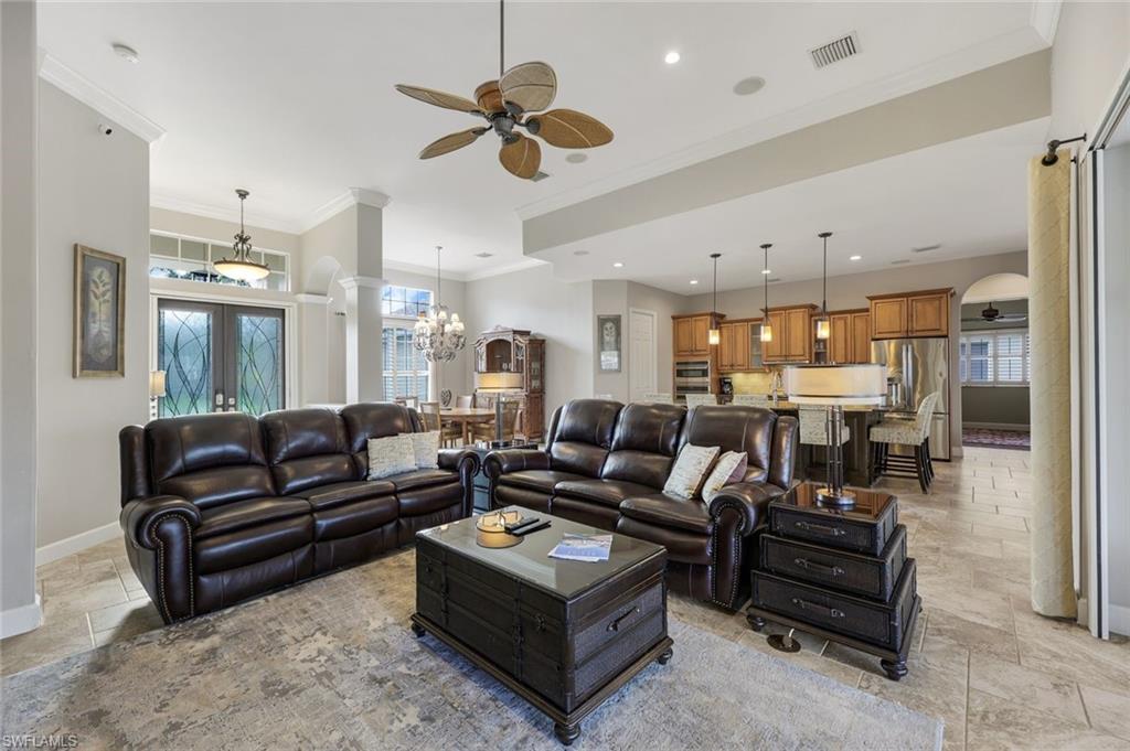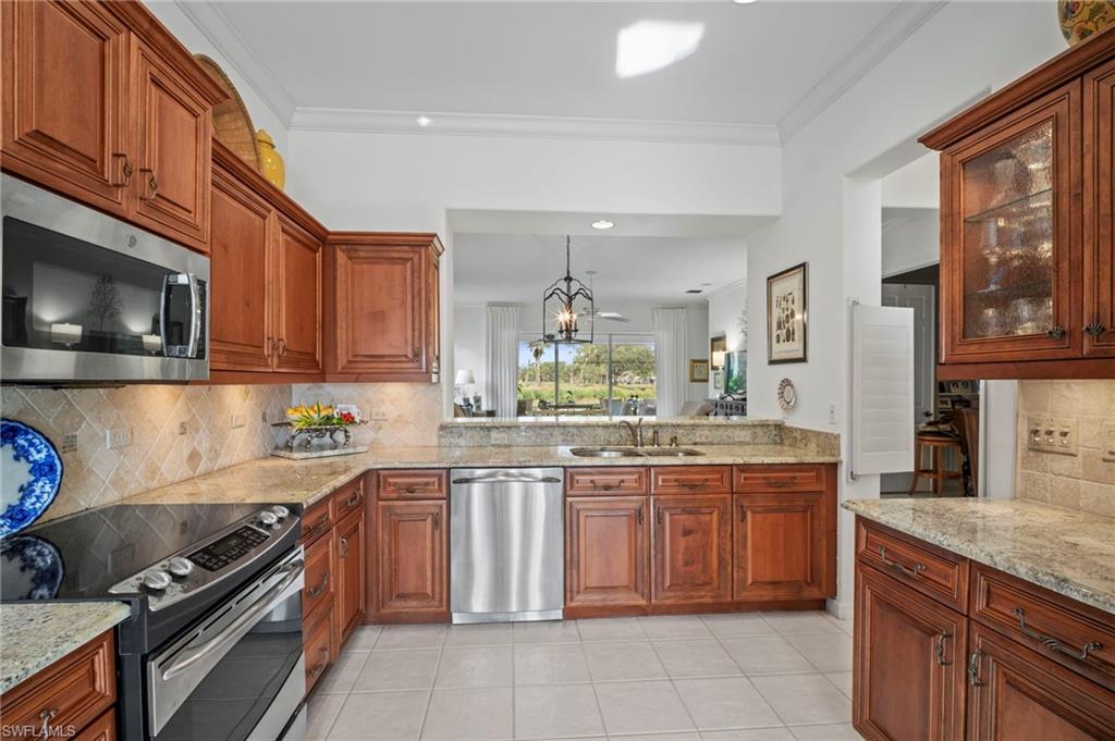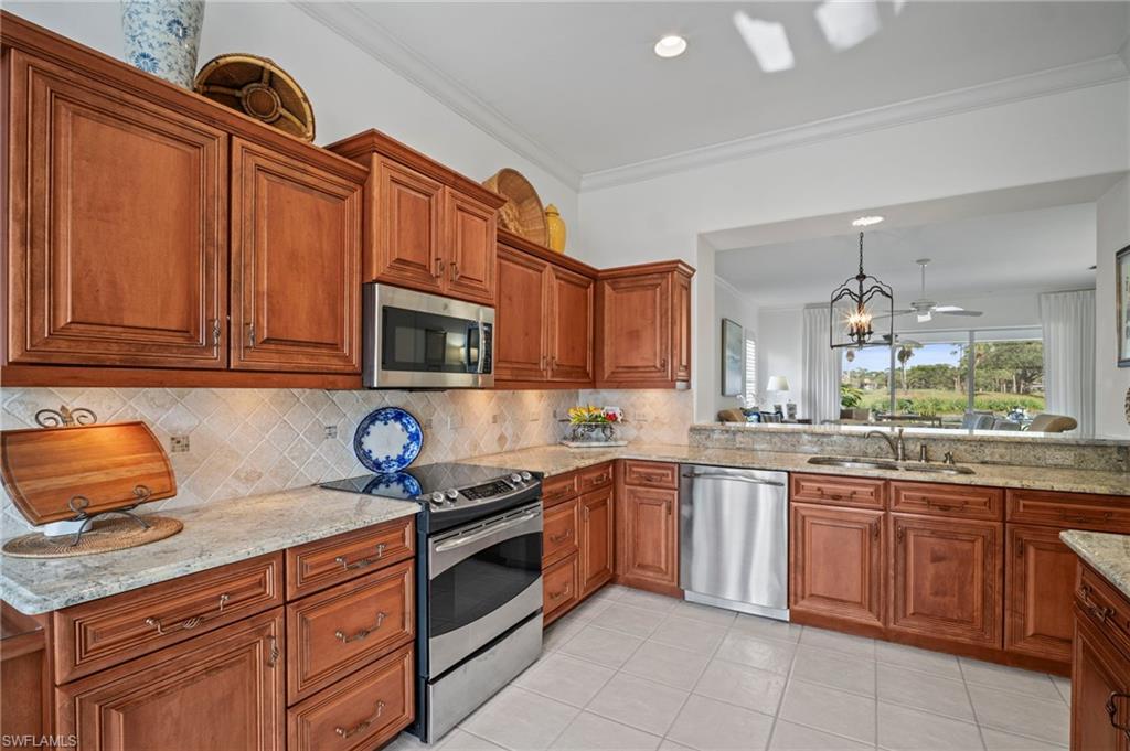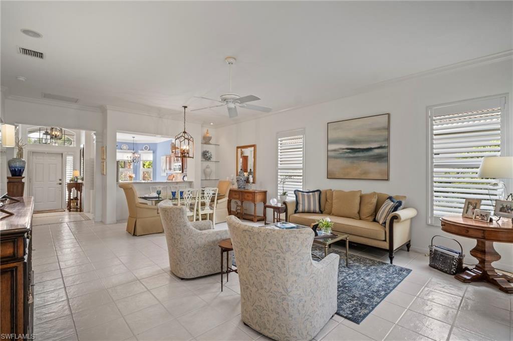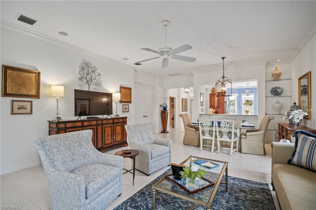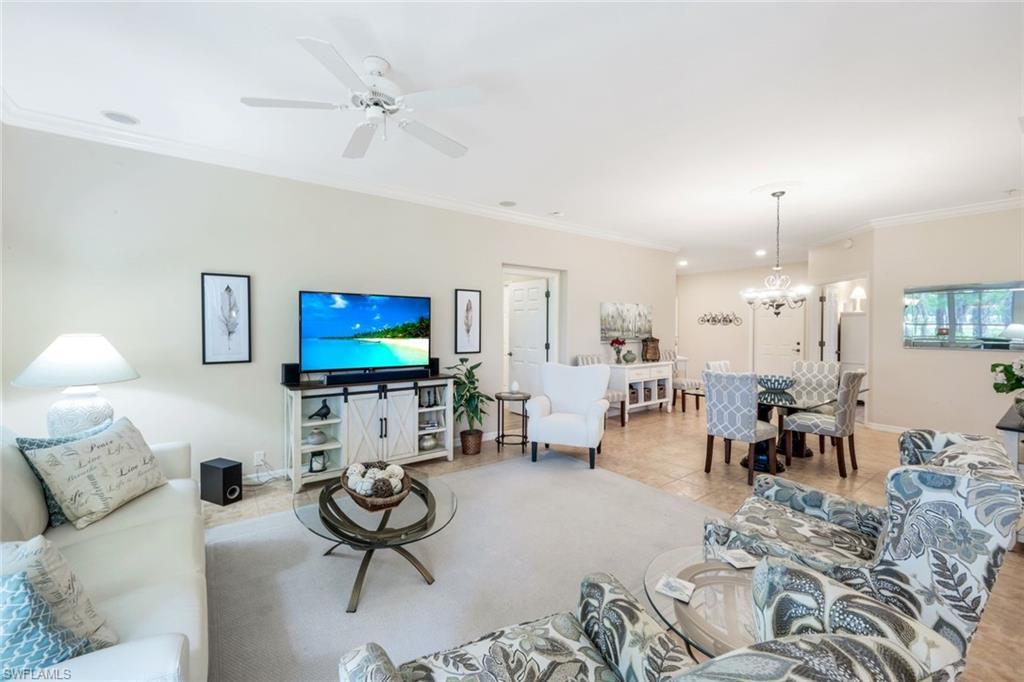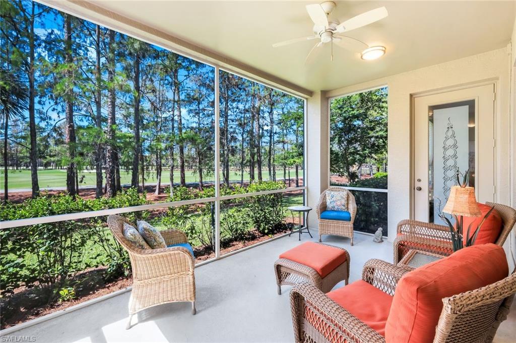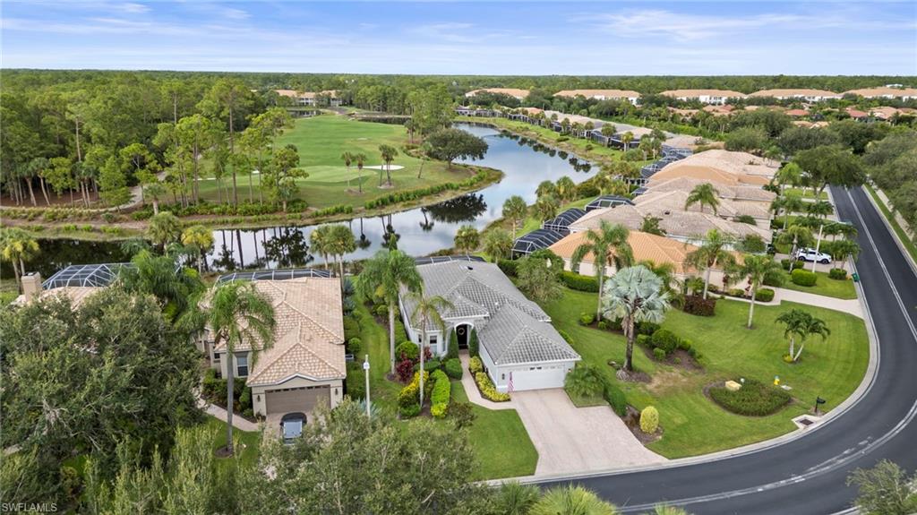 Location. Location. Location! Naples has once again been named the #1 place to retire in the U.S. by U.S. News & World Report, and this turnkey 2BR + Den carriage home with garage offers the perfect opportunity to enjoy everything this vibrant community has to offer. Ideally situated in Vanderbilt CC, an inland gated 18 hole bundled par 72 golf community, this home boasts expansive views of the 16th fairway and lake. Start your day with coffee and a sunrise on the oversized, northern facing lanai—a tranquil retreat with double-door access from the bright, open-concept living area. Screened in entry allows for breezes that flow through out the home. Perfect for entertaining, the home features crown molding throughout, neutral finishes, tile and luxury vinyl flooring, and a smart split-bedroom floor plan for ultimate privacy. The primary bedroom has en-suite bathroom, access to the lanai, a walk in closet and beautiful views of the golf course. There is an oversized bedroom perfect for guests. The den is equipped with a pull-out single bed/couch which makes a great home office or additional guest space. Newer washer and dryer is also included. The eat-in kitchen has new stainless steel appliances, a tiled backsplash and is both stylish and functional. The home comes with a Home Tech home warranty! Live the resort lifestyle with amenities including: • A stunning clubhouse with dining options • A resort-style pool + satellite pools • Har-Tru tennis courts, bocce, and full-time tennis & golf pros • A standalone fitness center with massage therapy, PT services, and organized classes Once you arrive—you may never leave.