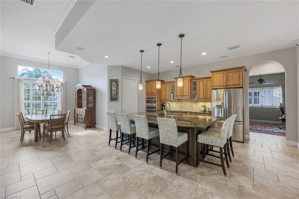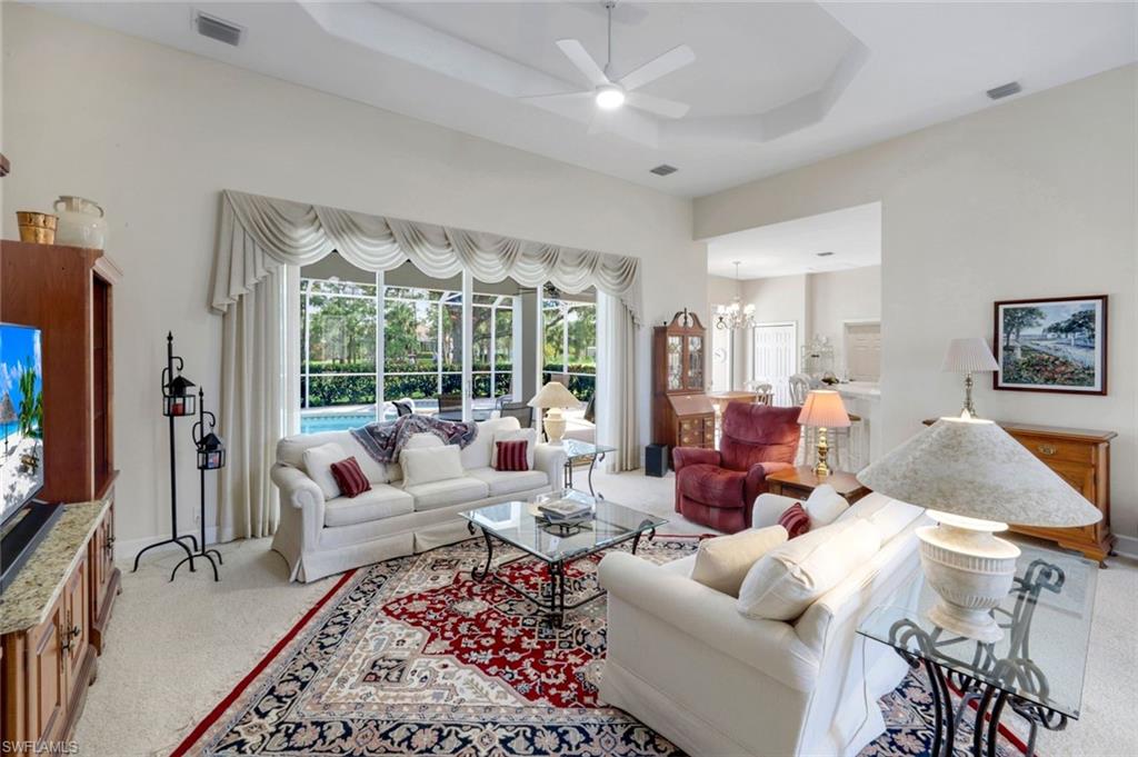 As a holiday SPECIAL, the owner is offering 990K for a successful closing by December 31, 2025. Golf included with this this premier cul de sac neighborhood estate home on a larger lot. With a location close to the clubhouse and community amenities, you have everything at your fingertips. This impeccable single level living home has an open concept floorplan from the front door to the lanai and pool view. An oversized garage with storage is perfect for a place to do projects! This is a dream with a newer 2023 roof and newer HVAC and hot water tank which your insurance company will love! With lush landscaping and 5th hole tee box and fairway views, you will find your piece of paradise. The home features a two-car garage with textured slip resistant surface, and side entry golf cart door, as well as additional storage. Enjoy your lanai oasis surrounded by mature landscaping, inground heated pool and hot tub. The eat-in kitchen has tiled backsplash, stainless steel appliances and opens to a spacious dining room, perfect for entertaining. Custom crown moldings and volume ceilings add to the spacious feel and brightness of this property. Neutral wall colors, and floor tiles and carpet throughout. Live a resort style lifestyle. The community has something for everyone with social events, dancing, bocce, tennis, and so many more fun activities. A new community pool surrounded by a lively terrace cafe is for community gatherings and events for outdoor dancing, and great times. The stand alone fitness center offers PT therapy services, massage and an overall fitness program, organized classes and a Full Time Trainer. Whether you are looking for casual dining at an outdoor terrace, a vibrant social environment or are a golf enthusiast, this active lifestyle is a perfect blend of comfort, beauty and fun. Come and see all that Vanderbilt Country Club has to offer. Not only will you LOVE it here but you will LIVE it here!