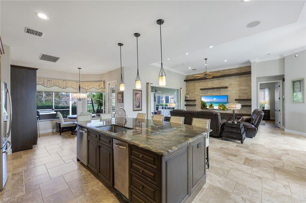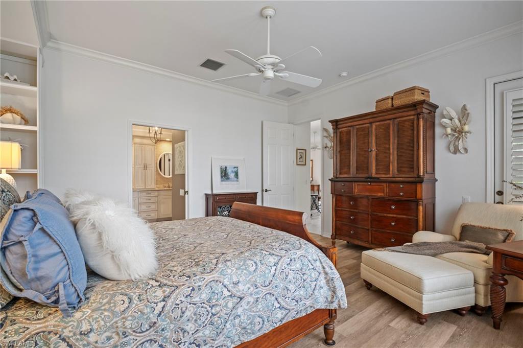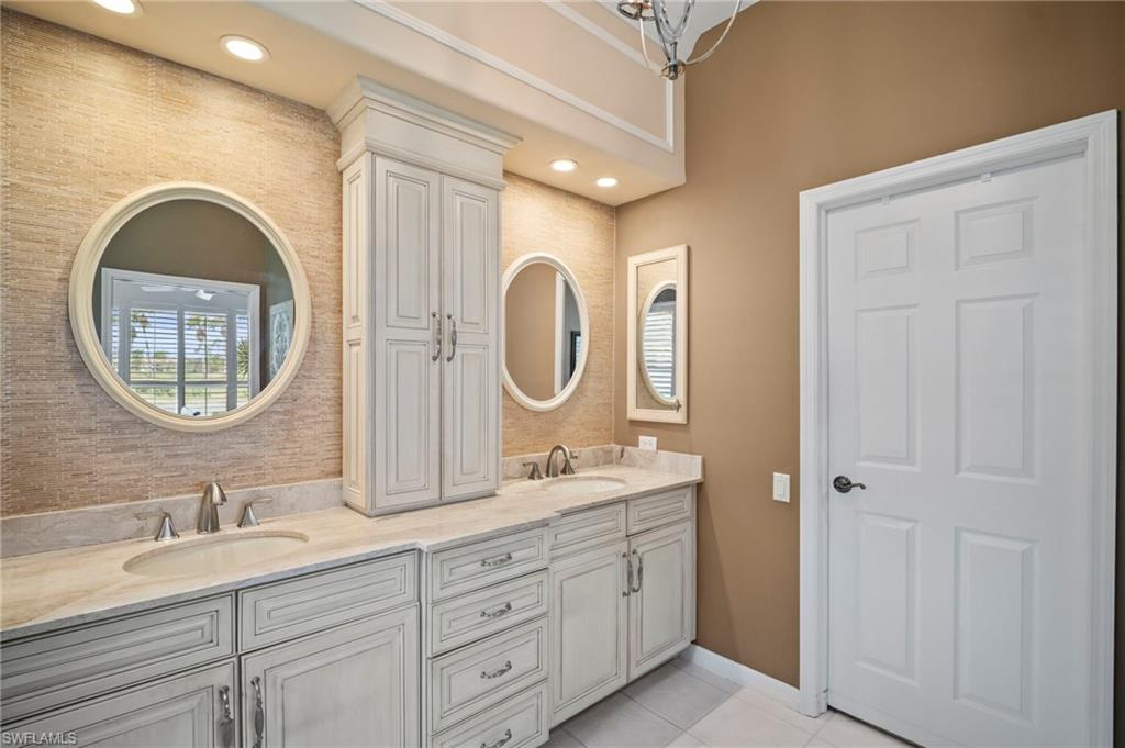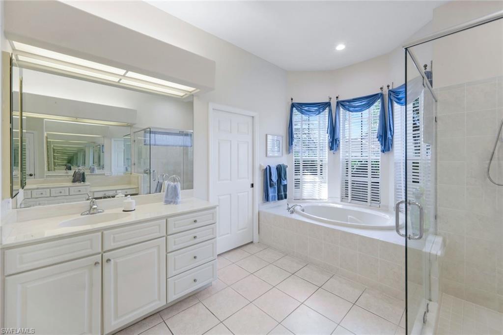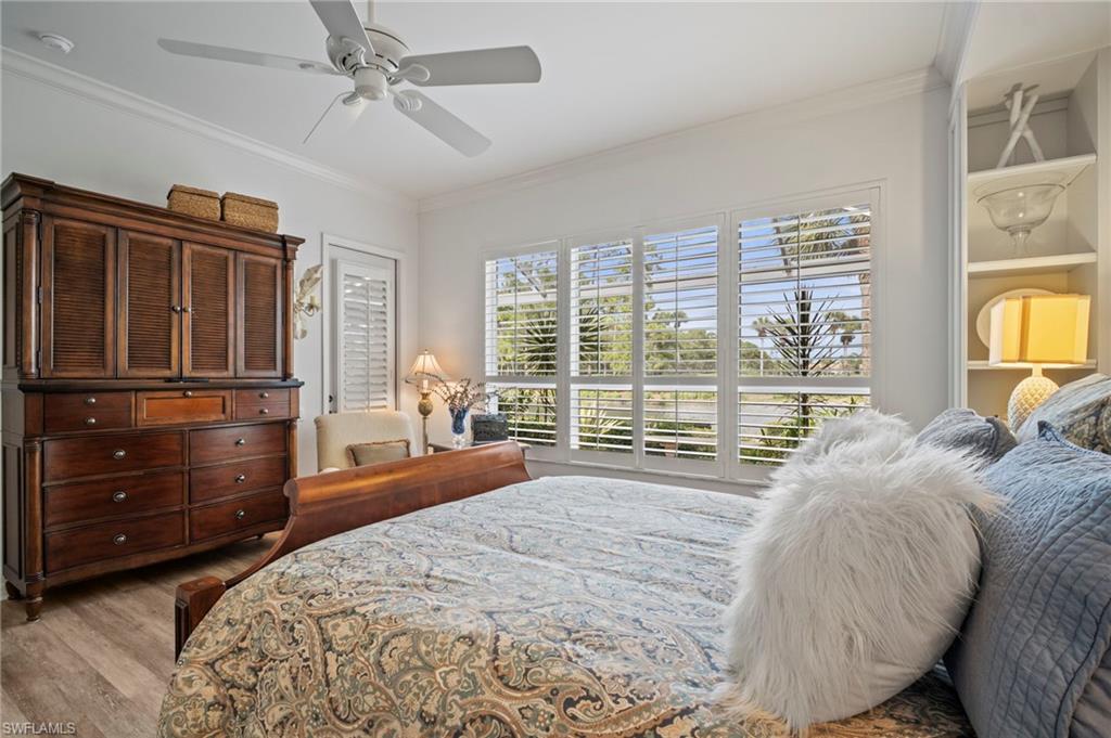 This is the sought after AUGUSTA floorplan. We call it VILLA BELVEDERE (“beautiful view”) with the spectacular and unequalled “Million Dollar “ view of the meandering lake waters and golf course . Here on your LANAI is where you will enjoy incredible sunrises over the 12th hole while sipping your morning coffee. The BREAKFAST NOOK in KITCHEN features a custom designed banquette with extra storage space as well. GUEST BATH is updated with custom cabinetry topped with Carrara marble and white Subway tiled Shower . Toilet fitted with LUXE Bidet MASTER BEDROOM features on either side of the bed custom built-in bookshelves and cabinets . CALIFORNIA CLOSET in MBR maximizes every inch of space . MASTER BATHROOM has custom cabinets topped with Travertine Marble (not granite) A wall of Travertine forms the counter to ceiling height backsplash . The bathroom contains a soaking tub and tiled glass enclosed shower . Toilette fitted with LUXE Bidet. OFFICE/DEN contains an endless amount of cabinet space and display bookshelves . A custom made file cabinet allows for a slide out printer shelf and slide out paper shredder . HOME TECH Service contract for appliances is transferable and includes Dishwasher, Garbage disposal, Refrigerator, Range, Washer & Dryer, Microwave, Hot Water Heater, AC. Extended warranty expires 2028. Full house sound system with ceiling speakers in Den, MBR, LR, and Lanai. FRONT DOOR is equipped with a Phantom Screen which allows for cross ventilation. Landscape Architect designed LANAI GARDEN features custom made Garden Benches and automatic irrigation system. The LANAI has a Motorized retractable Hurricane screen effective up to winds of 150 mph. Rain or shine, you can enjoy the lanai year 'round. These screen shutters retain about 75% of the air conditioning. Power outages are a thing of the past, thanks to the newly installed "$20,000 WHOLE HOUSE GENERAC GENERATOR