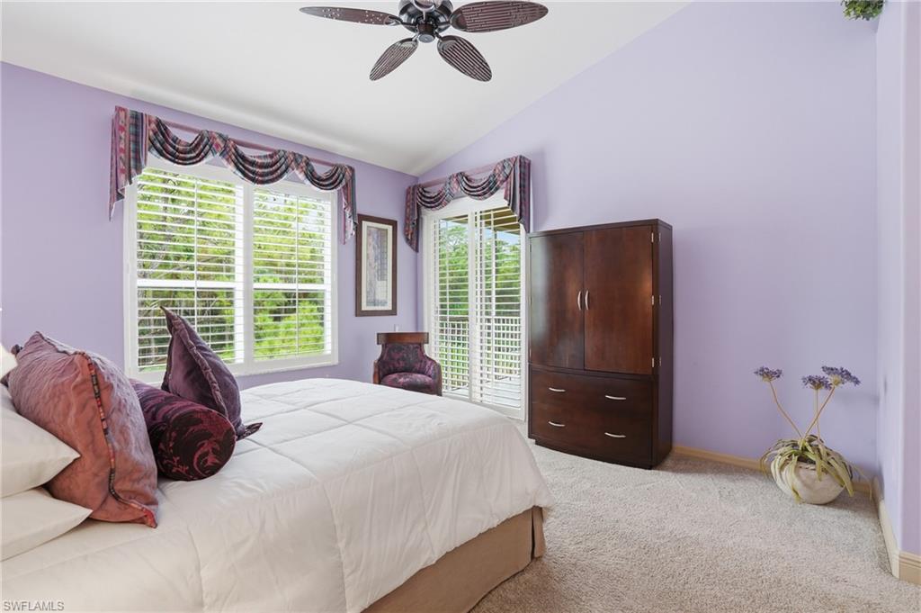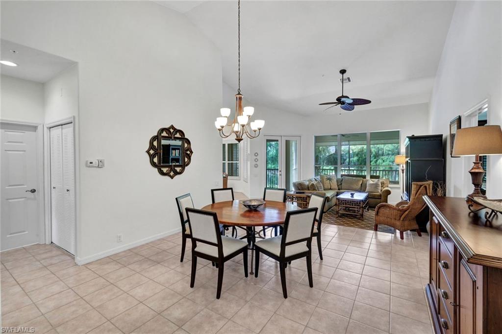 RARELY AVAILABLE 2ND FOOR CARRIAGE HOME WITH DESIRABLE EASTERN LANAI EXPOSURE. Vanderbilt Country club is an exceptional BUNDLED GOLF COMMUNITY with a well-respected golf course & driving range. The tree-lined 18 hole, par course winds through 6,631 yards of beauty and is enhanced by stunning landscape. This well maintained, clean unit offers newer appliances and a breakfast nook opening to a spacious lanai surrounded by nature. The living room/dining room open concept configuration with vaulted ceilings presents a roomy comfortable living space. This second floor home is in a convenient location with a two car garage, plantation shutters, as well as partial furnished. Extra bonus room/den is perfect for overflow company or an office with pullout couch adds to the value of this property. Brand new resort style pool and Bocce courts just completed 8/25, multiple satellite pools, tennis, pickleball, dances. Formal and casual restaurants and most importantly a friendly, fun-loving community enhance the lifestyle of all that come to live and visit. The Terrace bar is adjacent to the pool and island vibe. PT, personal training, with multiple classes, are at your back door. Don't miss out on this one!