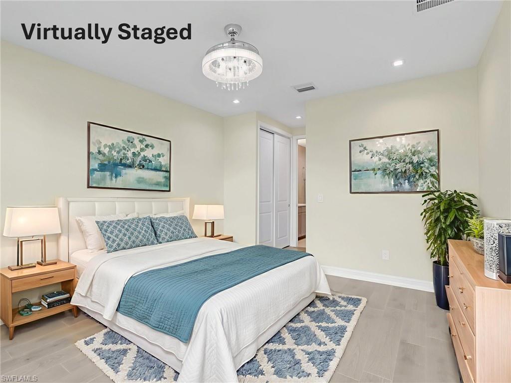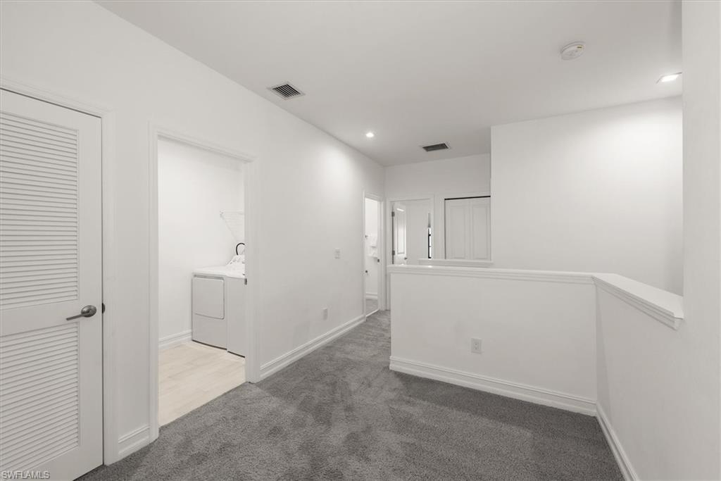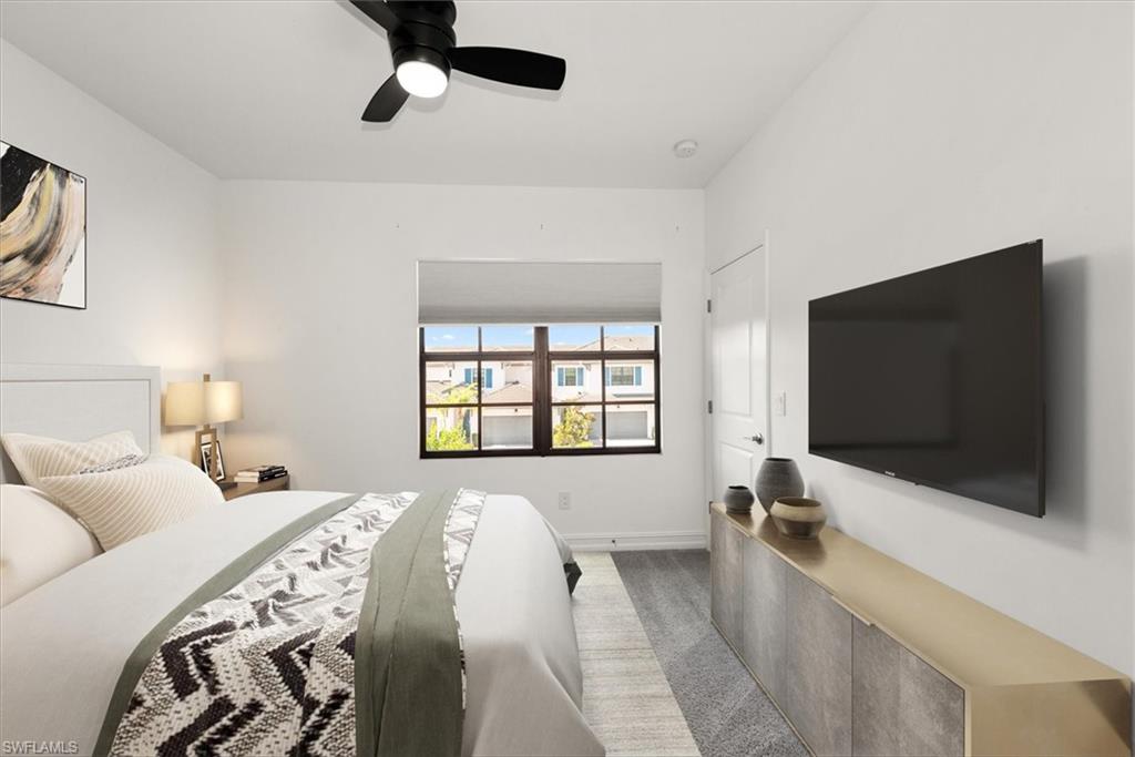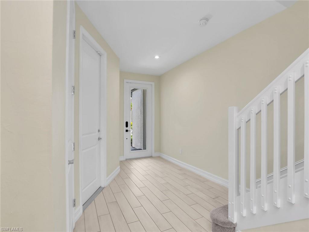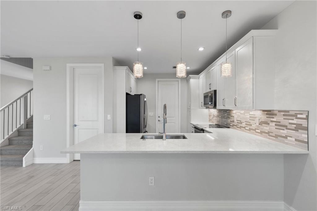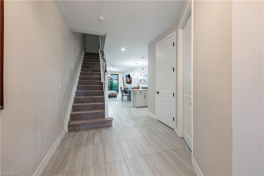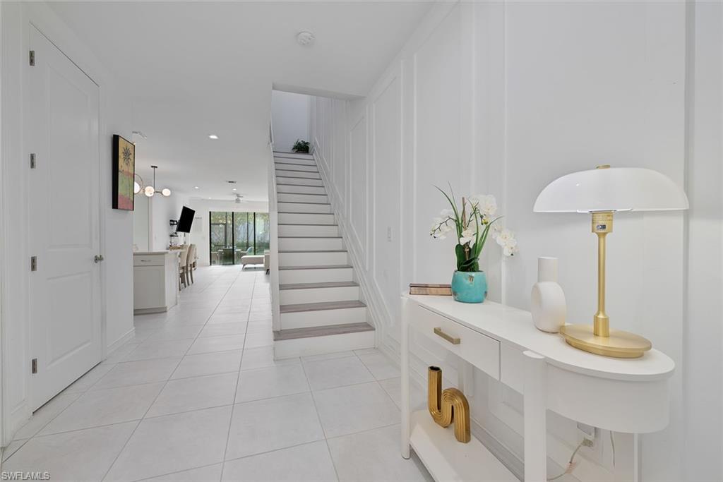 Move right in to this sought after North Naples central location townhome built in 2021. This Vanderbilt Reserve two story Biltmore floorplan with a first floor master bedroom has it all! Freshly painted throughout in a neutral, crisp clean white, this townhome boasts tile throughout the first floor. Impact glass throughout. Luxury vinyl plank up the stairs and throughout the loft and two upstairs bedrooms means no carpet in the home. The expansive kitchen offers a tiled backsplash, an adjacent laundry room, a large bar area that overlooks the spacious dining and great room making it a great layout for entertaining. Plenty of closet space throughout. Security system. Easterly landscaped views with partial lake that can be seen off the screened lanai and from second floor easily. Vanderbilt Reserve is situated amongst 3 top rated public schools in addition to private school options and about 6 miles to Naples white sandy beaches and very nearby shopping, activities and all the arts and culture the Naples community has to offer, as well as convenient to RSW airport. As spacious as a single family home with almost 1,800 sq ft of air conditioned living space and the convenience of a two car garage and pavered driveway. Intimate gated 212 townhome community with no CDD. Fabulous clubhouse, resort pool, fitness center and community room included for all residents.