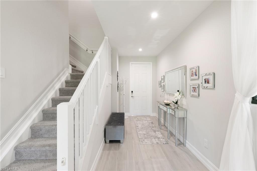 ** Outstanding schools! Discover the LARGEST townhome in Vanderbilt Reserve — this rarely available Newport floor plan features 4 bedrooms, 3.5 baths, and 2,025 square feet of thoughtfully designed space PLUS it has a long water view! You will love the exquisite finishes and upgrades in this home along with hurricane impact doors and windows for peace of mind. The first-floor owner's suite includes a spa-like ensuite bathroom featuring an oversized walk-in shower. Upstairs, three additional bedrooms—one serves as an additional master suite—plus a versatile loft space provide plenty of room for family, guests, exercise or a home office. From the moment you step inside, you’ll be captivated by the massive amounts of upgrades, top-tier finishes and stylish design. Elegant tile and rich hardwood floors flow seamlessly throughout the home. Step outside to your extended, east-facing lanai, where you can unwind and take in the serene water views. It's a perfect setting for morning coffee during the sunrise or evening relaxation in the shade. Located in the highly sought-after Vanderbilt Reserve, this home is ideally located in Naples with resort-style amenities, including a sparkling pool and rejuvenating spa, state-of-the-art fitness center, and welcoming community space. Don’t miss out on this rare opportunity to own a gorgeous, spacious townhome in an unbeatable Naples location!