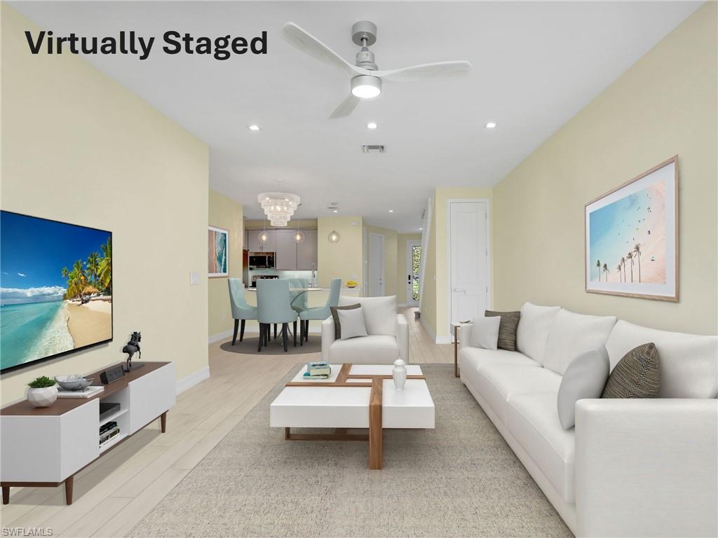 Welcome to this impeccably maintained 2022 townhouse featuring the highly sought-after Breakers floor plan in the desirable gated community of Vanderbilt Reserve. This contemporary home offers 3 bedrooms on the same level, 2.5 bathrooms, and a 2-car garage with an additional storage area. Upgrades include impact-resistant windows and sliding doors, a smart home system, and elegant finishes throughout the open-concept living space. Enjoy a modern kitchen and living area designed for both comfort and entertaining. The home’s prime location offers easy access to premier shopping and dining at Mercato, a short drive to Vanderbilt Beach, and proximity to top-rated schools, Mason Academy will open their new campus across Vanderbilt BLVD soon for 2025-2026 school year from K-8. Located in an X Flood Zone, this property offers peace of mind and lower insurance costs. HOA fees include cable, internet, landscaping, and roof maintenance, providing a truly low-maintenance lifestyle. Perfect for first-time buyers, those looking to downsize, or investors seeking a ready to move in opportunity. Don’t miss this exceptional home at 7570 Rockefeller Drive — experience modern Florida living at its finest!