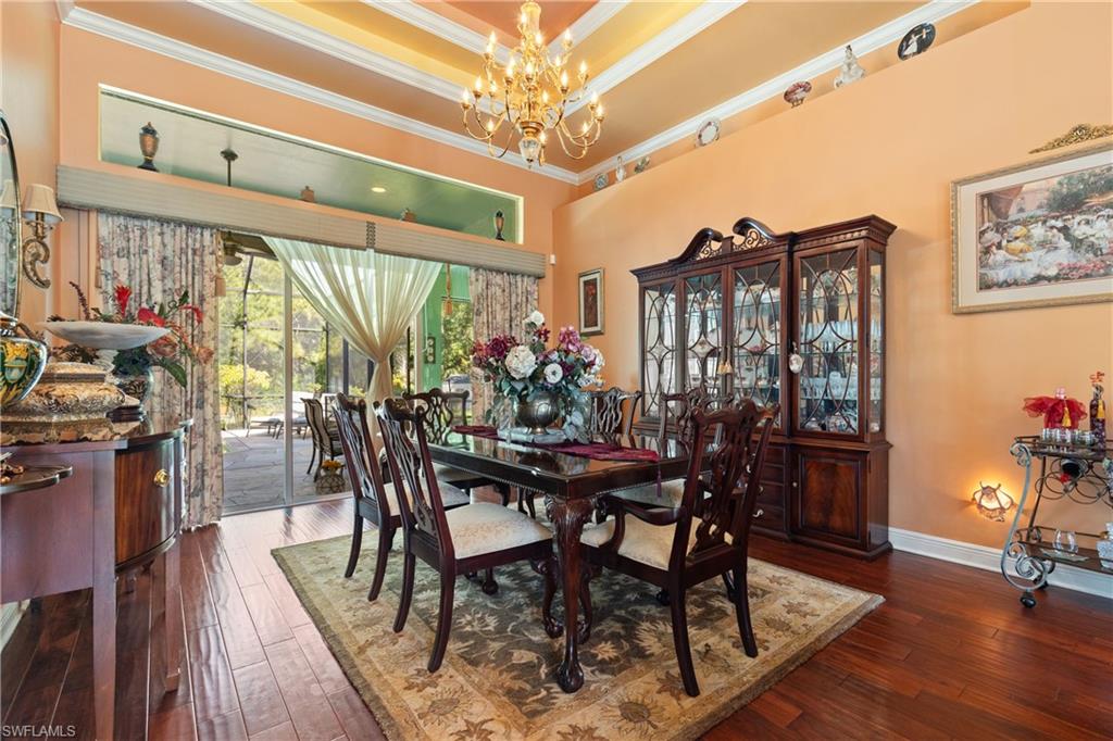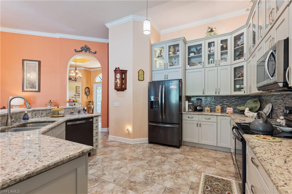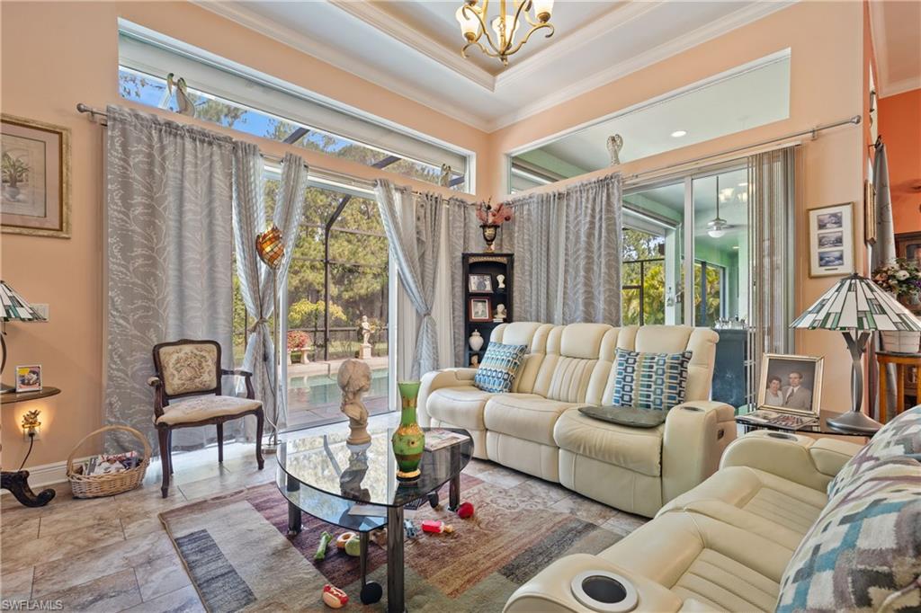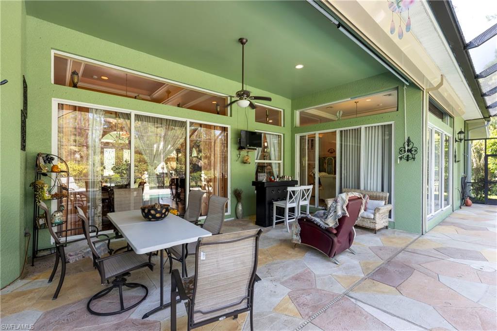 This 4,200-square-foot estate home, completed in 2018, is positioned on 2.73 acres in sought-after Weber Woods. Built with an unwavering focus on structural integrity, featuring poured concrete throughout—including the staircases and walls between both stories—this residence was designed for durability, energy efficiency and refined living. Foam insulation, impact-resistant doors and windows and rooftop solar panels significantly minimize electric costs, only property taxes apply, and a $28 monthly electric bill. A portable whole-house generator ensures uninterrupted power, while an advanced ozone-enhanced water filtration system delivers exceptional water quality. Purposefully designed for grand-scale entertaining, the home seamlessly accommodates gatherings exceeding 100 guests. A 1,900-square-foot lanai offers expansive outdoor living space, and the grounds allow for generous guest parking. The driveway was professionally resealed in April 2025, underscoring the homeowners’ commitment to attentive maintenance. The chef-inspired kitchen showcases custom KitchenAid cabinetry with pullouts, drawers and a pot filler, combining form with functionality. The first-floor bedroom with en suite features a zero-threshold shower for ease and comfort. Everyday conveniences include a second-floor laundry chute and an on-demand hot water system. Additional features include a meticulously installed septic system. Merging architectural precision with eco-forward enhancements, this residence offers an elevated lifestyle in one of Naples’ premier residential communities.