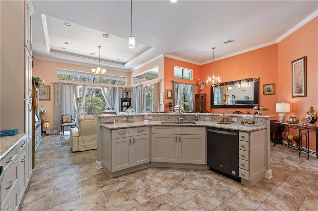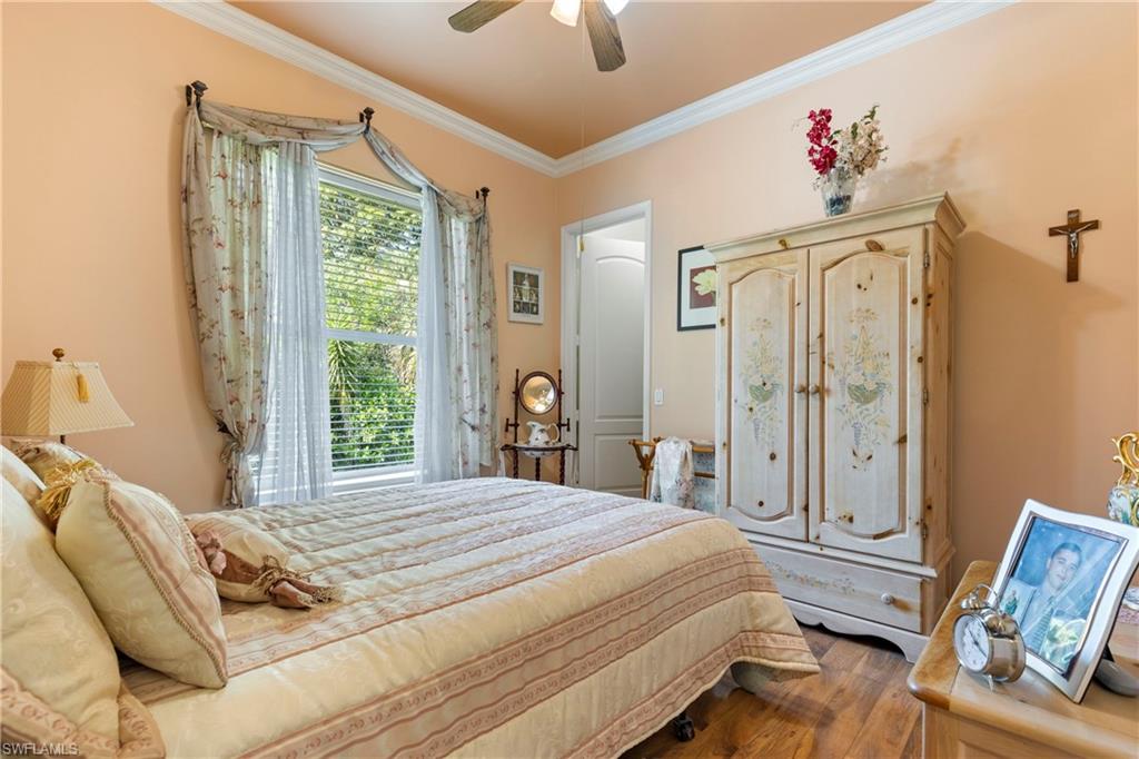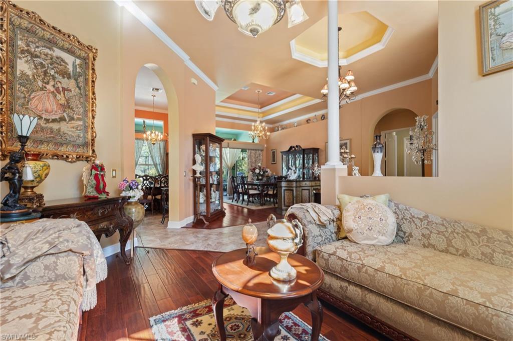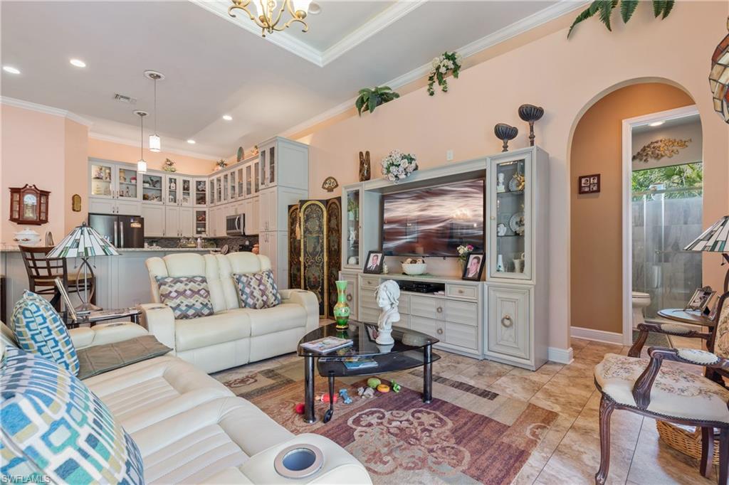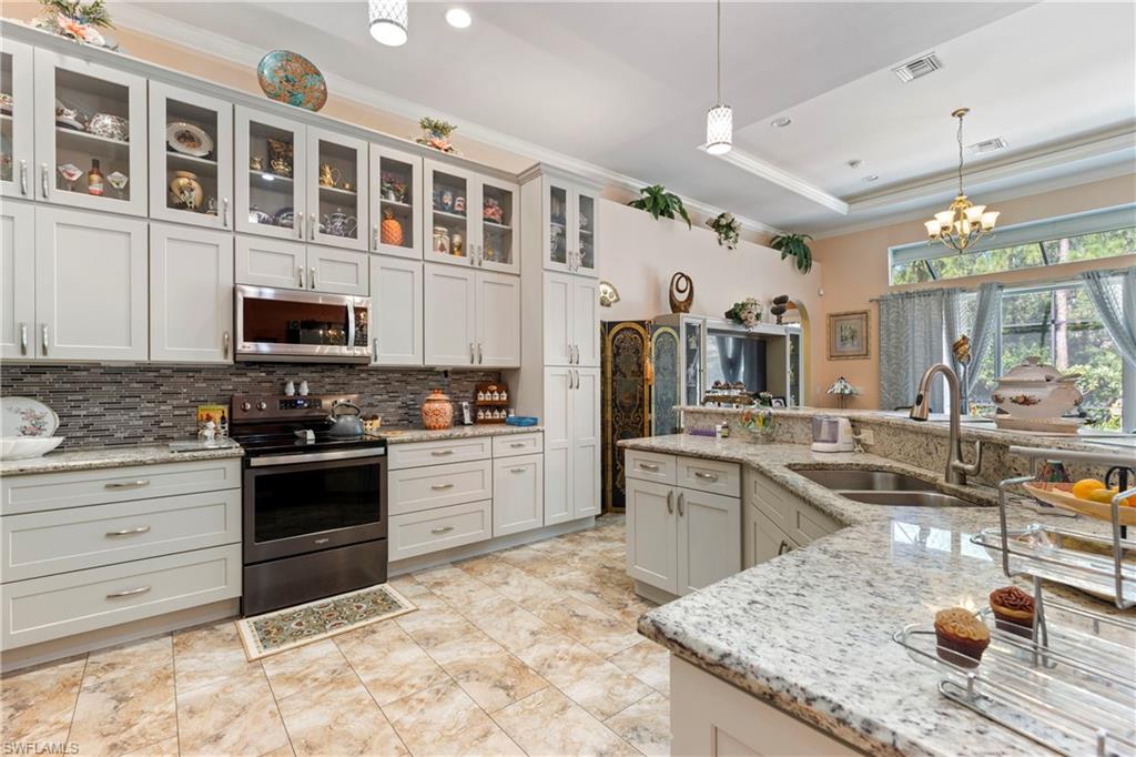 This 4,200-square-foot estate home, completed in 2018, is positioned on 2.73 acres in sought-after Weber Woods. Built with an unwavering focus on structural integrity, featuring poured concrete throughout—including the staircases and walls between both stories—this residence was designed for durability, energy efficiency and refined living. Foam insulation, impact-resistant doors and windows and rooftop solar panels significantly minimize electric costs, only property taxes apply, and a $28 monthly electric bill. A portable whole-house generator ensures uninterrupted power, while an advanced ozone-enhanced water filtration system delivers exceptional water quality. Purposefully designed for grand-scale entertaining, the home seamlessly accommodates gatherings exceeding 100 guests. A 1,900-square-foot lanai offers expansive outdoor living space, and the grounds allow for generous guest parking. The driveway was professionally resealed in April 2025, underscoring the homeowners’ commitment to attentive maintenance. The chef-inspired kitchen showcases custom KitchenAid cabinetry with pullouts, drawers and a pot filler, combining form with functionality. The first-floor bedroom with en suite features a zero-threshold shower for ease and comfort. Everyday conveniences include a second-floor laundry chute and an on-demand hot water system. Additional features include a meticulously installed septic system. Merging architectural precision with eco-forward enhancements, this residence offers an elevated lifestyle in one of Naples’ premier residential communities.