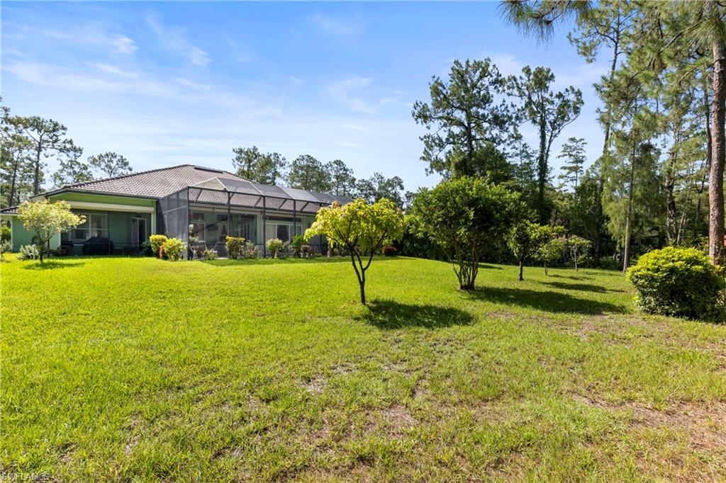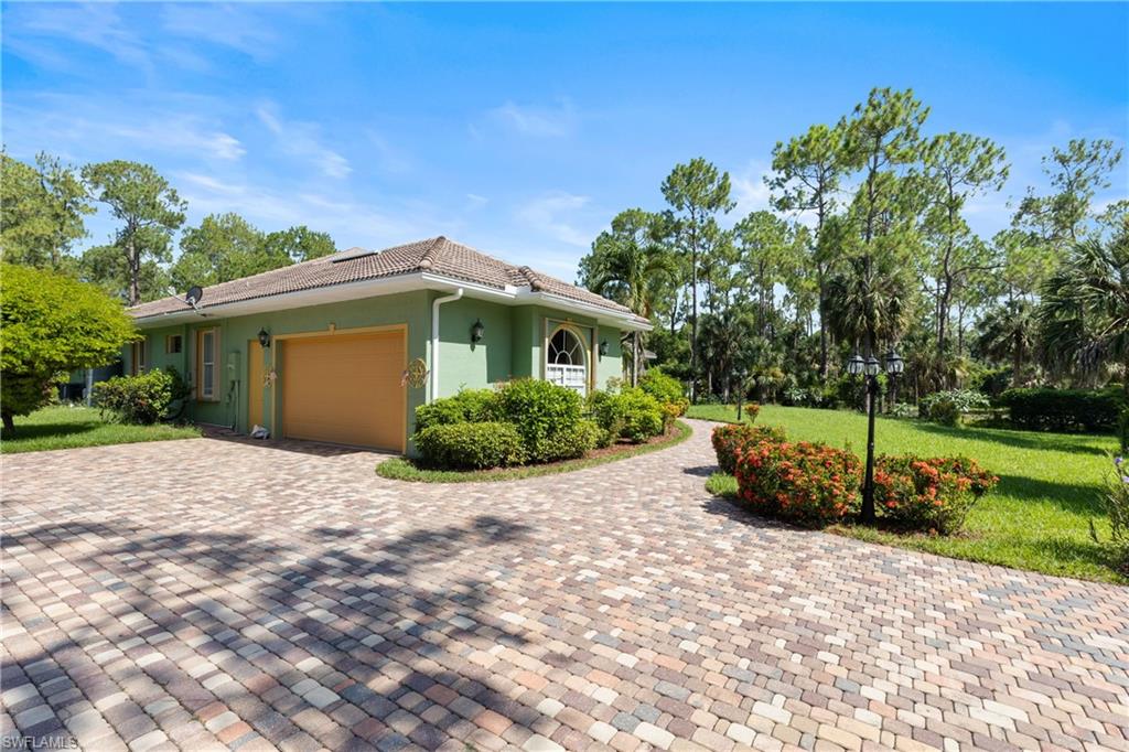Welcome to 361 Weber Blvd N, a beautifully maintained single-family home situated on a sprawling 2.27-acre lot in the highly sought-after community of Golden Gate Estates. Offering the best of both worlds—peaceful country living with the convenience of nearby city amenities—this property is ideal for families, outdoor enthusiasts, and anyone seeking space, freedom, and flexibility. This charming 4-bedroom, 3-bathroom home features a desirable split-bedroom floor plan, high vaulted ceilings, and tile flooring throughout. The open-concept layout is designed for comfortable living and effortless entertaining. The kitchen is a true highlight with its granite countertops, breakfast bar, stainless steel appliances, and ample cabinetry. It flows seamlessly into the dining area and spacious living room, creating a warm and inviting environment for family gatherings and everyday living. The private primary suite offers a peaceful retreat with a large walk-in closet, dual vanities, and a walk-in shower. On the opposite side of the home, three additional bedrooms and a full bath provide plenty of space for family, guests, or a home office. Every room is filled with natural light and thoughtfully laid out for function and comfort. Step outside to enjoy your morning coffee or evening breeze on the fully screened lanai overlooking the expansive backyard. The entire lot is fully fenced, perfect for pets, kids, or adding a pool, guest house, or detached garage. With no HOA restrictions, you can bring your RV, boat, or work truck and create the lifestyle you’ve always wanted. There’s plenty of room for a garden, playground, or even a small farm setup. Additional features include a laundry room with storage, newer mechanical systems, a two-car garage, and a long driveway with ample parking space. The home is move-in ready and has been lovingly cared for, offering peace of mind for the next owner. Located just minutes from I-75, top-rated schools, dining, shopping, and Naples’ world-famous beaches, this location provides convenience without compromising on space or privacy. Whether you’re looking to settle down, invest, or simply escape the constraints of HOA living, 361 Weber Blvd N is a rare find that checks all the boxes. Don’t miss this opportunity to own a piece of paradise in one of Naples’ fastest-growing and most desirable areas.