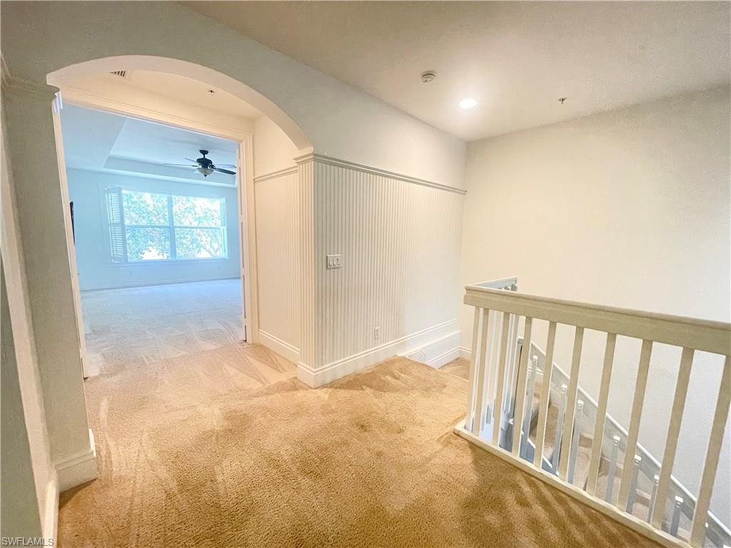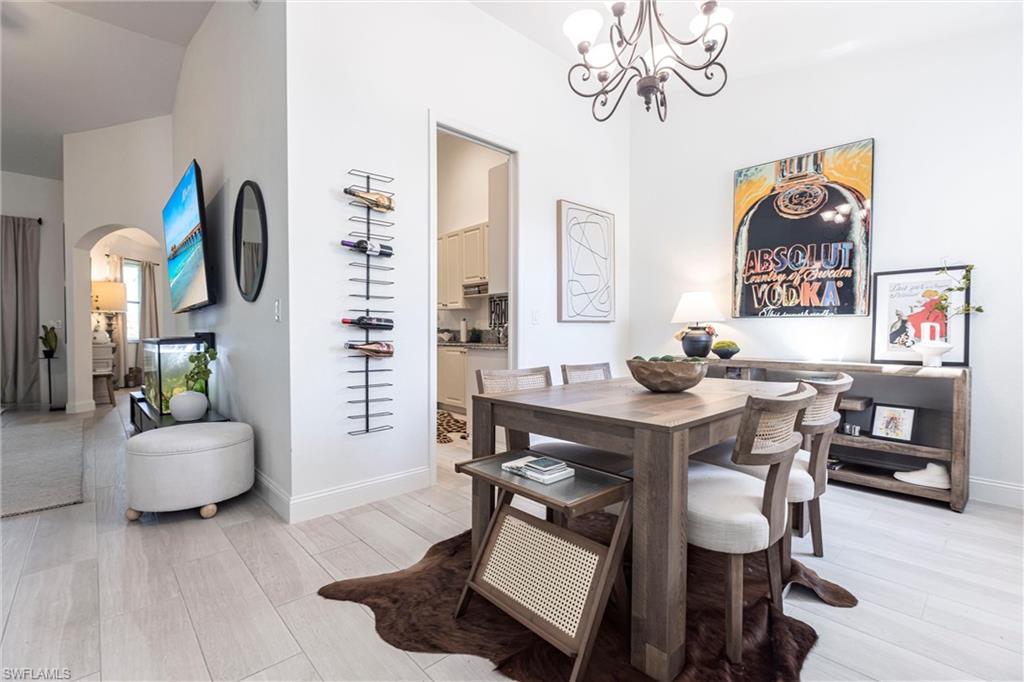 Experience refined living in this elegantly upgraded 3-bedroom, 2.5-bathroom townhome, perfectly situated in the sought-after gated community of Mariposa at Whippoorwill. Sophisticated style meets effortless comfort in this spacious residence, featuring a 2-car attached garage with custom built-in cabinetry and a tranquil screened-in lanai that overlooks a picturesque lake—your own private retreat for morning coffee or evening relaxation. Inside, every detail has been thoughtfully curated. Rich luxury vinyl plank flooring flows throughout the home, complemented by crown molding and designer shiplap accents that elevate the ambiance. The living room exudes warmth and charm with a custom electric fireplace framed by built-in shelving, creating an inviting space ideal for both everyday living and intimate gatherings. The open-concept kitchen offers a perfect blend of form and function with a breakfast bar, eat-in dining area, and an additional formal dining room, all designed with entertaining in mind. A well-appointed powder room completes the first floor. Upstairs, the serene primary suite serves as a private sanctuary, featuring an ensuite bath with an indulgent soaking tub and ample closet space. Two additional guest bedrooms, a full bath, and a convenient laundry room ensure comfort and practicality for family and visitors alike. The versatile loft provides endless possibilities—home office, media lounge, or game room—tailored to your lifestyle. Mariposa residents enjoy resort-style amenities including a beautifully appointed clubhouse, fitness center, and a sparkling lakeside pool. Centrally located in Naples, this exceptional home offers effortless access to world-class shopping, dining, and the pristine beaches of Southwest Florida. Indulge in luxurious living in this meticulously updated townhome—an exceptional opportunity in a premier Naples location.