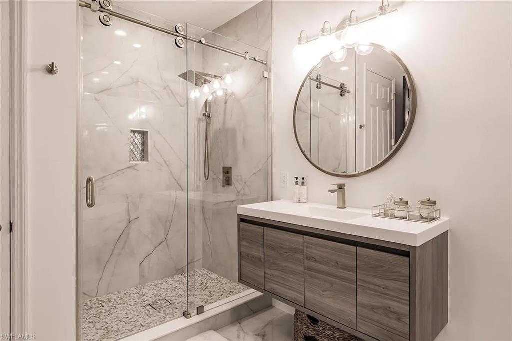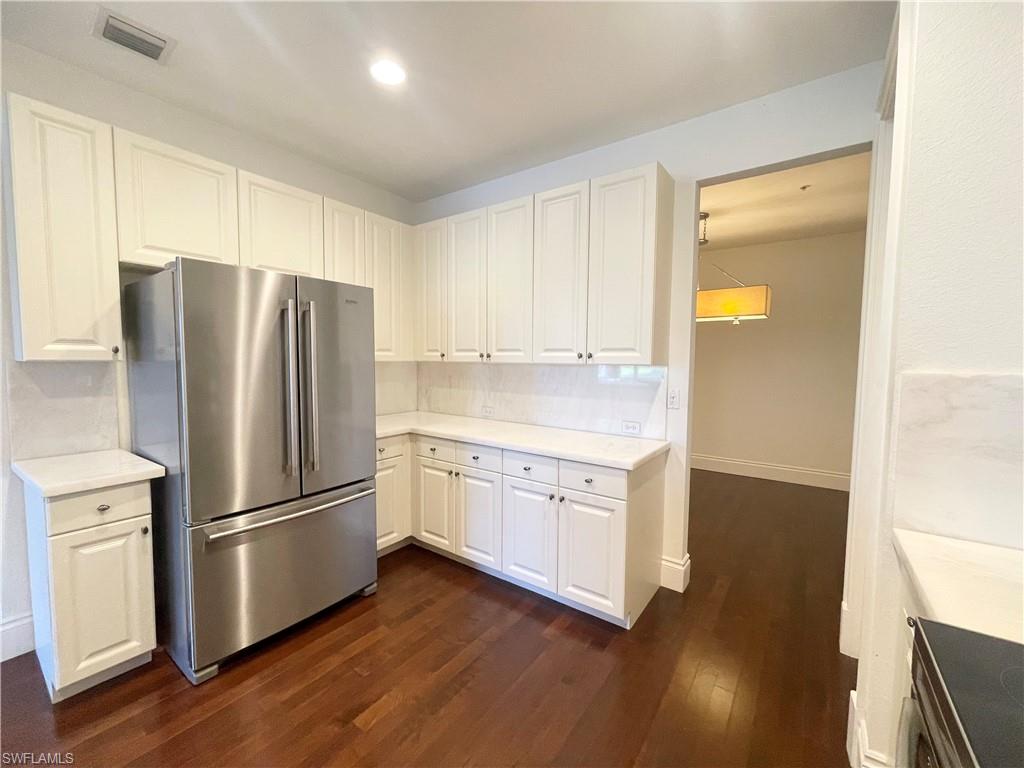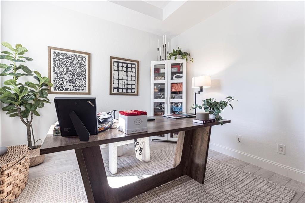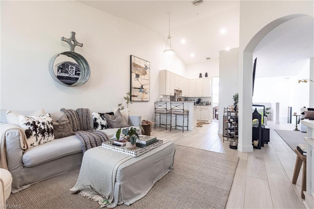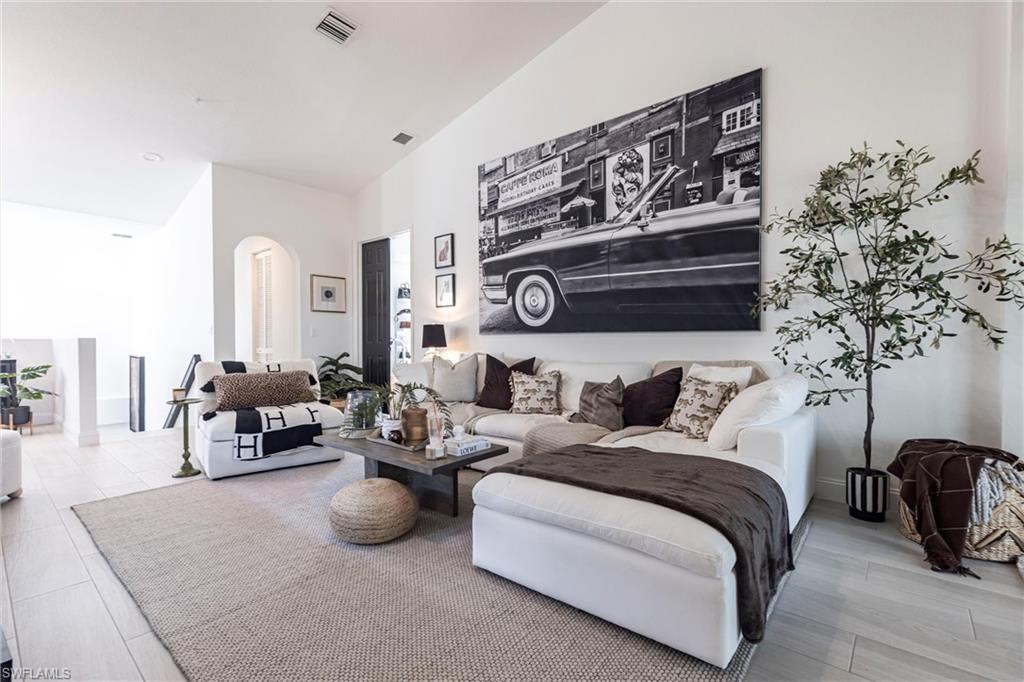 This low-maintenance, fully furnished coach home is in the charming, gated community of Mariposa in the heart of Naples. The two-bedroom plus study open floor plan has a fully updated kitchen with quartz countertops, white cabinets and newer stainless steel appliances, neutral tile and elegant grey wood-look laminate flooring. The spacious owner’s suite includes dual walk-in closets, a generous bath that includes double vanities, separate shower and soaking tub. The great room opens to a dining room and covered screened lanai overlooking a lush garden area. Additional features in this low-maintenance home include an attached one-car garage, hurricane protection, washer and dryer, and a new roof in 2023. Mariposa is a conveniently located community with easy access to Interstate 75, shopping and dining and features a community pool, fitness center and community room.