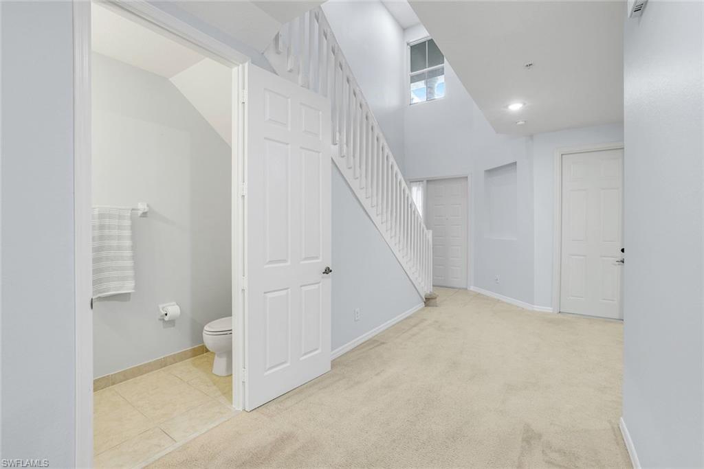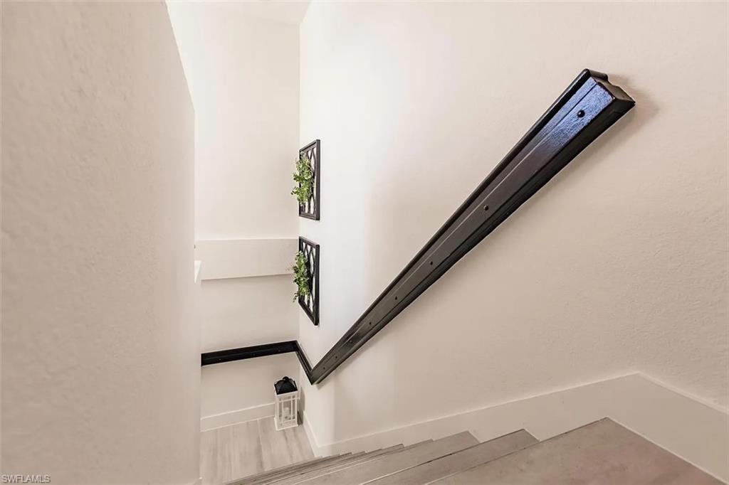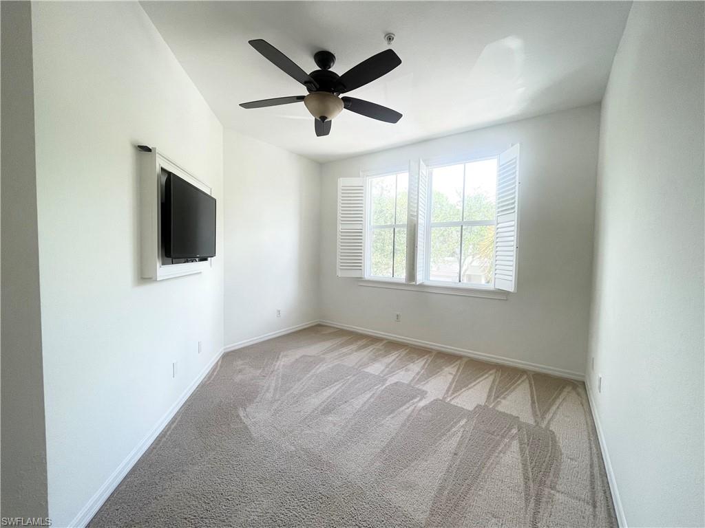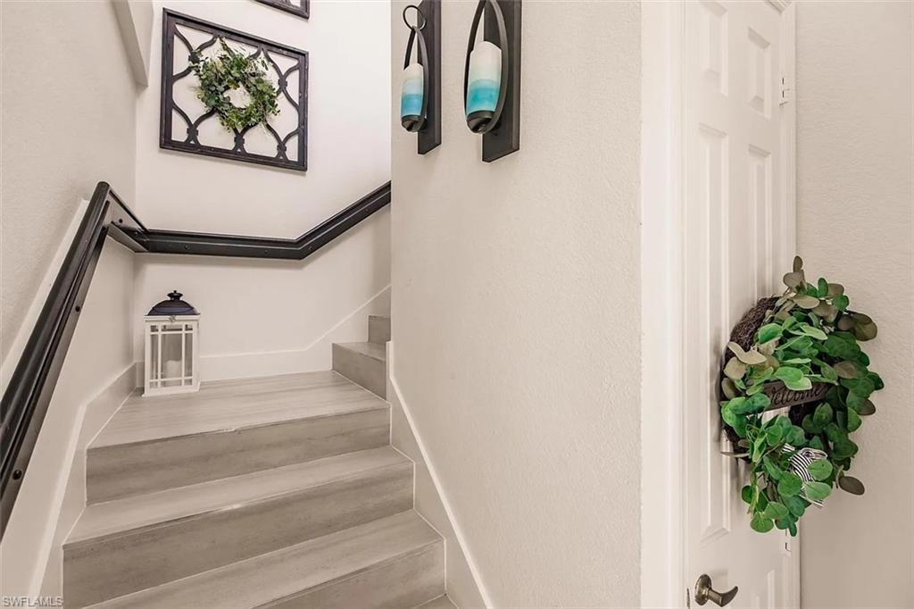 Now offered is a well cared for Townhome, 3 bedrooms, 2.5 bathrooms located in North Naples with easy access to shopping, Dining, schools and travelling. Low Fees, and move-in ready. The open style Kitchen has been updated with a newer refridgerator and Stove, and Quartz countertops. Flooring is wood throughout on first floor, Expresso colored and white Plantation shutters throughout this home. Garage is oversize, 2 car. Driveway can also park 2 cars as well. There is a New Water heater, (October, 2025). Living quarters are upstairs, along with a Loft/Multi-purpose area, and laundry room. The Primary BR is large with good Closet space and a accomadating Primary bathroom with Large soaking Tub plus Shower and door on the water closet all with a nice window, light and bright. The other two bedrooms, Guest Bathroom and Laundry Room are synomous in size. Pets are acceptable, but limited to 1 pet, 40 lbs. Mariposa is known for its large square footage. Come and see for yourself!