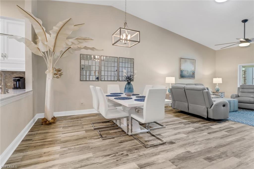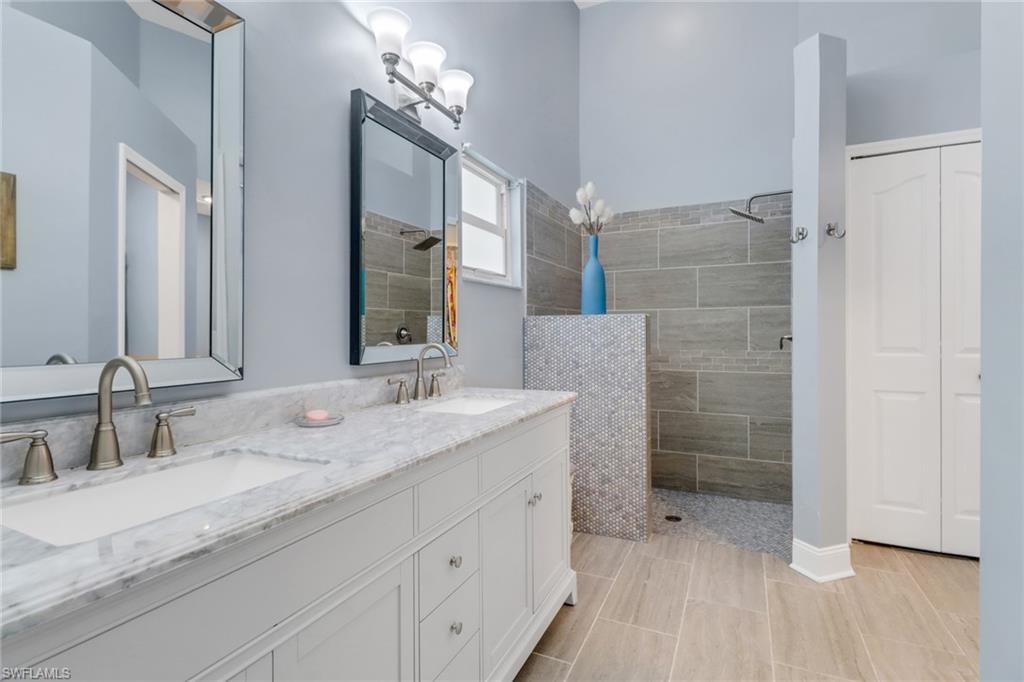 With over $125,000 in extensive improvements, this three-bedroom end unit villa has been totally renovated and lives like a single family home without all the maintenance. It is light, bright and move-in ready. Great room floor plan with soaring ceilings and a long list of extensive updates include newer TILE ROOF, HURRICANE IMPACT WINDOWS, HVAC, APPLIANCES, WATER HEATER, PLANK TILE FLOORING THROUGHOUT, FULLY RENOVATED KITCHEN, UPDATED BATHROOMS, PLUMBING LINES, HUNTER DOUGLAS WINDOW SHADES and the list would go on and on. Neutral color palate throughout. Split bedroom floor plan. The guest suite has direct access to a full bath and could be a second primary suite. Also, corner lot, private entrance, EXTENDED screened lanai with “no see um” screening and attached two car garage with hurricane impact rated door and extra storage in the garage attic. Prime North Naples West of 41 location close to beaches, golf, dining, shopping, entertainment, gulf access, and more. Great location with the complex just a short stroll from the heated pool and across from the Tarpon Cove Yacht & Racquet Club (optional membership) with clubhouse, pool, tiki bar, fitness center, tennis courts, wellness classes and water taxi beach shuttle. The low association fee includes insurance on the building, roofs, exterior paint, landscaping, irrigation, reserve, professional management and Summit fiber optic (cable TV and internet.) There are also boat slips for sale or lease offering direct gulf access. This is a very quality, impeccable residence with absolute pride of ownership. According to the Seller, this property has never flooded in their 15 years of ownership.