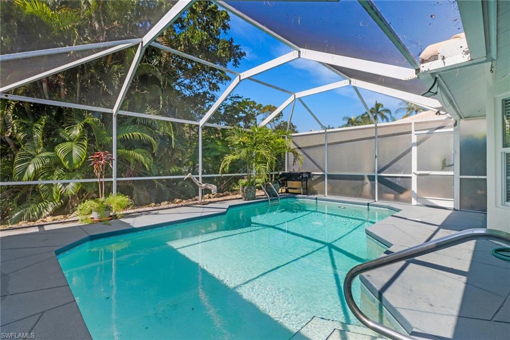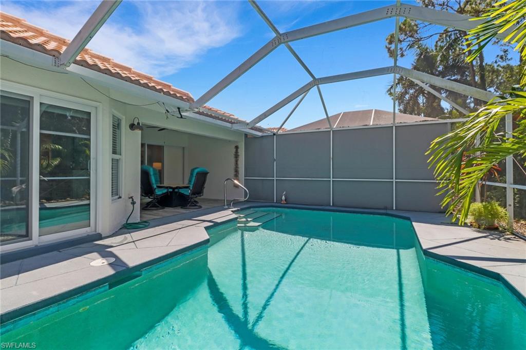 Discover coastal charm and modern comfort in this beautifully refreshed villa nestled within the highly desirable Wiggins Bay neighborhood of North Naples—just minutes from pristine beaches, top-tier shopping, and fine dining. Peace of mind comes standard with a newer roof, impact windows in the master suite, and upgraded HVAC and water heater systems. Inside, you’ll be greeted by a sleek, remodeled kitchen featuring stainless appliances, custom cabinetry, and LED lighting, alongside a spa-inspired master suite rich with custom closets and a fully renewed bath. Throughout, fresh Cortec Plus laminate flooring, baseboards, and interior paint lend a light and modern feel, while a stylishly updated guest bathroom and added storage in the guest bedroom and laundry provide practical elegance. Outdoors, your personal retreat awaits with a resurfaced and retiled pool, LED lighting, refreshed pool cage and deck, upgraded “No-See-Um” enclosure, and modern pool equipment—perfect for Florida living. Thoughtful finishing touches like French doors, new ceiling fans, and an enhanced garage complete the picture. Wiggins Bay truly enhances the lifestyle by offering optional membership at the Tarpon Cove Yacht & Racquet Club, featuring private beach shuttles, tennis courts, dining, fitness facilities, and engaging social events for residents who enjoy a more active and connected community. More than just a home—it’s an invitation to soothe into the vibrant Naples way of life.