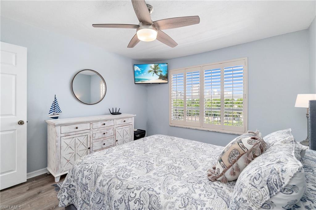 THE VIEW! THE VIEW! THE VIEW! (AND IF THAT'S NOT ENOUGH - ALL IMPACT GLASS AND MEMBERSHIP BENEFITS WITH THIS OWNERS TARPON MEMBERSHIP IS EXTRA DELIGHTER). Prepare to be captivated by the spectacular long lake views from this beautifully renovated second-floor condo in Harbourside at Wiggins Bay - where tranquility meets coastal sophistication. Perfectly positioned just moments from the Gulf, this residence combines stylish updates with a smart, open layout designed for effortless Florida living. Step inside and you’ll immediately notice the wide-plank Cortec wood-style flooring that flows seamlessly throughout, blending warmth and durability with easy maintenance. The chef-inspired kitchen shines with modern cabinetry, upscale counters, and premium stainless-steel appliances, making everyday living both functional and elegant. Both bathrooms have been thoughtfully redesigned with contemporary finishes, tile-and-glass showers, and sleek fixtures, creating a spa-like retreat. The spacious bedrooms feature walk-in closets with custom organizers, while plantation shutters, crown molding, and hurricane-impact windows add an elevated touch of quality and comfort. Enjoy year-round serenity from the enclosed lanai, which extends the living area and frames the stunning water views — or from the screened front entry lanai, ideal for enjoying Naples’ gentle breezes in any season. Additional upgrades include a newer AC system, tankless water heater, newer washer/dryer, and a remote-control electric fireplace, ensuring both convenience and ambiance. Just steps away is the Tarpon Cove Yacht & Racquet Club, where members enjoy a full suite of amenities: tennis, bocce, dining, social events, and even a boat shuttle to the beach. A new private golf club, Kinsale Golf Club, is also being developed right across the street, further enhancing the lifestyle appeal of this premier location. Set near the turquoise waters of the Gulf of Mexico, Wiggins Bay was designed for those seeking the ultimate Florida lifestyle - boating, fishing, beach days, and endless dining and shopping options in both Naples and Bonita Springs are right at your fingertips. Bonus: The seller’s Tarpon Cove Club membership is transferable, allowing buyers to pay only half of the initiation fee ($12,500 instead of $25,000) - a rare and valuable perk. If you’ve been waiting for a beautifully updated home with an unforgettable view and a lifestyle to match, this one is a must-see.