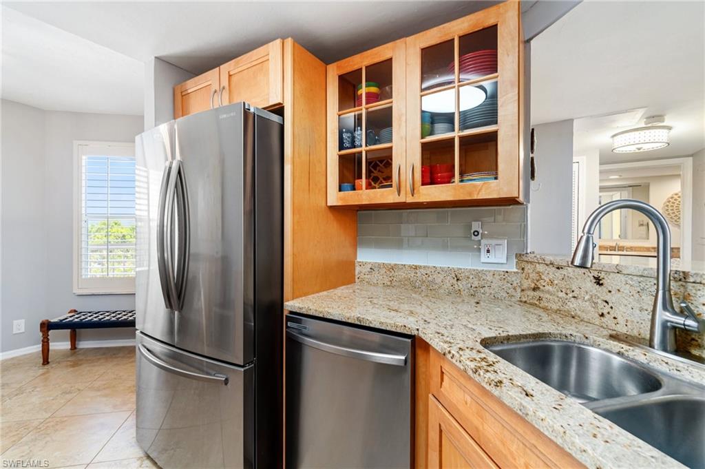 RENOVATED 4TH-FLOOR CONDO WITH SOUTHERN EXPOSURE & TRANQUIL LAKE VIEWS – MINUTES TO THE BEACH! PRICED TO SELL! Filled with natural light and coastal charm, this 2-bedroom, 2-bath residence offers modern style, effortless comfort, and an unbeatable value. Move right into this beautifully updated condo in the highly desirable Princeton Place at Wiggins Bay. The renovated kitchen showcases stainless steel appliances, granite countertops, soft-hued cabinetry, and a sleek glass tile backsplash. Tile flooring extends throughout the main living areas, while luxury vinyl plank flooring in the bedrooms adds warmth and elegance. Both bathrooms have been tastefully redesigned with contemporary finishes, including new vanities, updated tilework, and stylish fixtures. The primary suite features a walk-in shower, while the guest bathroom offers a tub/shower combo with a glass enclosure. Additional upgrades include a NEWER ROOF, HVAC, WATER HEATER, UPDATED PLUMBING, and ELECTRIC HURRICANE SHUTTERS—providing comfort and peace of mind. Furniture is available for purchase, making this home truly move-in ready. HOA fees also include cable and WiFi. Perfectly situated west of Route 41, Wiggins Bay places you just minutes from Vanderbilt Beach, Delnor-Wiggins Pass State Park, and Barefoot Beach. Enjoy effortless access to dining, shopping, entertainment, and medical facilities. The community also offers optional membership at the Tarpon Cove Club, featuring a resort-style pool, restaurant, tiki bar, fitness center, beach shuttle, tennis, and bocce. BOAT DOCKS ARE AVAILABLE for sale or lease, offering exceptional waterfront convenience. Don’t miss this opportunity to enjoy the best of North Naples living—beautiful upgrades, an ideal location, and incredible value all in one! **THIS PROPERTY QUALIFIES FOR A 1% LENDER INCENTIVE IF USING PREFERRED LENDER. INQUIRE FOR MORE DETAILS.*