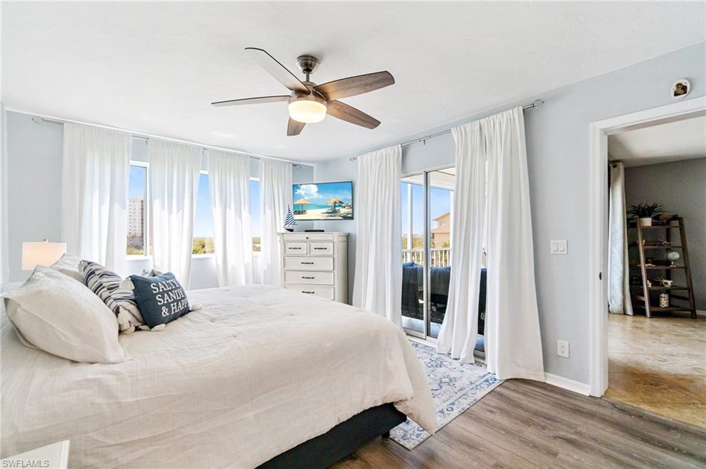 FACING WEST!! VIEWS & SUNSET SKIES from your lanai, living area and master bedroom. Boat Lovers Dream. This Quality renovated 2 bedroom, 2 bath Condo was done a year ago, kitchen wall removed, over-sized quartz counters, extended to backsplash, additional bar/cabinets added with wine refrig., plus stainless appliances. The (Luxury vinyl) wide wood grain floors flow throughout. Lighting, fans & all door handles offer a stylish modern Decor. Master bath has separate dual sinks, a custom soaking tub, glass enclosed custom shower & even added a linen closet. Guest bath has glass enclosed walk-in shower. A/C replaced, tankless water heater, electric hurricane shutter. THIS BLDG HAS LOWEST HOA IN WIGGINS BAY & ready for a new paint color. Come enjoy and have Income too. Seasonal renter for Jan 3 - April 3 at $19K. This condo is within steps of the Tarpon Cove Beach & Racquet Club with amenities to enjoy. Restaurant, Tiki bar, tennis, fitness, boat taxi to beach, resort pool, bocce and loads of social events, private membership , ask about details/costs.
