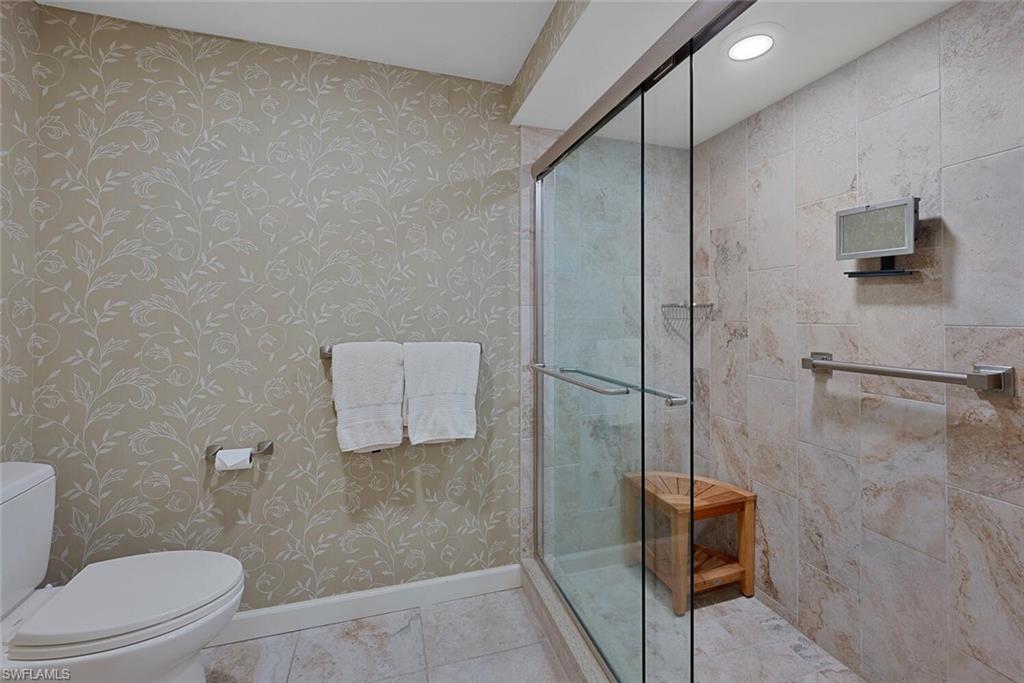 Enjoy Southeastern lake and golf course views from this completely transformed, phenomenal, posh custom condominium located in the tranquil Wilderness Country Club. This elevator-accessible top-floor residence features a reimagined open-concept floor plan with an indoor-outdoor room that flows effortlessly onto a third-floor balcony, maximizing the lake and fairway vistas. This impeccably maintained decorator-furnished condo boasts custom cabinetry everywhere, a gourmet kitchen, stainless steel appliances, quartz countertops and backsplash, indirect soffit and under-counter lighting, solid doors, floating vanities, impact sliders, California-style closets, tile and carpet. The condominium has a yacht quality feel. This is a must-see! Residents will also enjoy access to the newly constructed State-of-the-Art 5 Star Clubhouse and practice facility, making this property the ultimate haven for golf enthusiasts. A golf cart and cart garage are included and located adjacent to your assigned covered car parking. This gated paradise is set within a 200-acre forest with stunning landscaping and mature trees overhanging roadways. It offers unlimited golf on an 18-hole Arthur Hills course, 5 Pools, 4 tennis courts, bocce, croquet, and a dog park. It’s just minutes from charming shopping and dining at 5th Avenue and Old Naples. Purchase of a Wilderness Country Club membership is required and immediately available.
