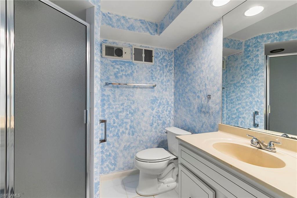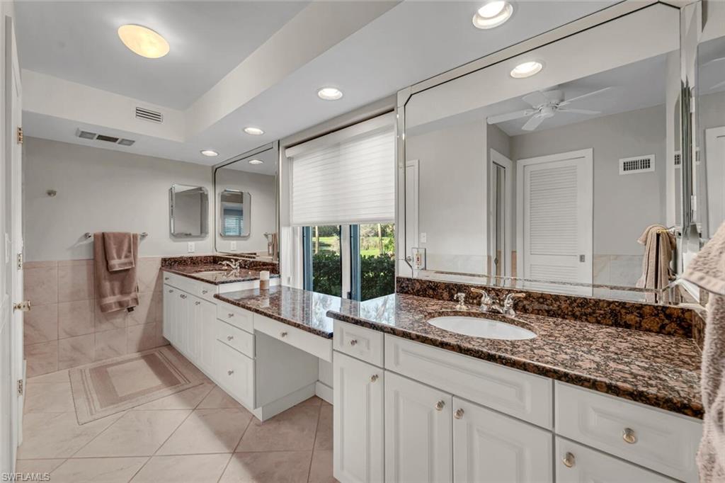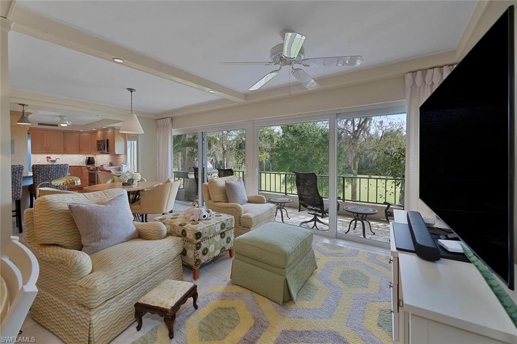 One of the largest three-bedroom floor plans in Wilderness. This first-floor end unit is prized for its volume, privacy and light. Two walls of sliding glass doors frame serene golf and lake vistas and bring the outdoors in. A wonderful opportunity for customization, the residence is a ready-to-reimagine blank canvas to open the kitchen, update baths, and create your ideal Naples retreat while protecting long-term resale with the community's sought-after layout and an end-cap orientation. Wilderness Country Club is a member-owned, nature-forward, central Naples enclave anchored by an Arthur Hills 18-hole course and Audubon-certified grounds. Amenities include a new clubhouse with dining, Har-Tru tennis, bocce, croquet, five saltwater pools and social programming. And a golf-cart garage is included with each residence. All set minutes to Fifth Avenue South, Waterside Shops and Gulf beaches. Golf, wildlife and old Florida tranquility, this is the floor plan worth renovating.
